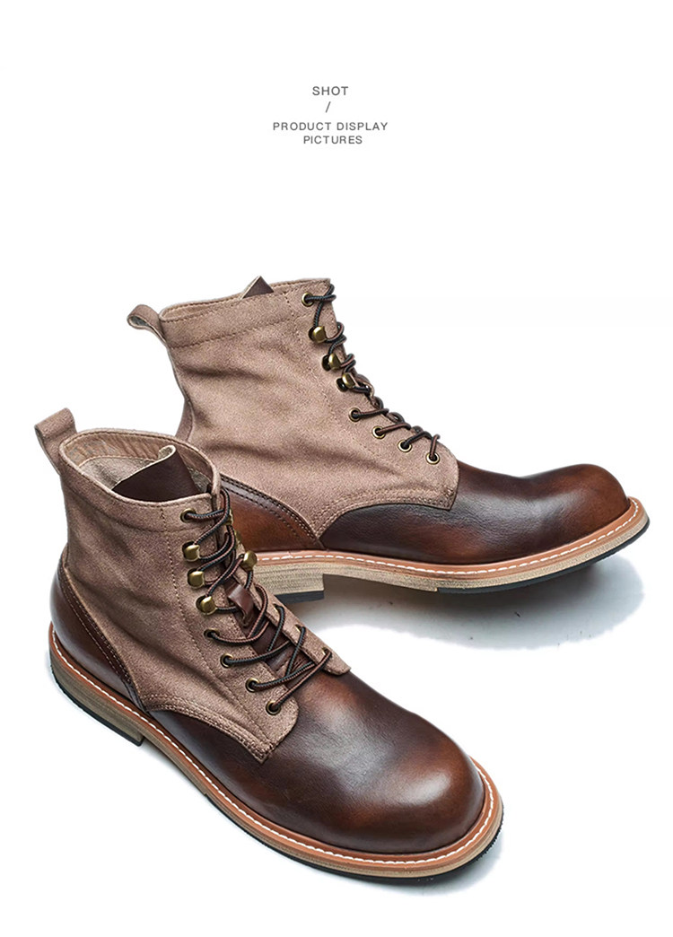 Martin Boots for Men, British Style, Genuine Leather Work Boots, High-Top Shoes, Vintage American Style, First Layer Cowhide Boots, Men's Paratrooper Boots, Trendy
