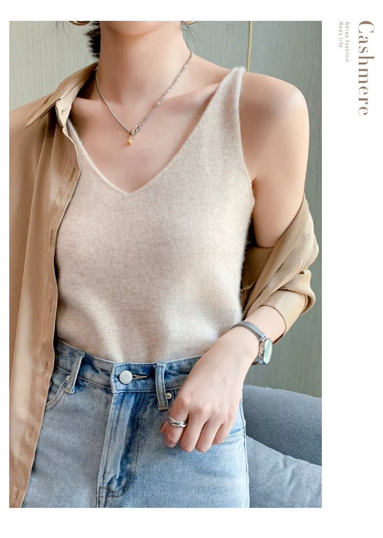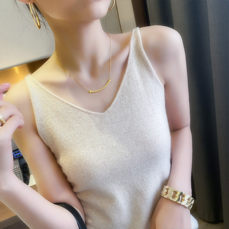 Cashmere Camisole Women's V-Round Warm Suit White Knitted Autumn and Winter Bottoming Top