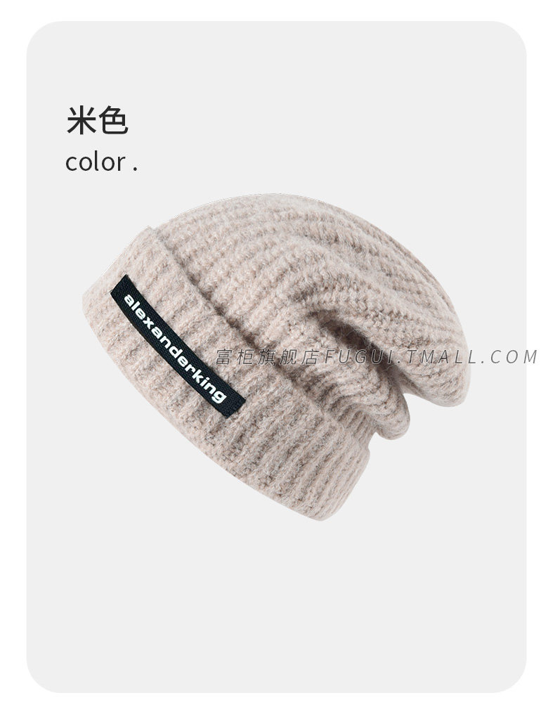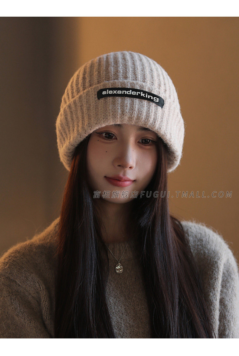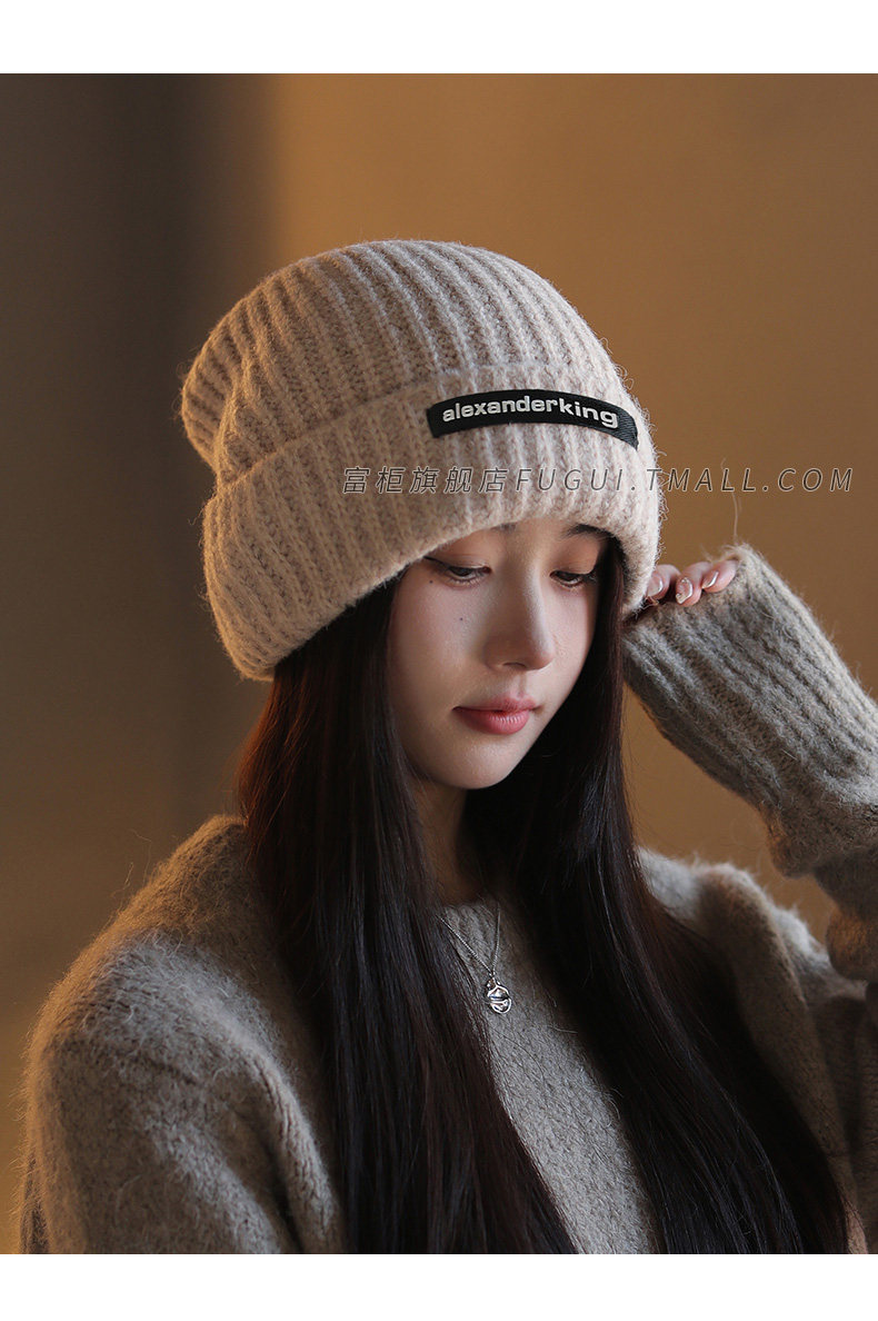Fugui 2024 New Style Knitted Hat for Women, Autumn and Winter, Thickened, Warm, Versatile, Loose, Ear-Protecting, Trendy Slouchy Beanie