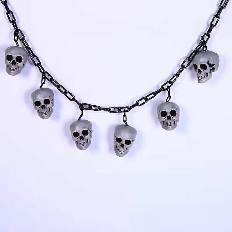 Halloween decorative skull string simulated skull iron chain scene layout props haunted house bar wall hangings