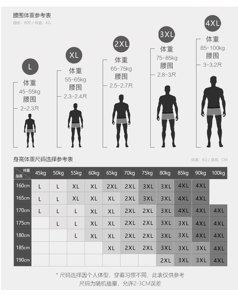 China (cm) 165 / 88-90 170 / 96-98 175 / 108-110 180 / 118-122 185 / 126-130