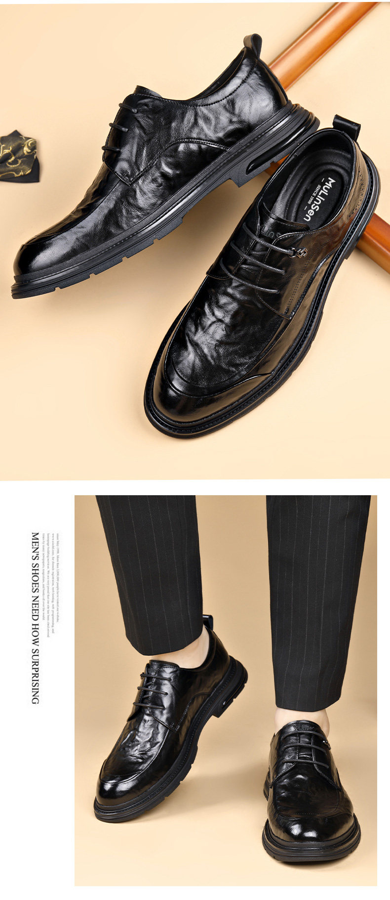 Mulinsen leather shoes men's genuine leather formal business casual shoes spring and autumn lace-up soft sole soft leather round-toe driving shoes