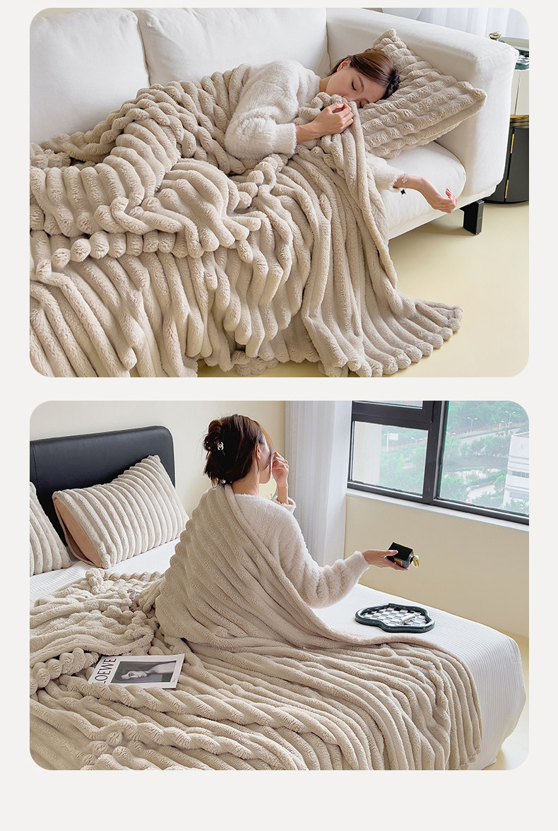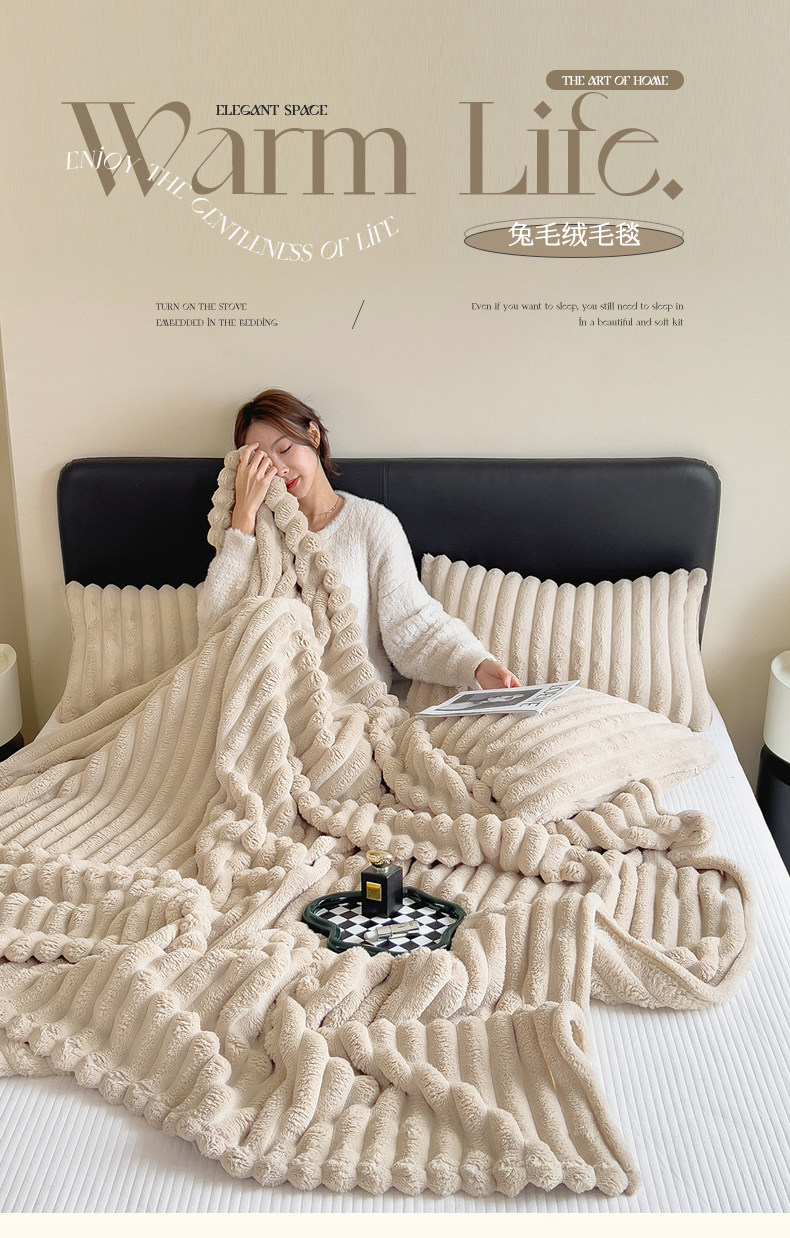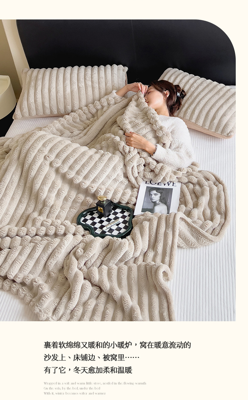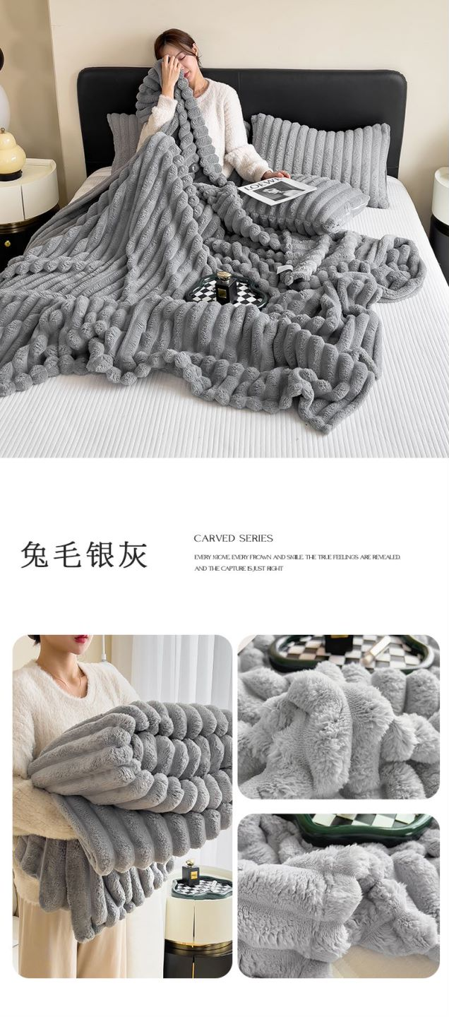 Rabbit Fur Plush Blanket, Office Nap Blanket, Milk Velvet Air Conditioning Blanket, Coral Velvet Bed Sheet Blanket for Bed