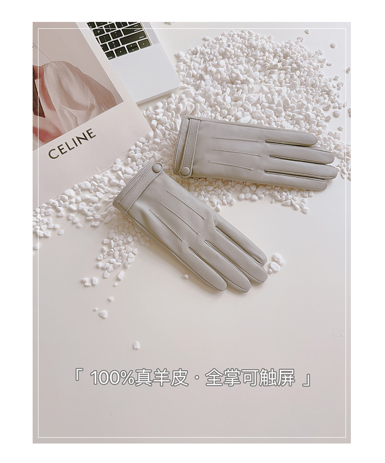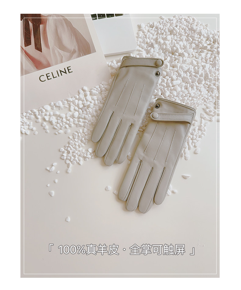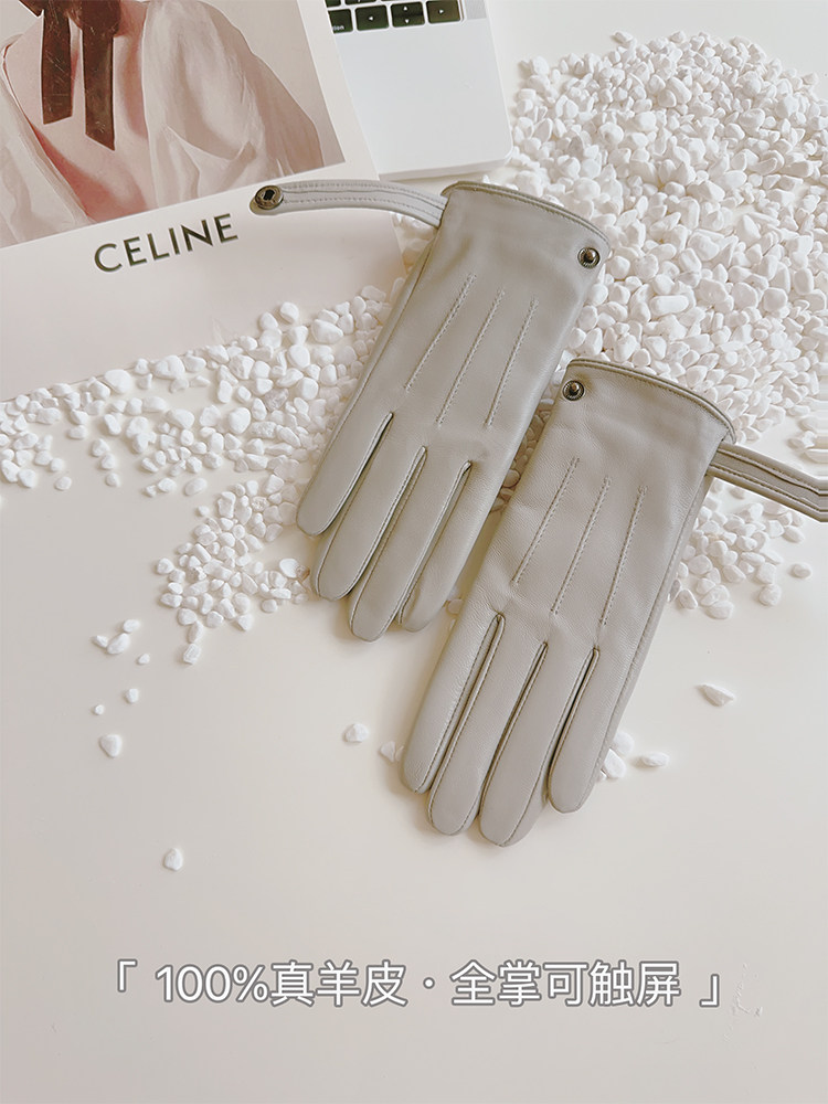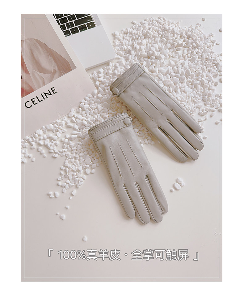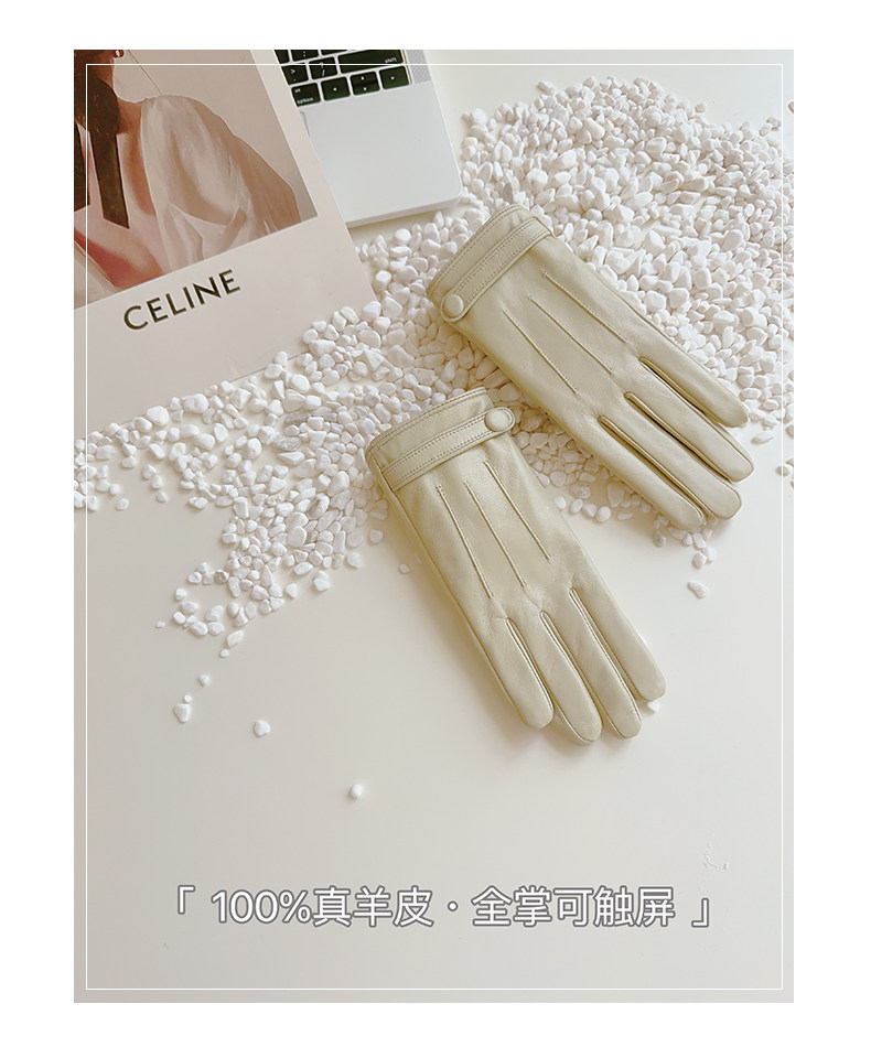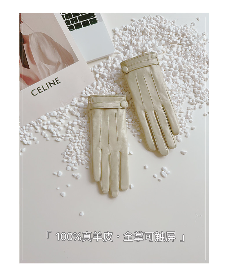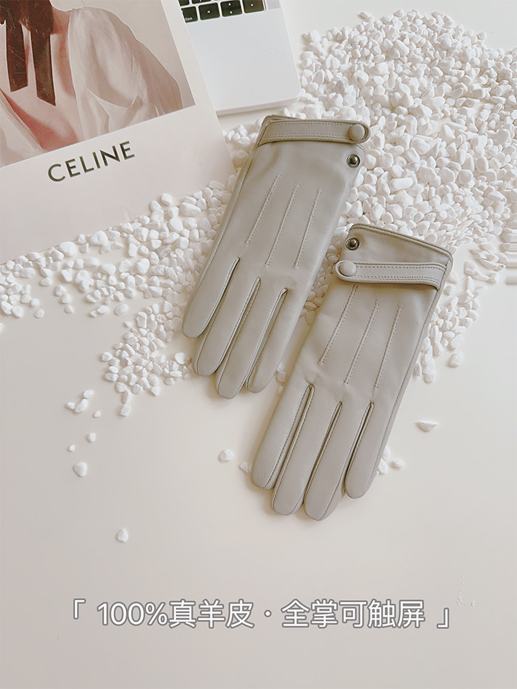 Sheepskin Gloves for Women, Winter Motorcycle Thin Touchscreen Outdoor Riding Gloves, Fleece-Lined Genuine Leather, Short Style for Spring and Autumn, Windproof and Warm for Driving