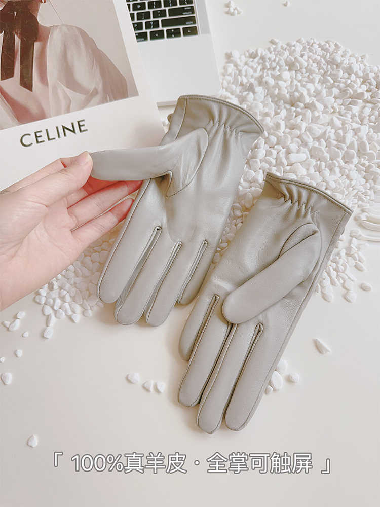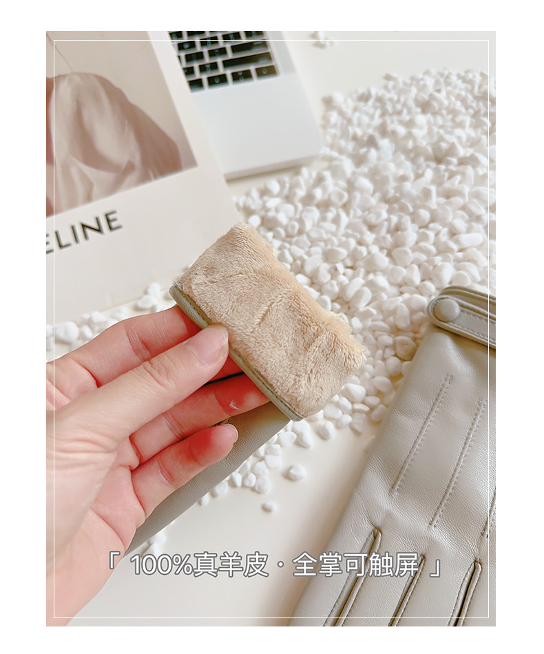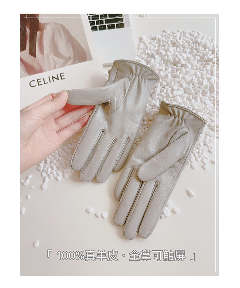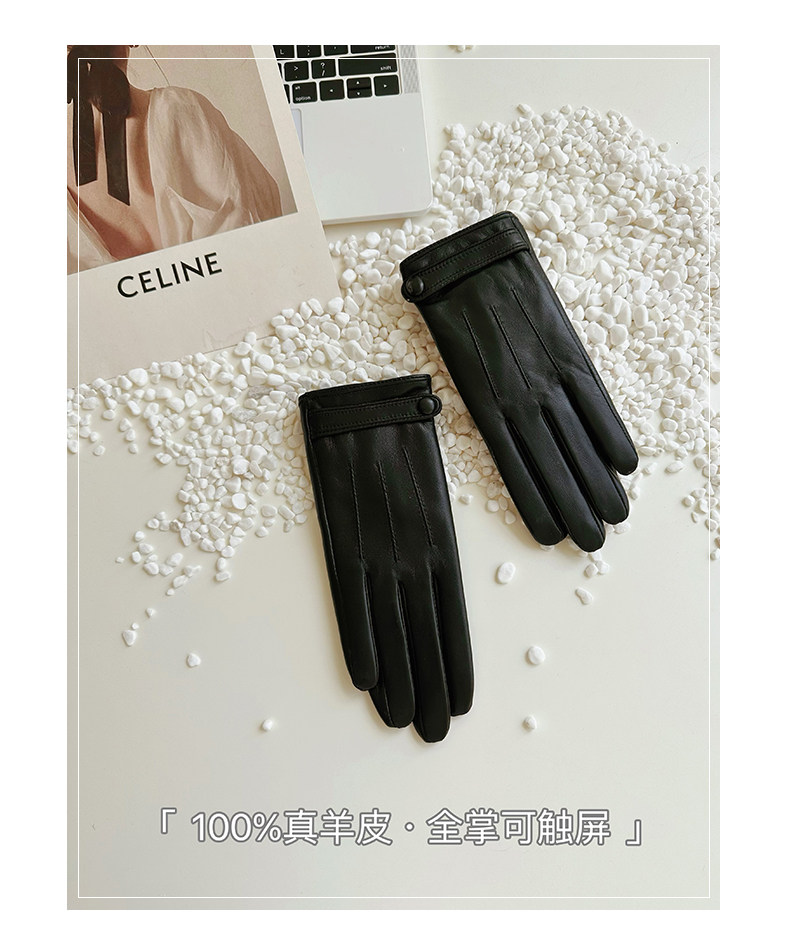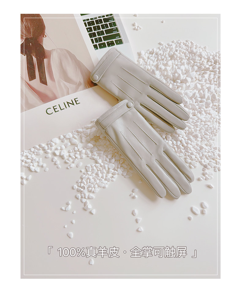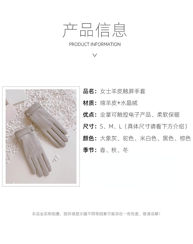 Sheepskin Gloves for Women, Winter Motorcycle Thin Touchscreen Outdoor Riding Gloves, Fleece-Lined Genuine Leather, Short Style for Spring and Autumn, Windproof and Warm for Driving