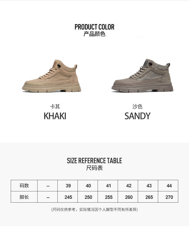Sort by color Upgraded model sand color,Upgraded model grey,Sand color heightening model,Gray height-enhancing model,Main picture sand color,Main picture model gray,Casual style gray,Casual style black,Casual style apricot,Trendy model apricot,Trendy model gray,Trendy black,Fleece style apricot color,Fleece style gray,Velvet black,Comfortable apricot color,Comfortable gray,Comfortable black,Workwear Brown,Workwear black,Fashion khaki,Fashion model black,Youth style khaki,Youth style black,Trendy men's style apricot,Trendy men's black