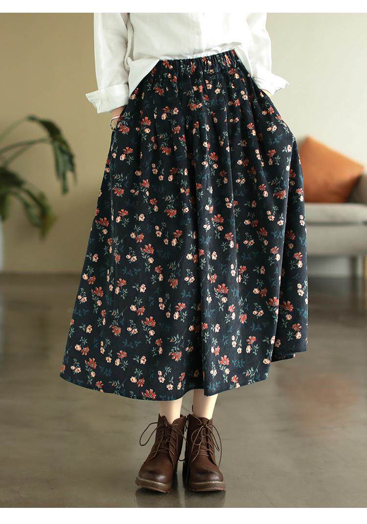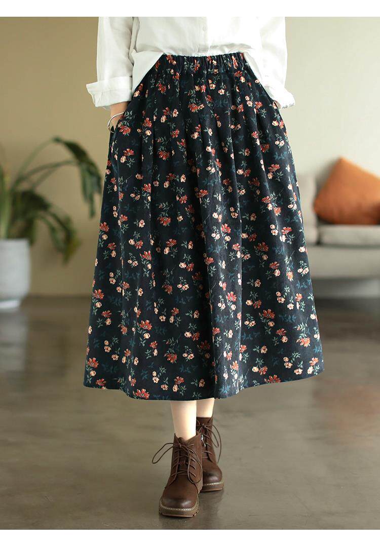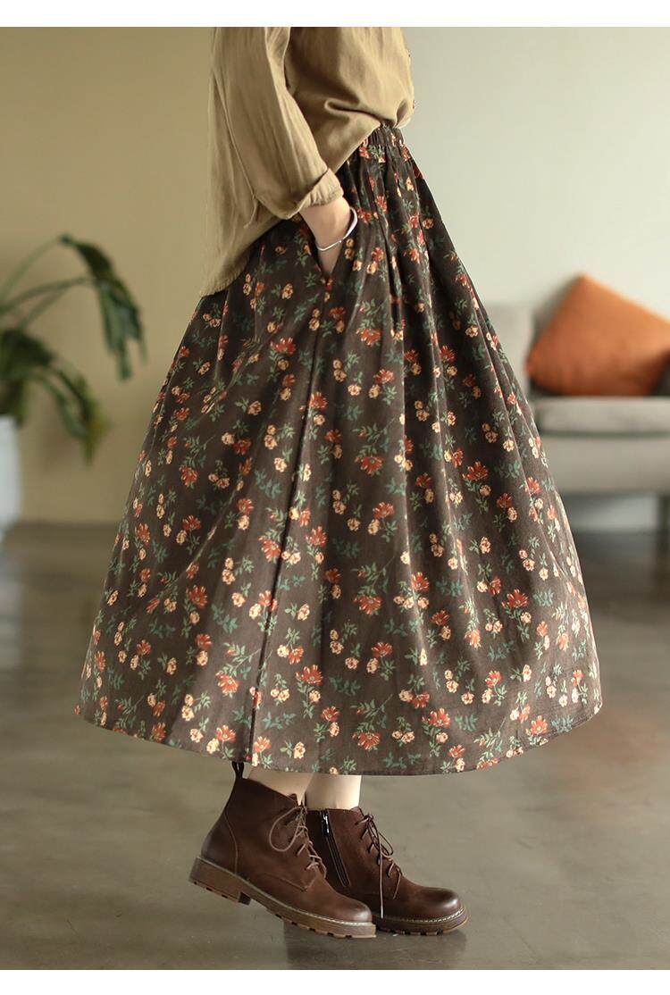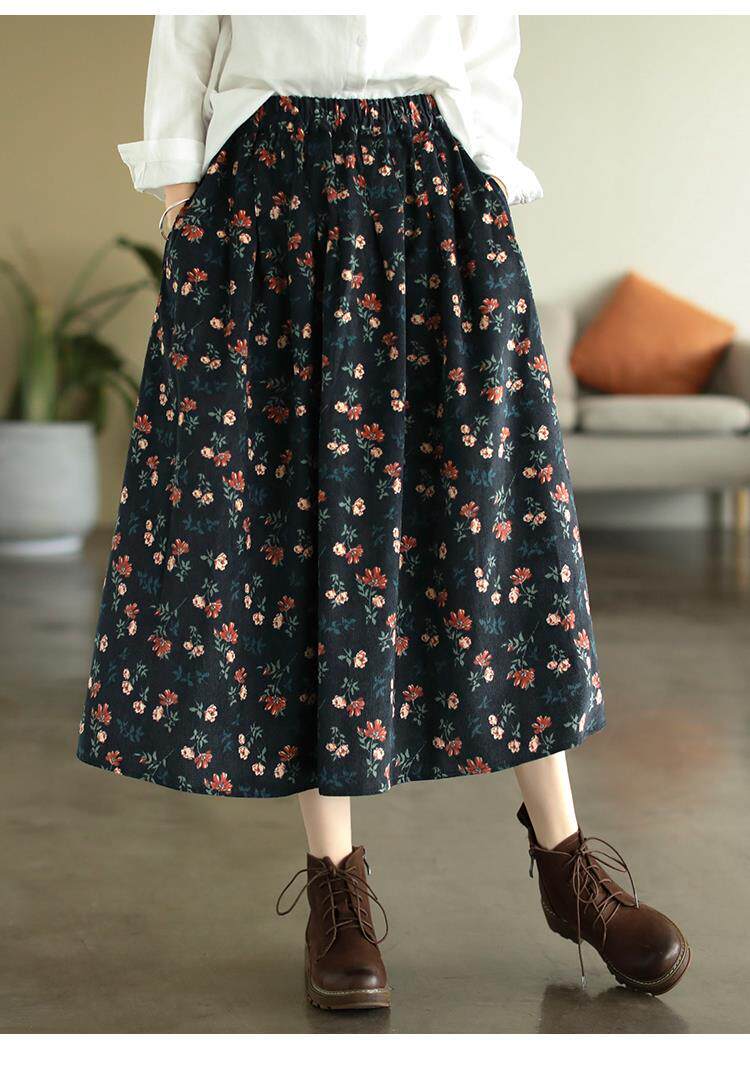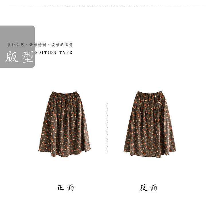 Pure cotton floral skirt spring and autumn new middle-aged mother's clothing retro age-reducing large size temperament high-waisted a-line skirt for women