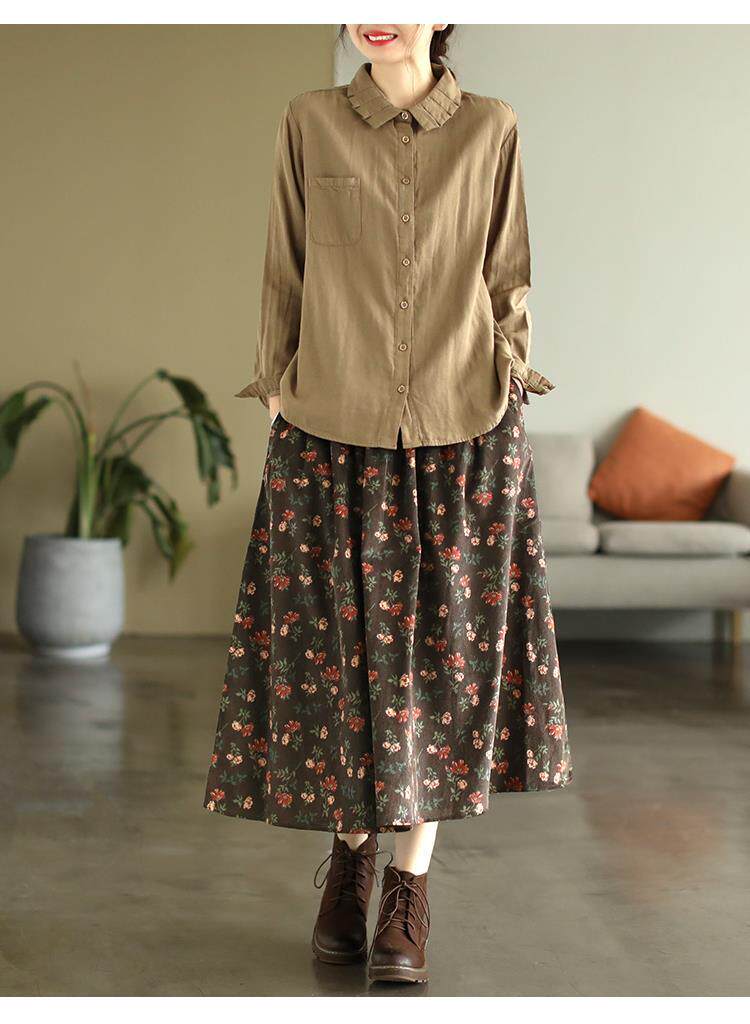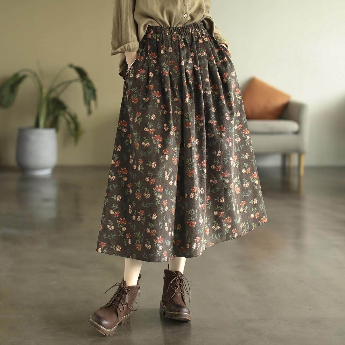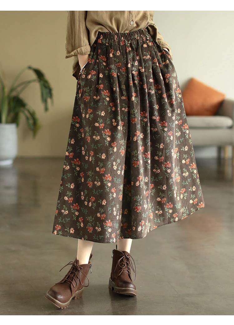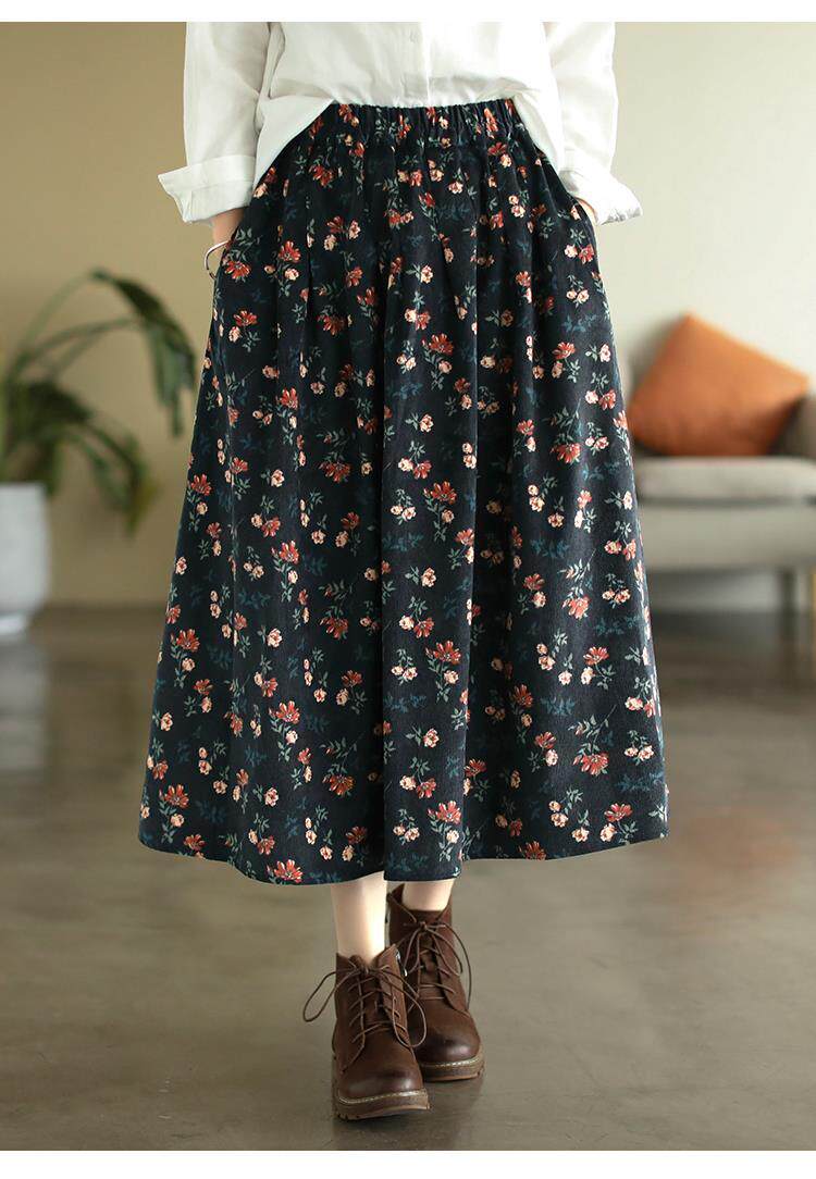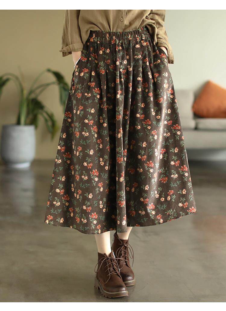 Pure cotton floral skirt spring and autumn new middle-aged mother's clothing retro age-reducing large size temperament high-waisted a-line skirt for women
