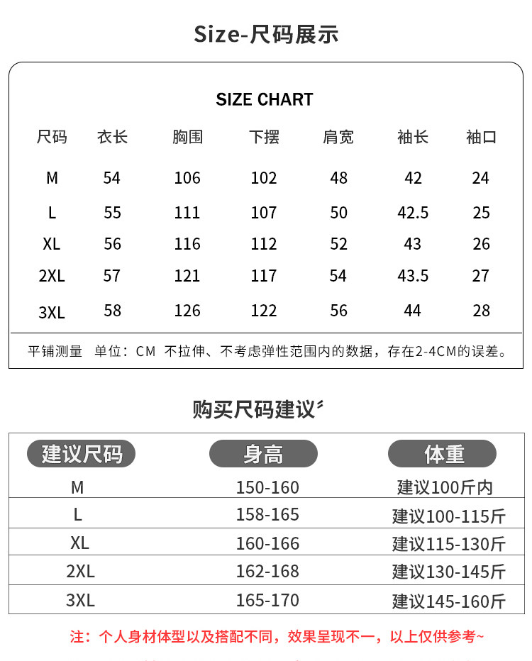 China (cm) 160-165/84-86 165-170 / 88-90 167-172 / 92-96 168-173 / 98-102 170-176 / 106-110