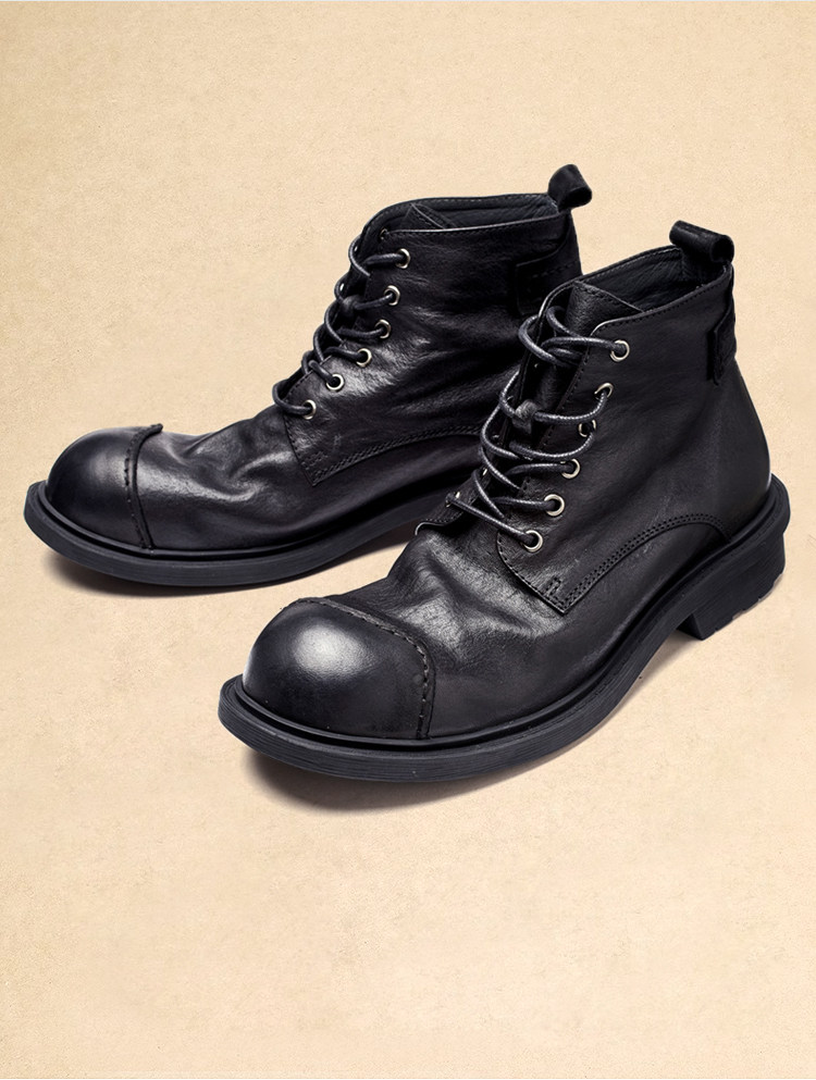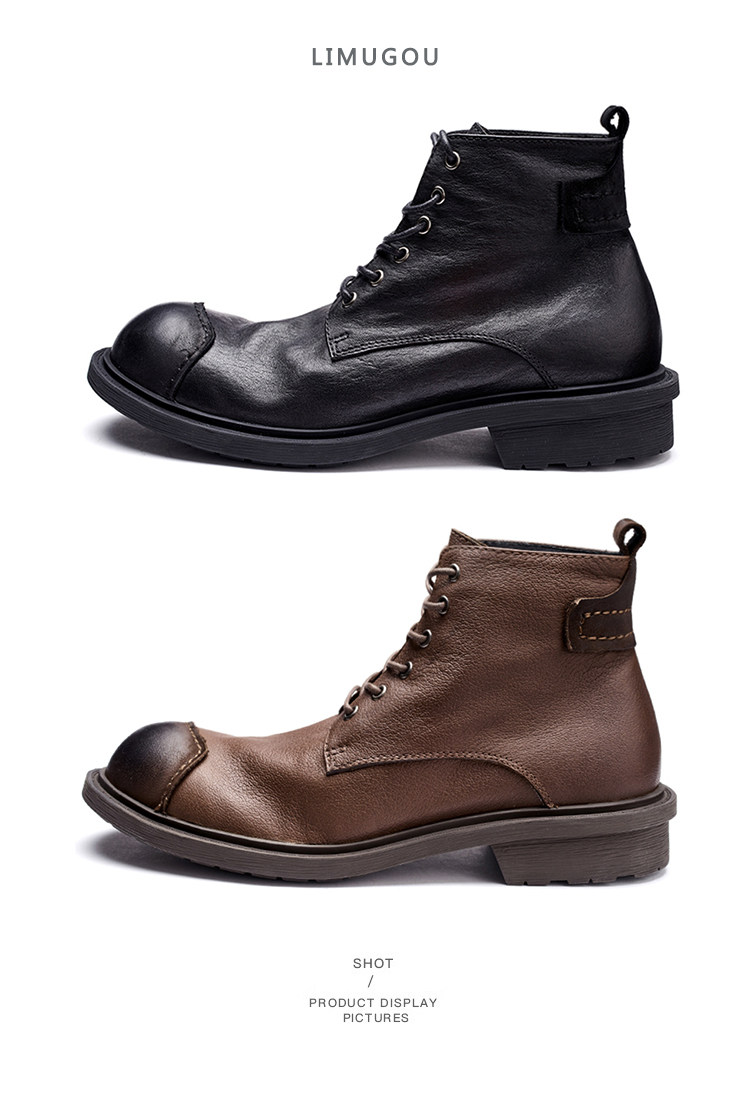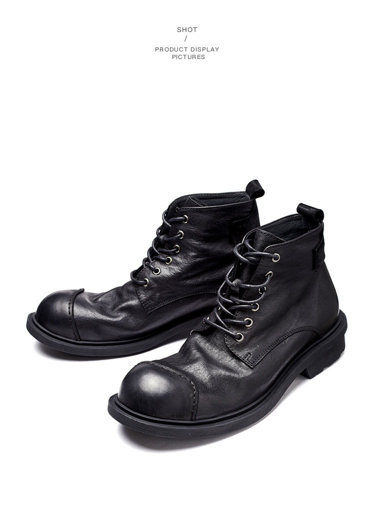 Martin Boots for Men, Genuine Leather, Retro, Large Toe, High-Top Leather Shoes, Winter British Short Boots, Men's Soft Leather Japanese Work Boots