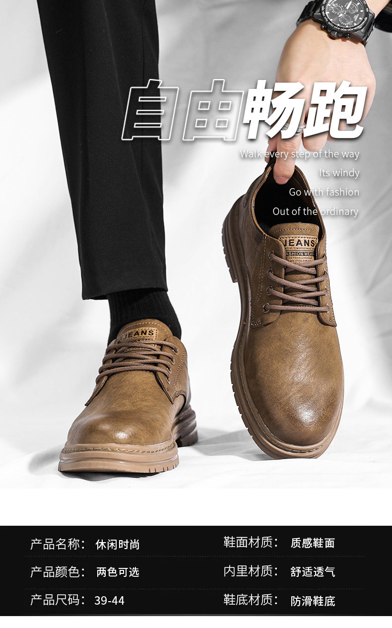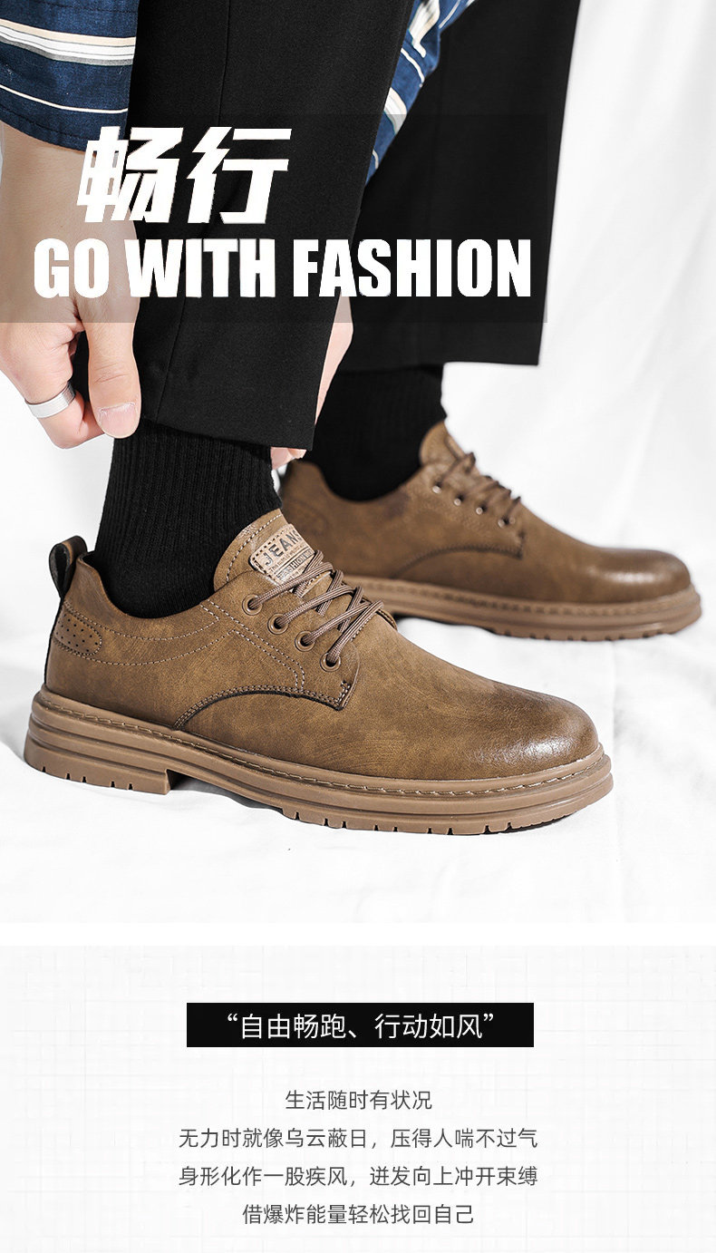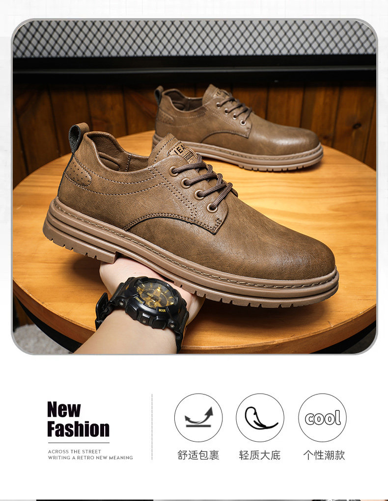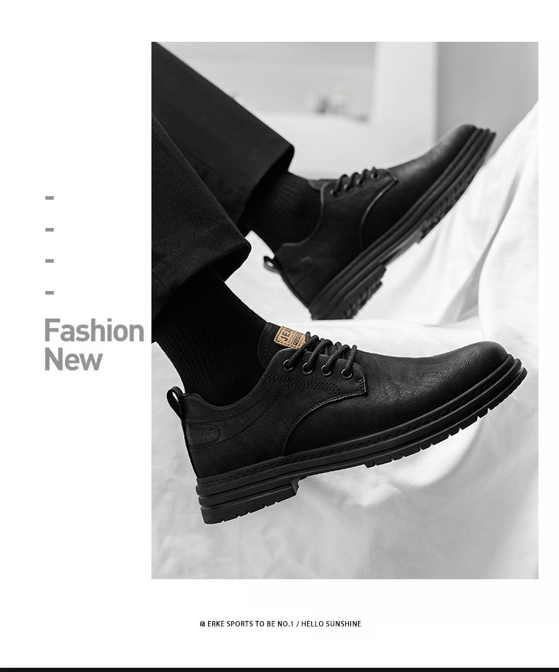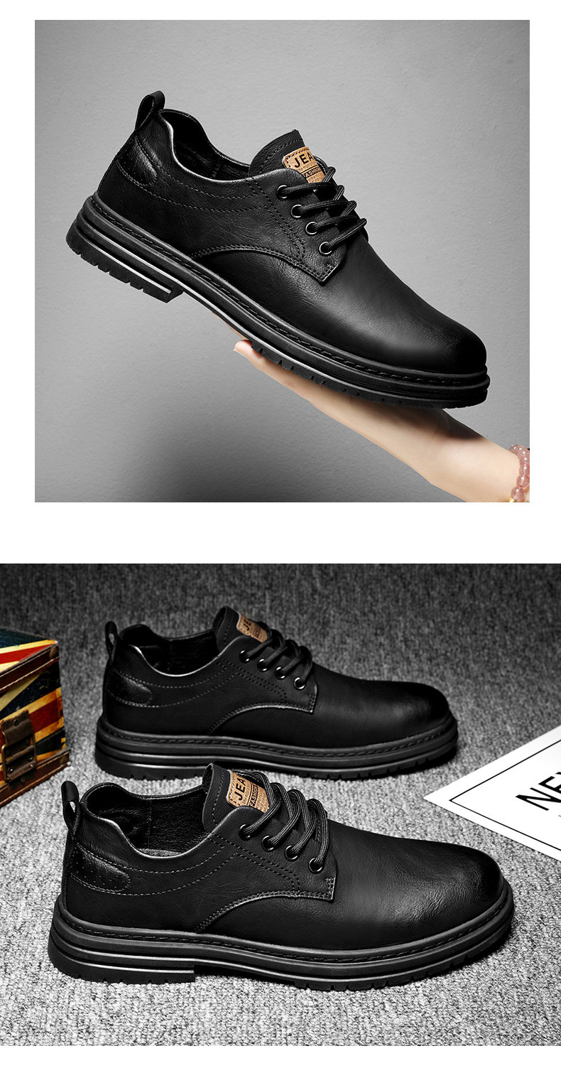Men's Leather Shoes Spring 2026 Genuine Leather British Style Business Casual Black Sports Soft Sole Low-top Martin Shoes