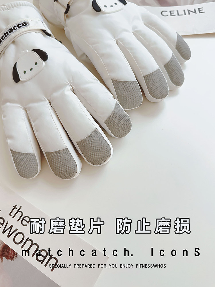 Women's Winter Ski Gloves, Cute, Fleece-Lined, Thick Cotton, Warm, Windproof, for Playing in the Snow, Outdoor Cycling, Motorcycle, Men's Touch Screen