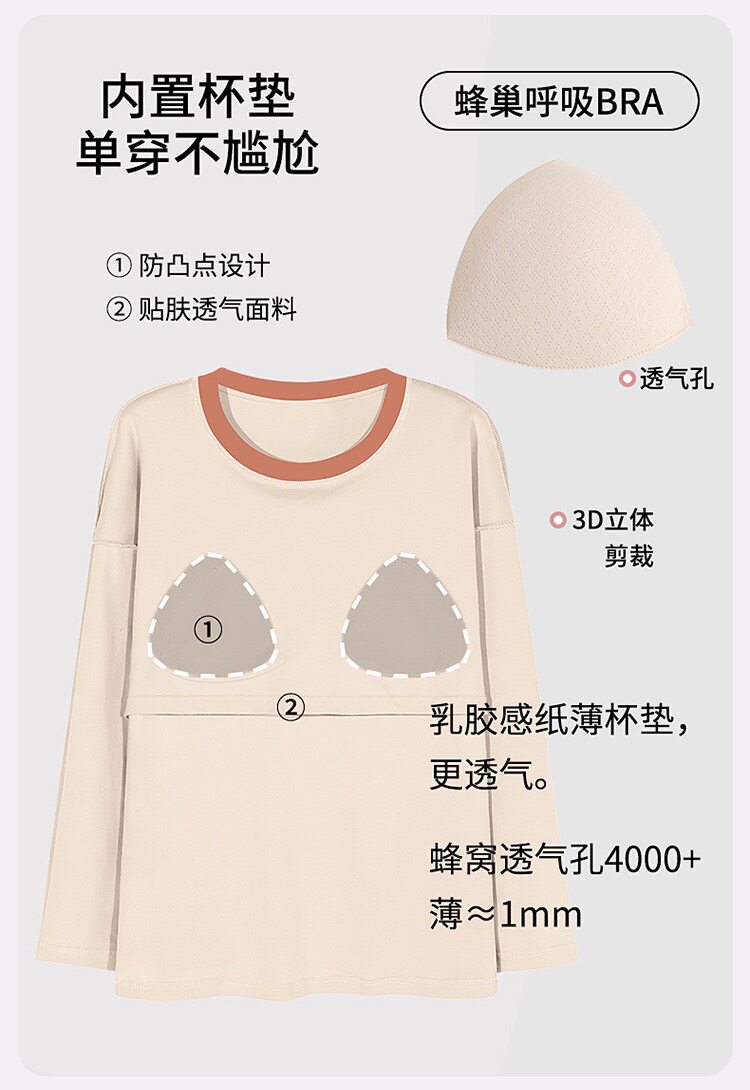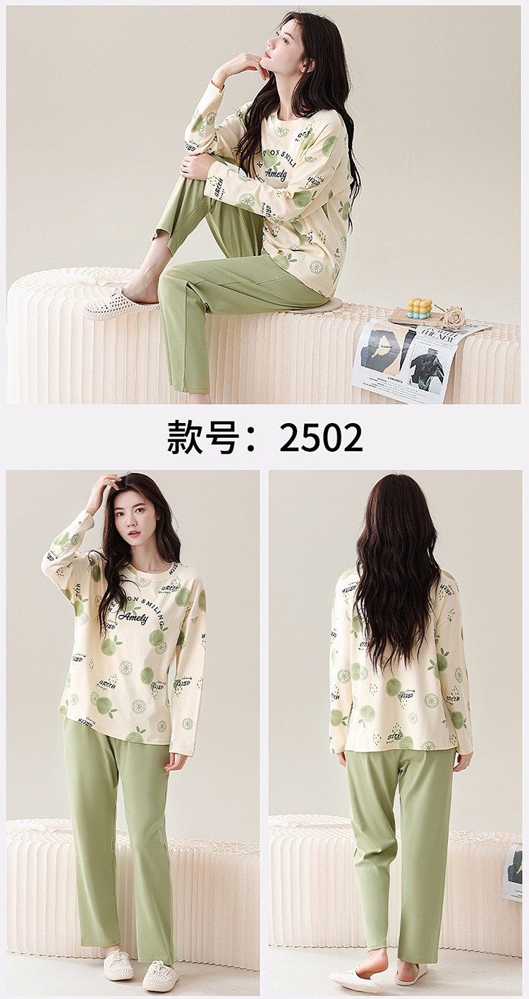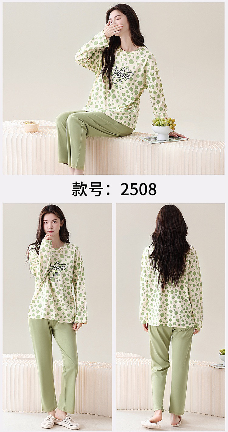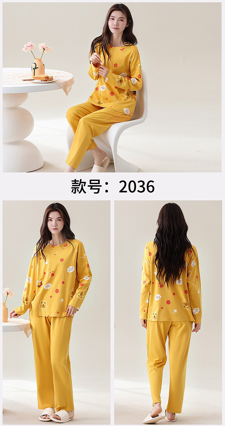 New Style 100% Pure Cotton Pajamas for Women with Chest Pads, Cute Spring and Autumn Long-Sleeved Cotton Round-Neck Home Wear Set That Can Be Worn Outside