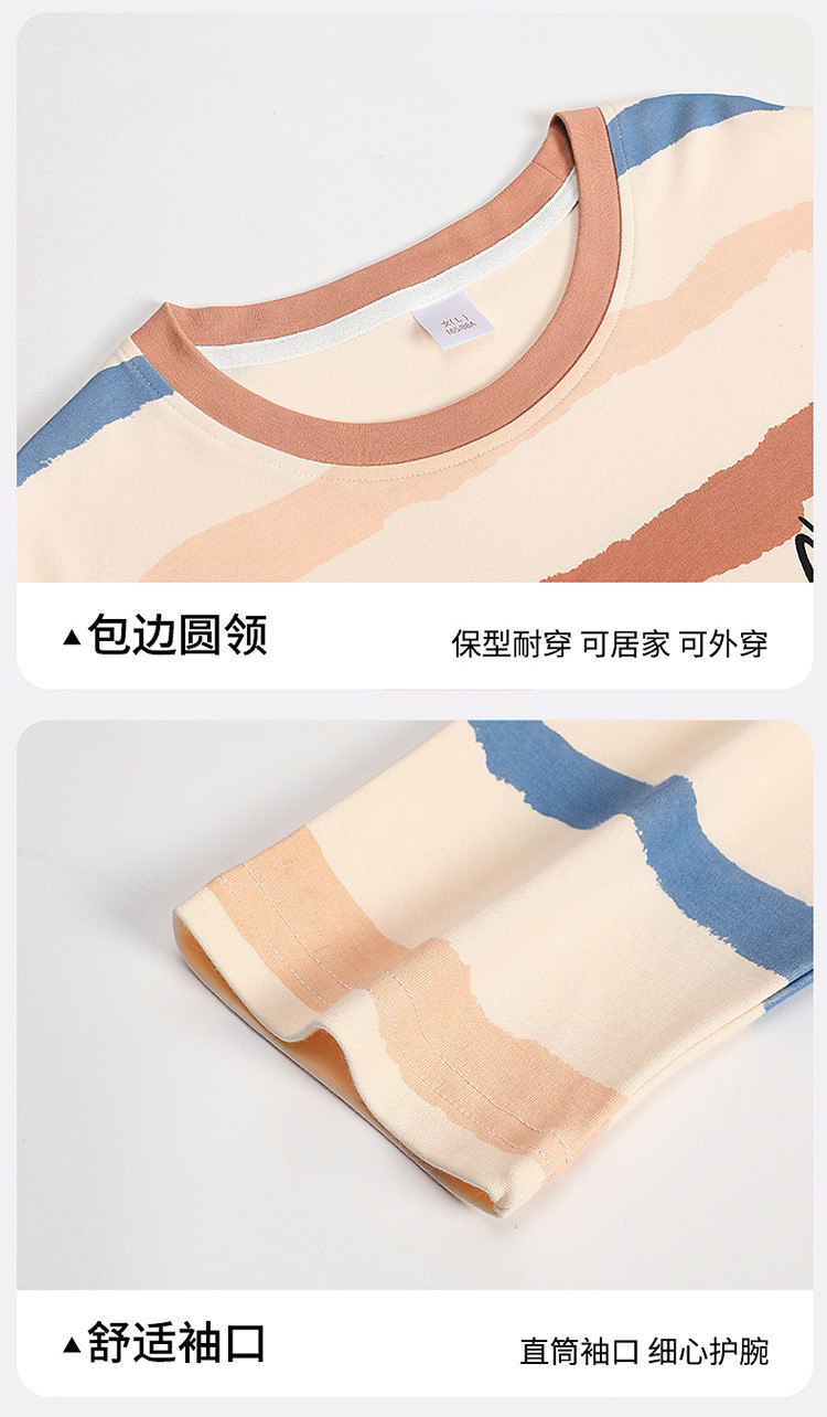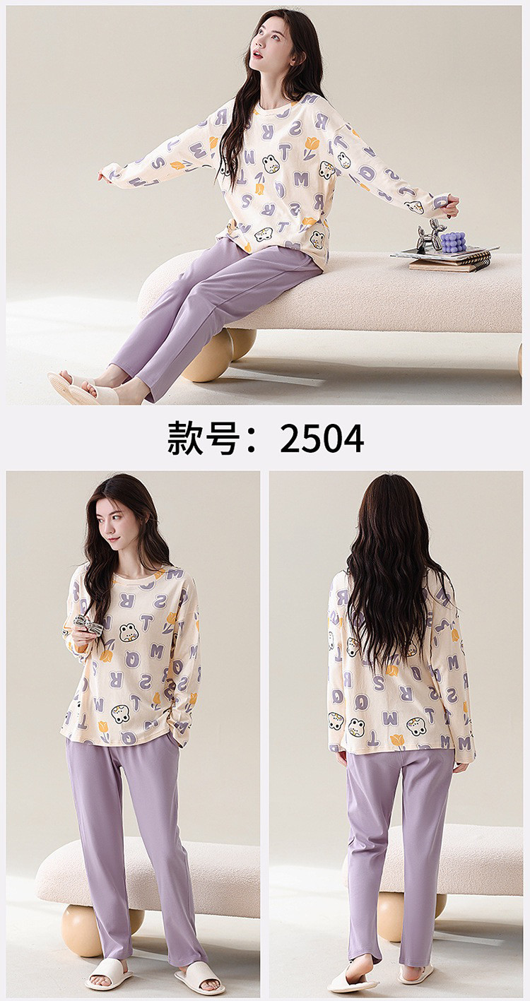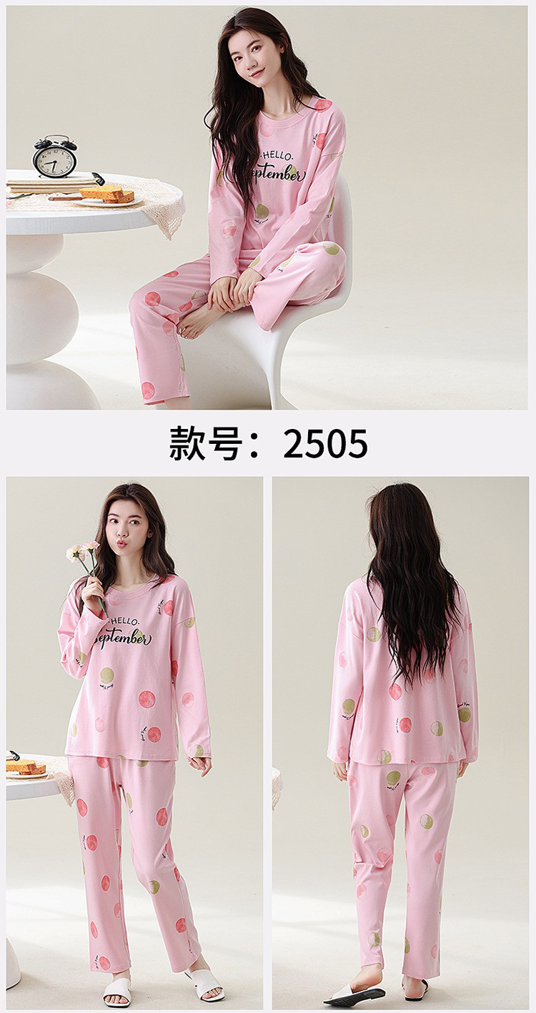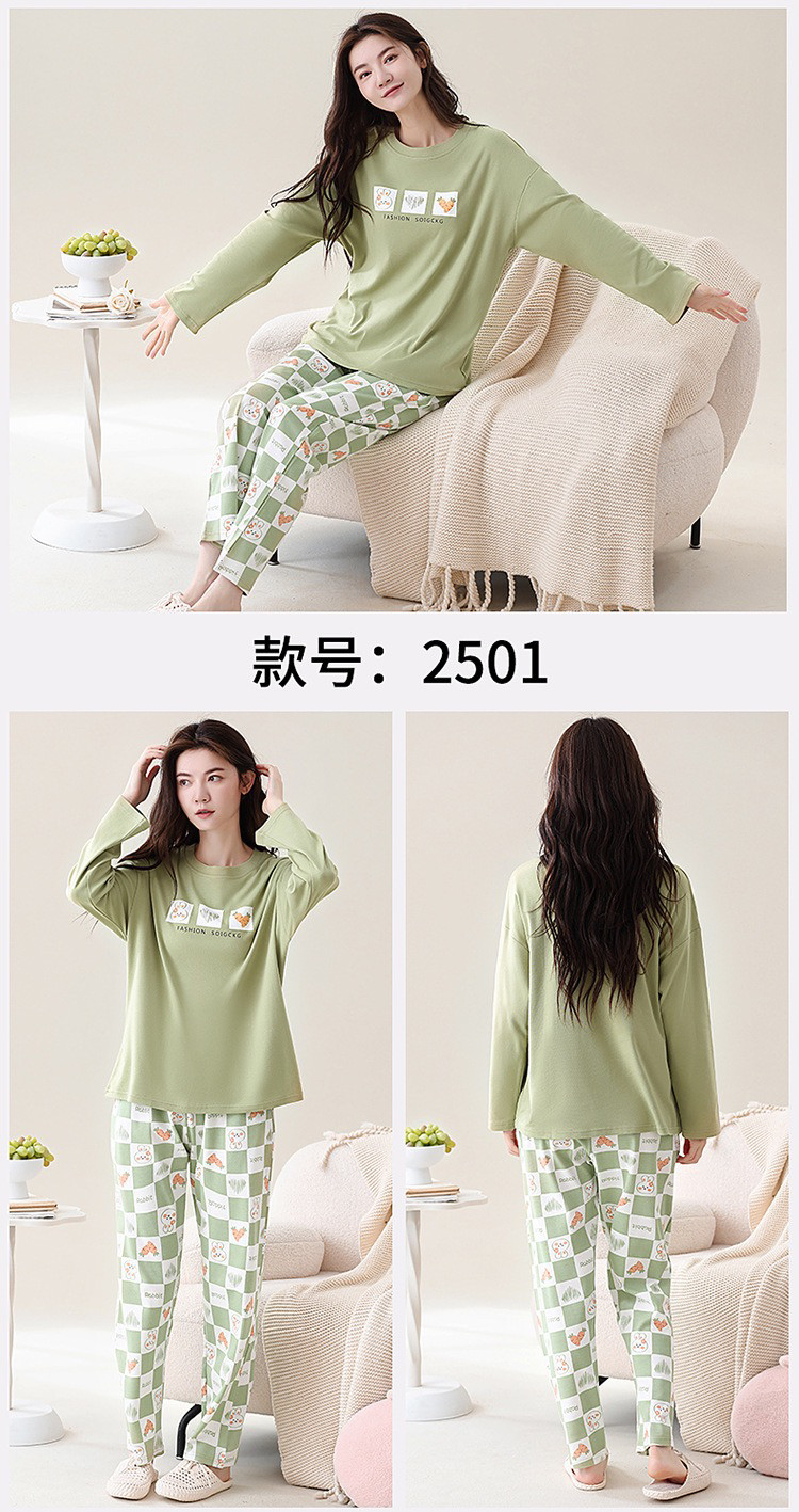 New Style 100% Pure Cotton Pajamas for Women with Chest Pads, Cute Spring and Autumn Long-Sleeved Cotton Round-Neck Home Wear Set That Can Be Worn Outside