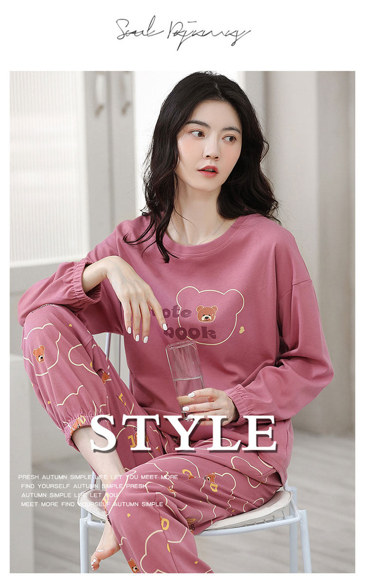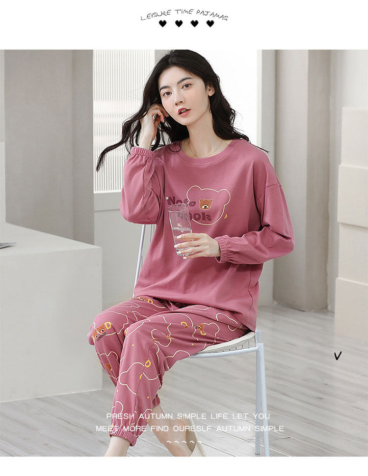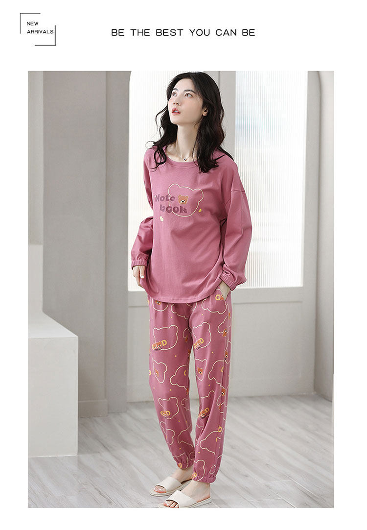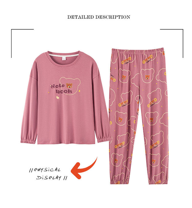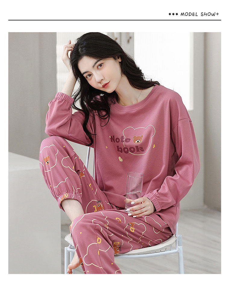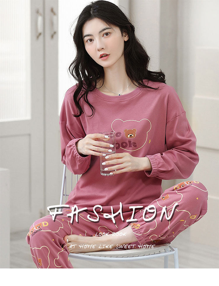 100% Pure Cotton Pajamas for Women, Spring, Autumn and Winter, Round Neck, Long Sleeves, Cartoon Casual Suits, Home Clothes, Can Be Worn Outside
