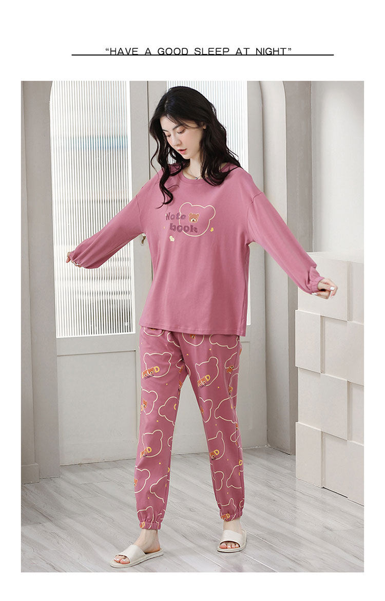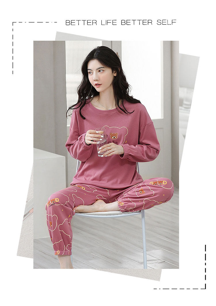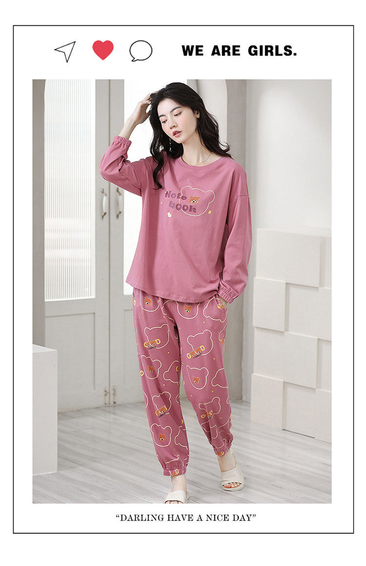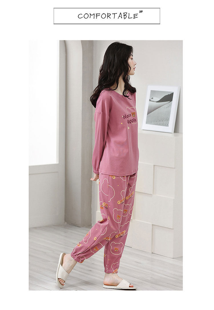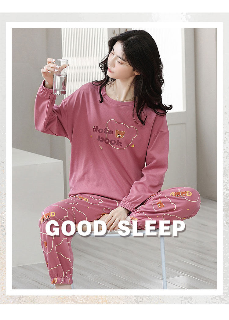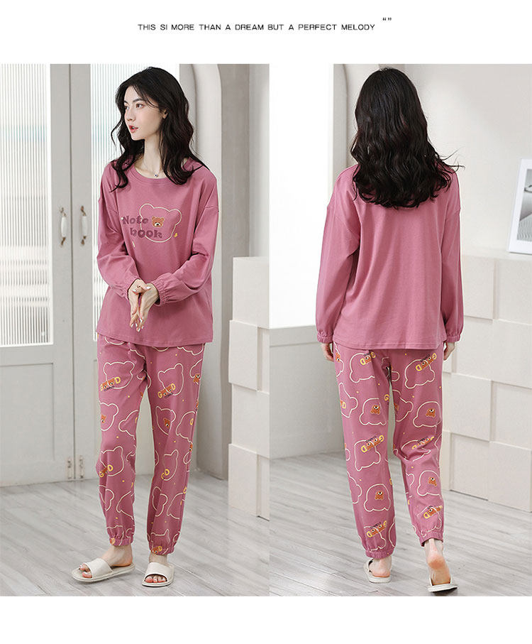 100% Pure Cotton Pajamas for Women, Spring, Autumn and Winter, Round Neck, Long Sleeves, Cartoon Casual Suits, Home Clothes, Can Be Worn Outside