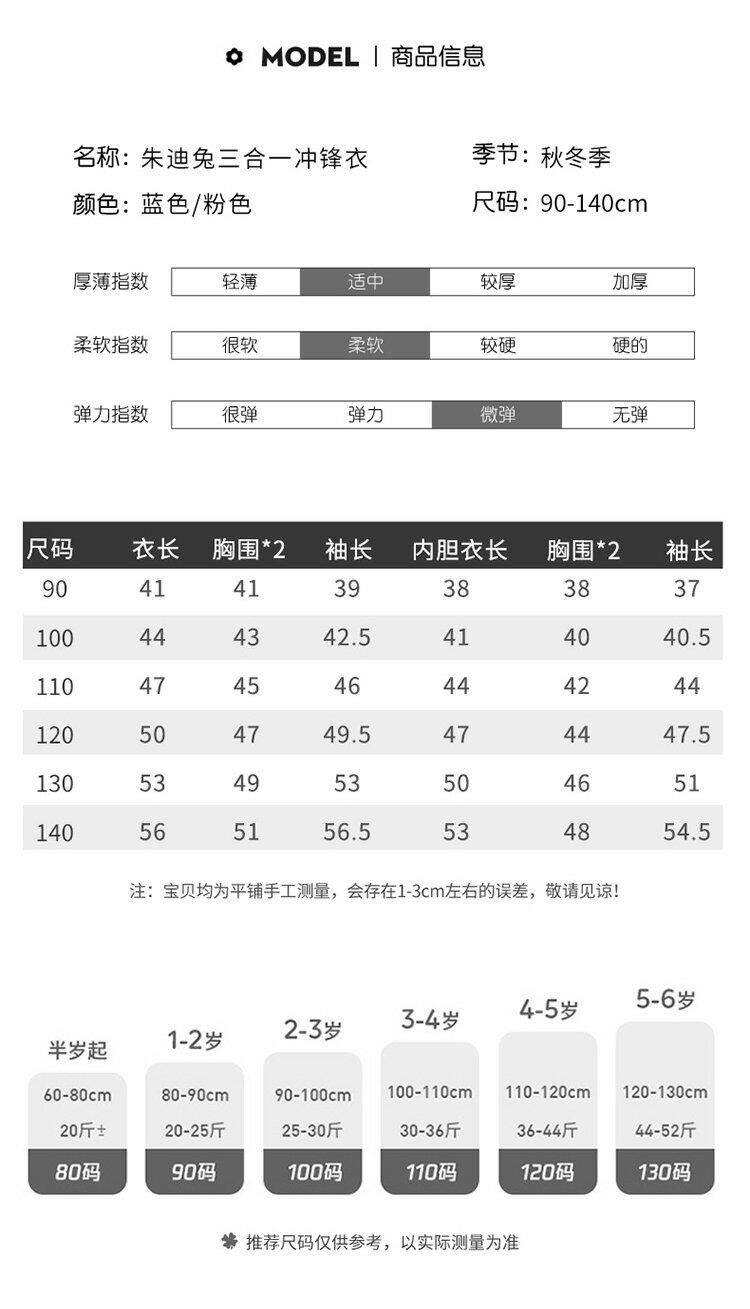 Zootopia Bunny Officer Judy Clothes Girls Jacket Three-in-One Detachable Children's Clothing Outdoor Cover