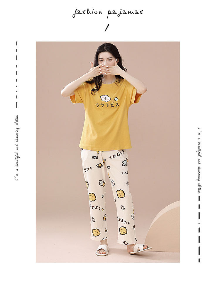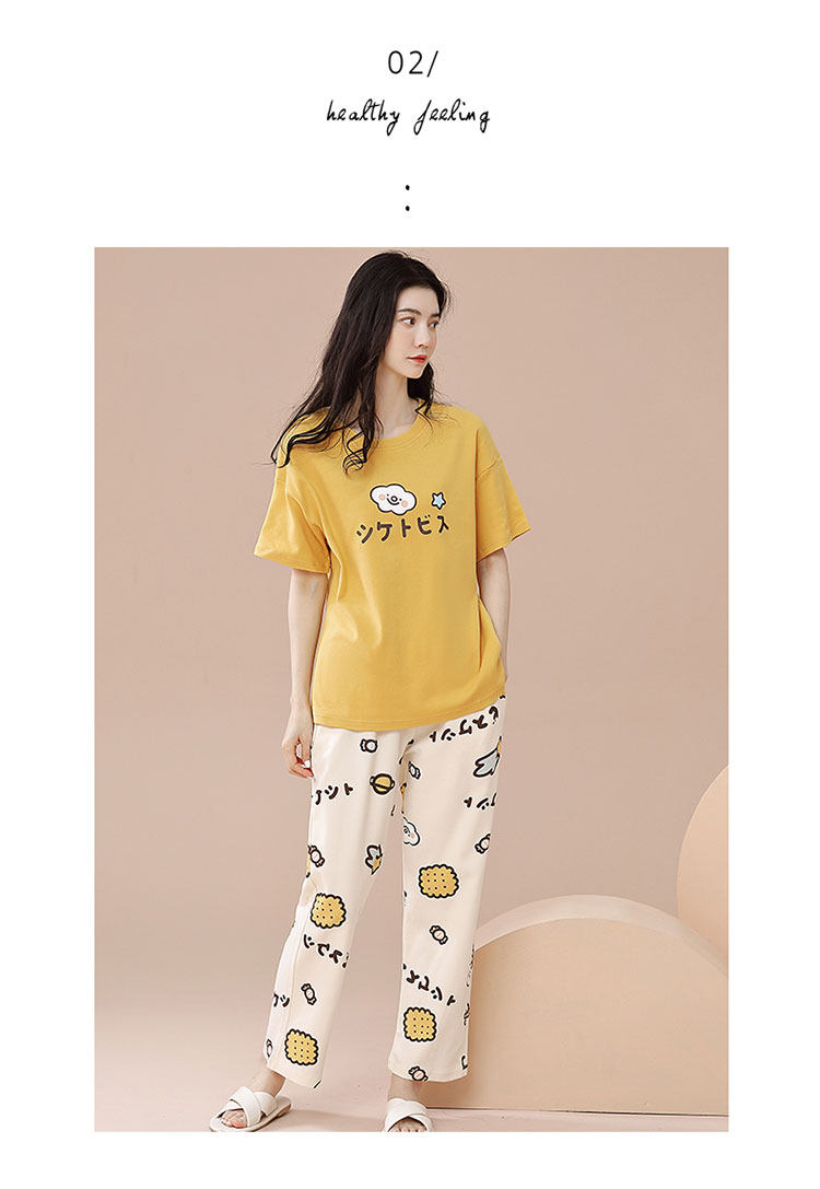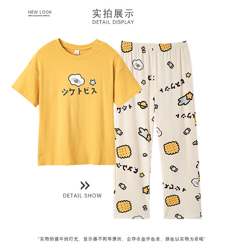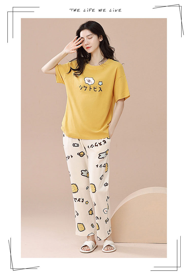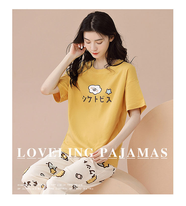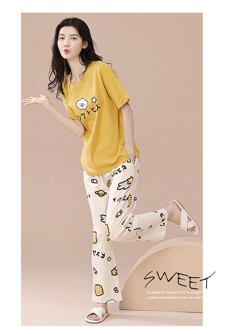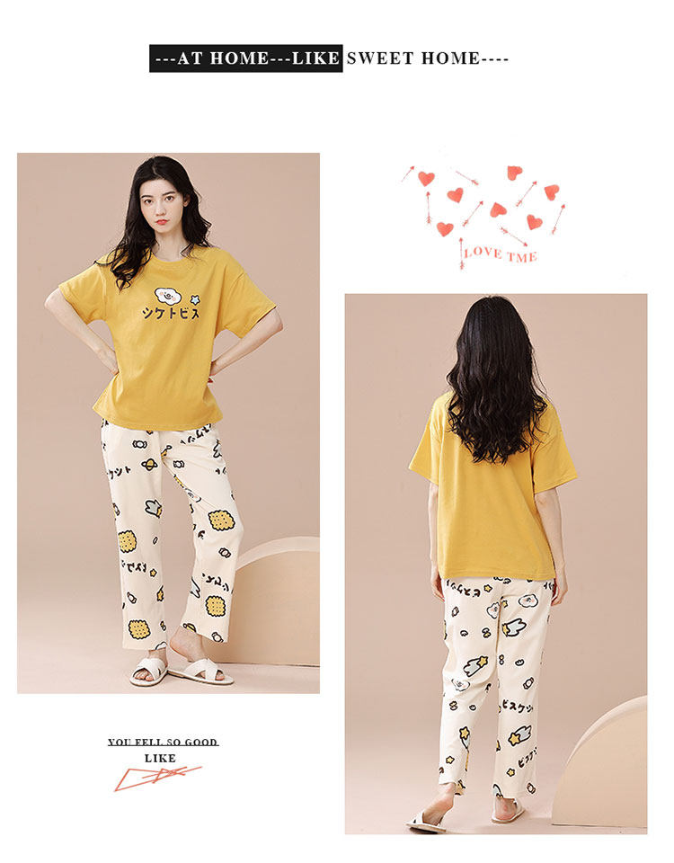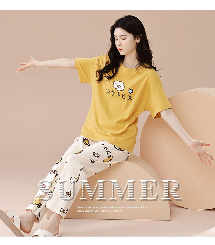 New Style 100% Pure Cotton Short-Sleeved Long Pants Pajamas for Women, Summer New Thin Cotton Casual Home Wear Set for Outerwear