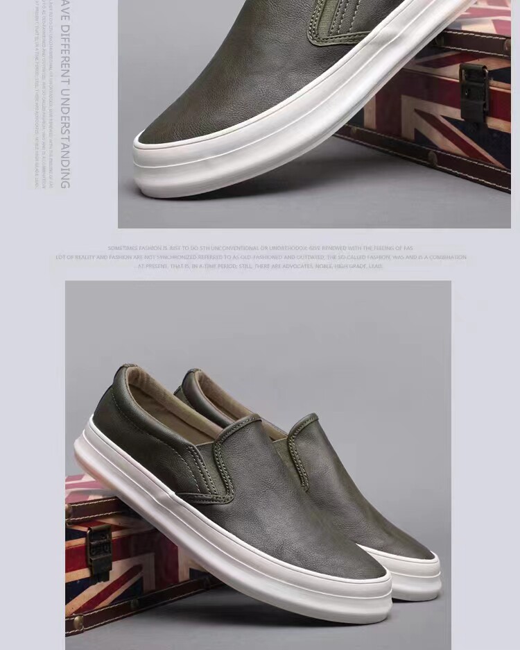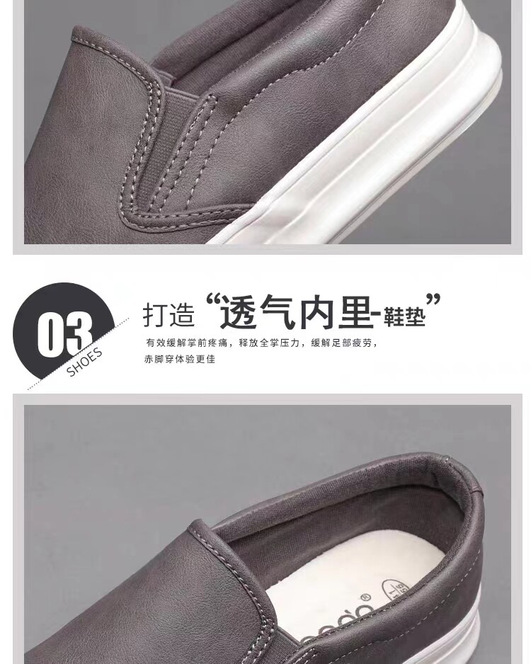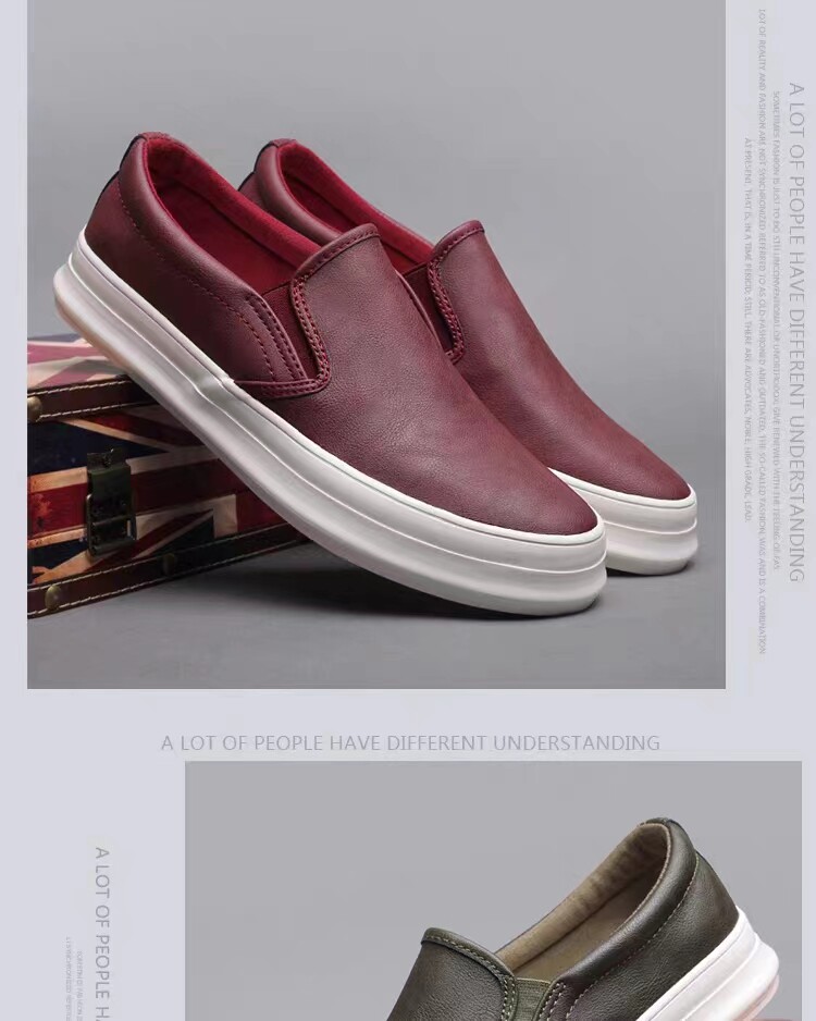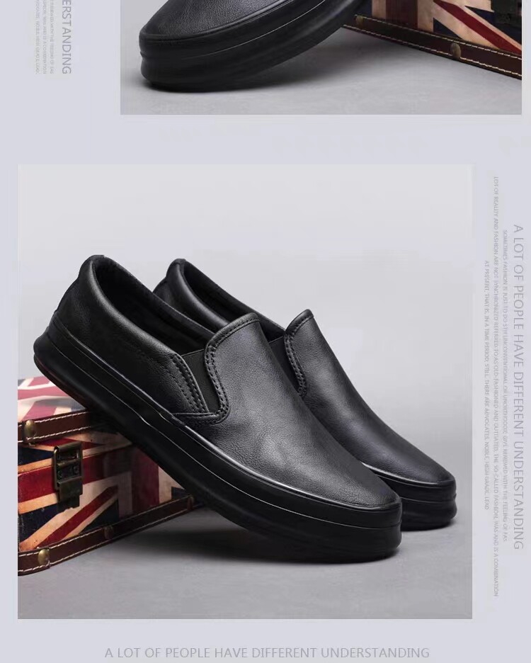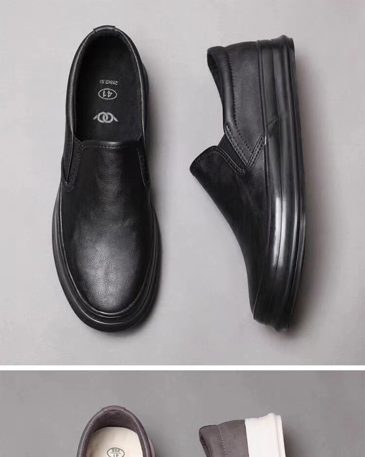 Spring and Autumn men's thick-soled British casual leather shoes men's lazy slip-on loafers trendy men's business work shoes
