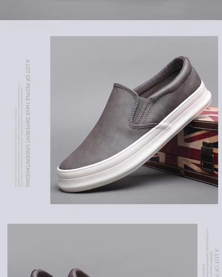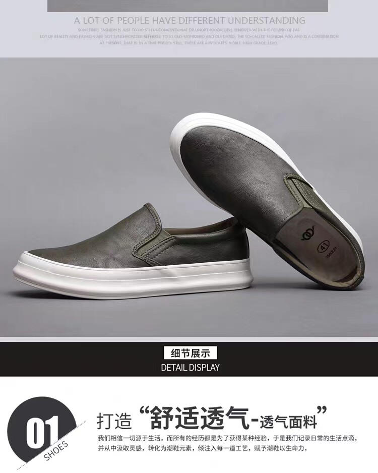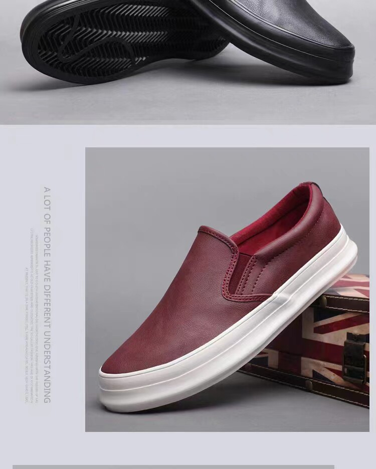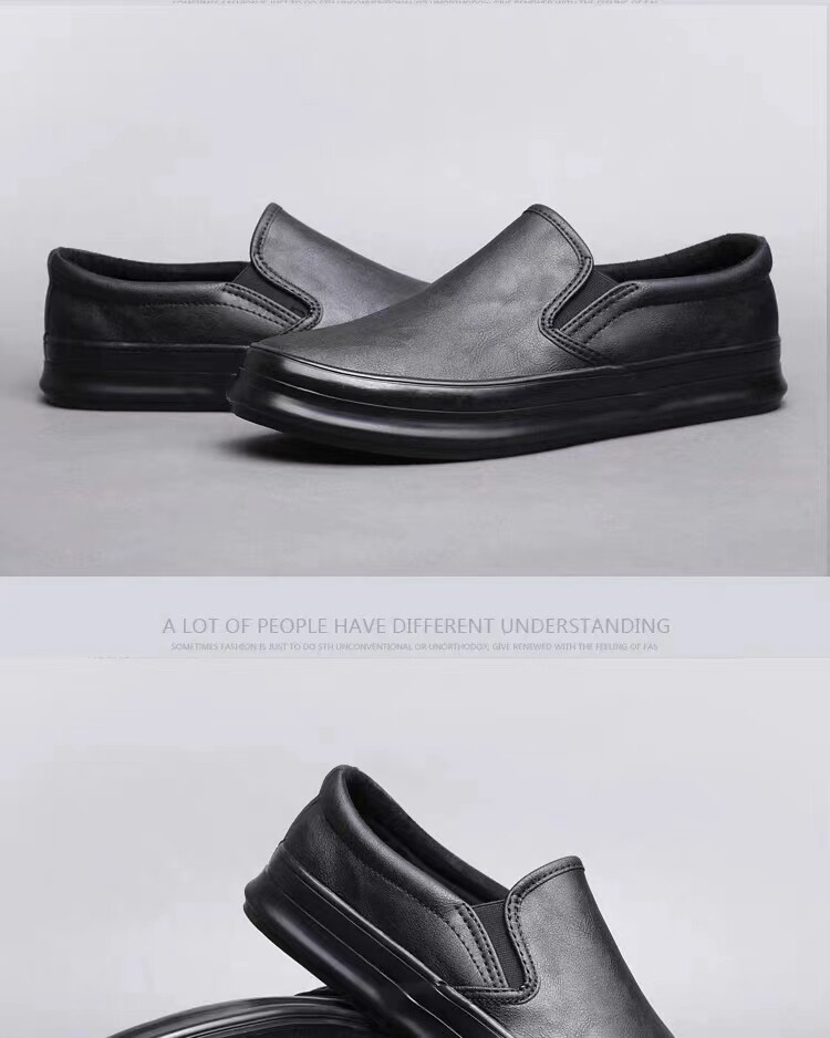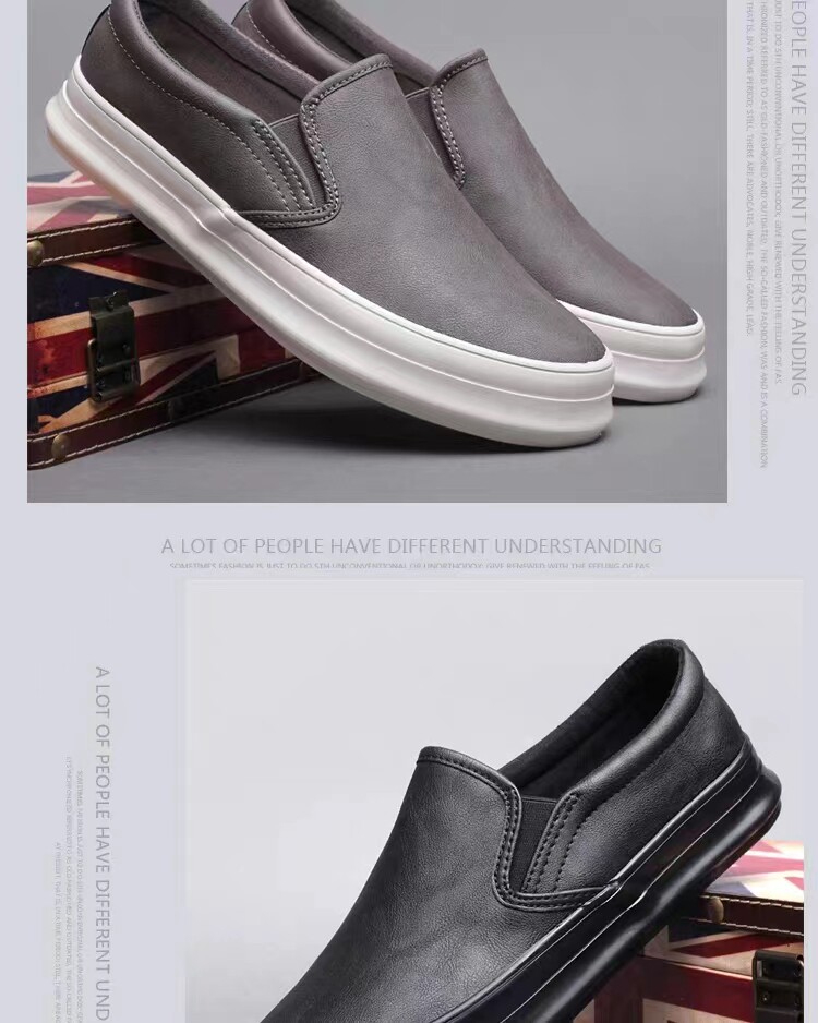 Spring and Autumn men's thick-soled British casual leather shoes men's lazy slip-on loafers trendy men's business work shoes