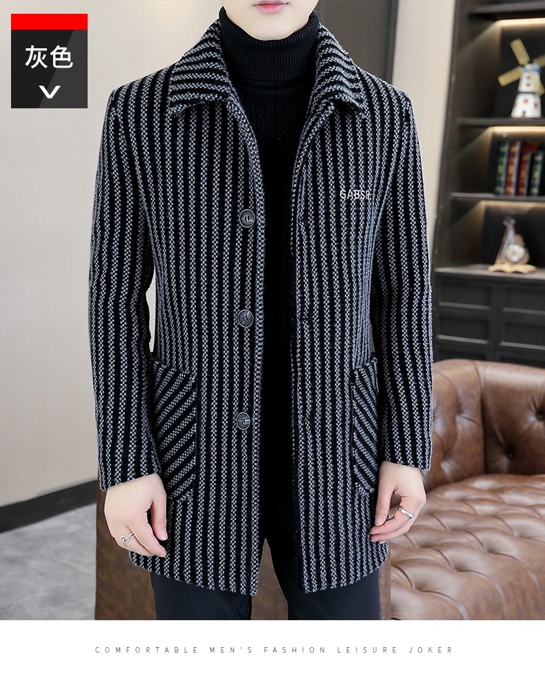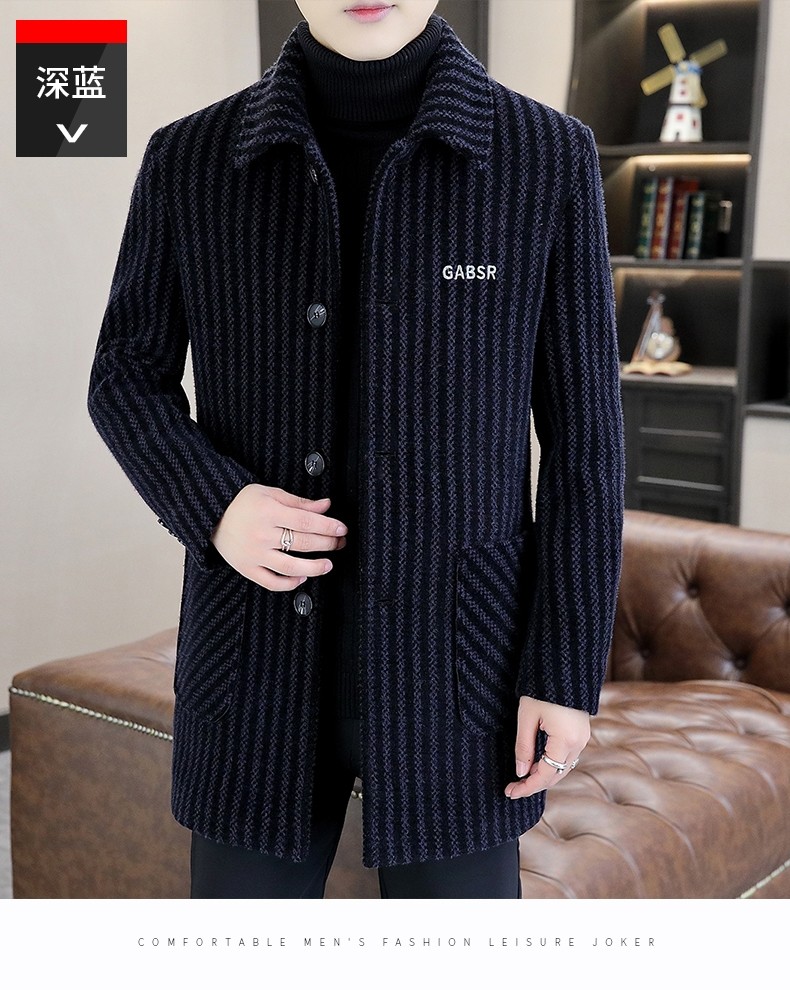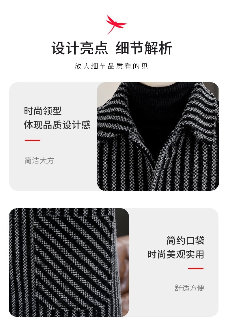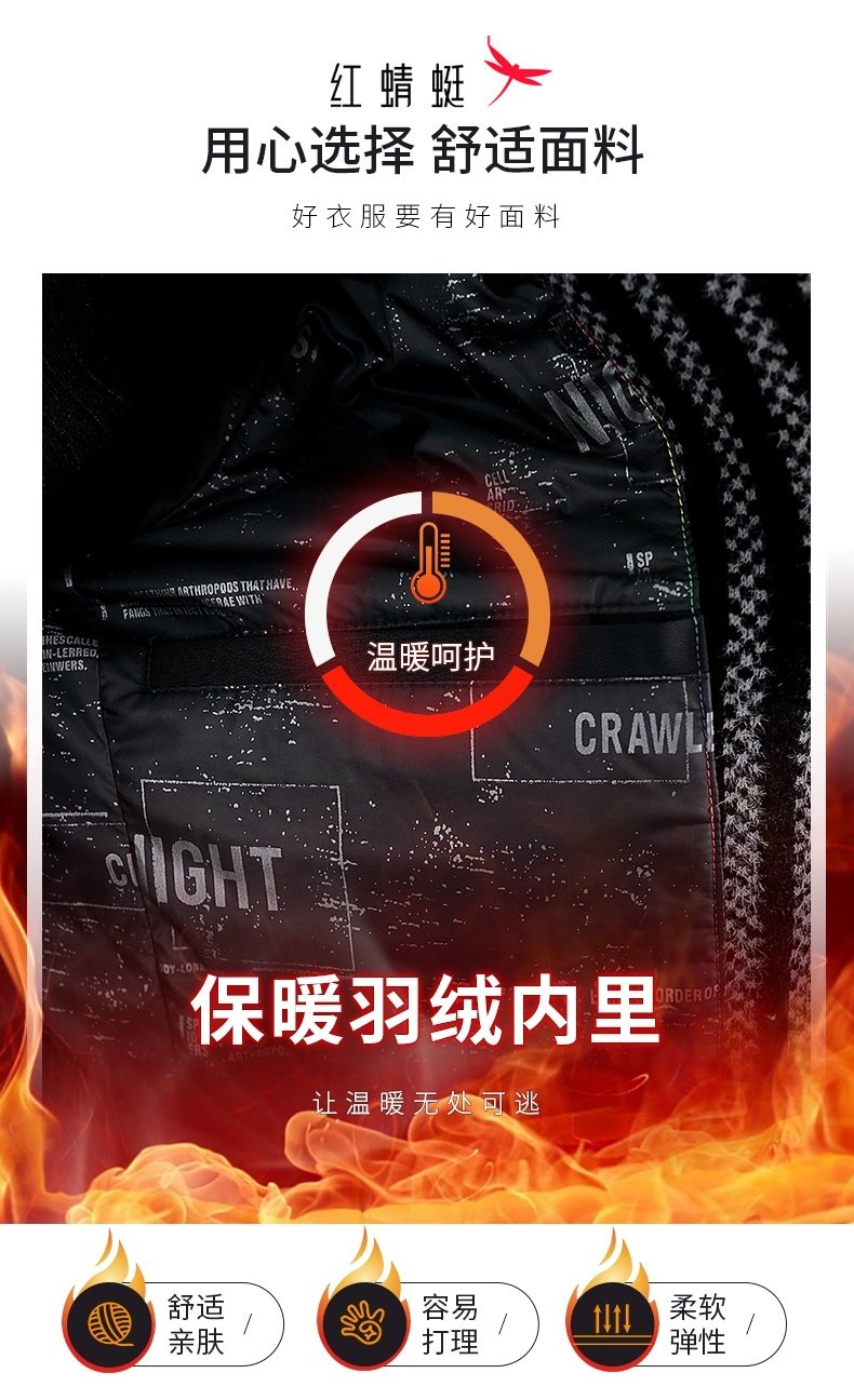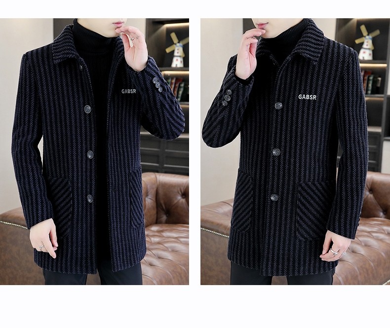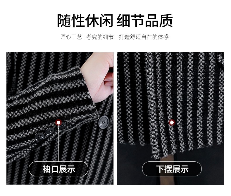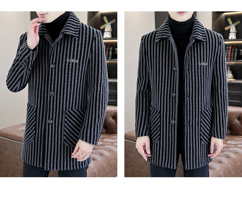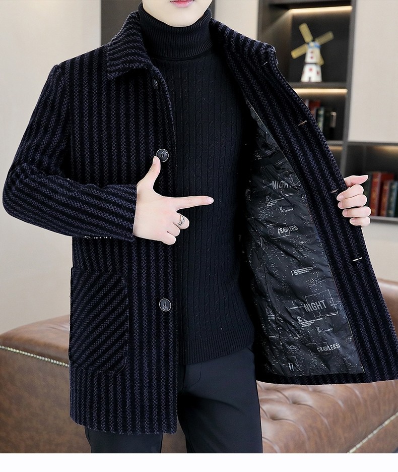 红蜻蜓中长款毛呢羽绒服男士冬季新款休闲条纹大衣加绒风衣外套男
