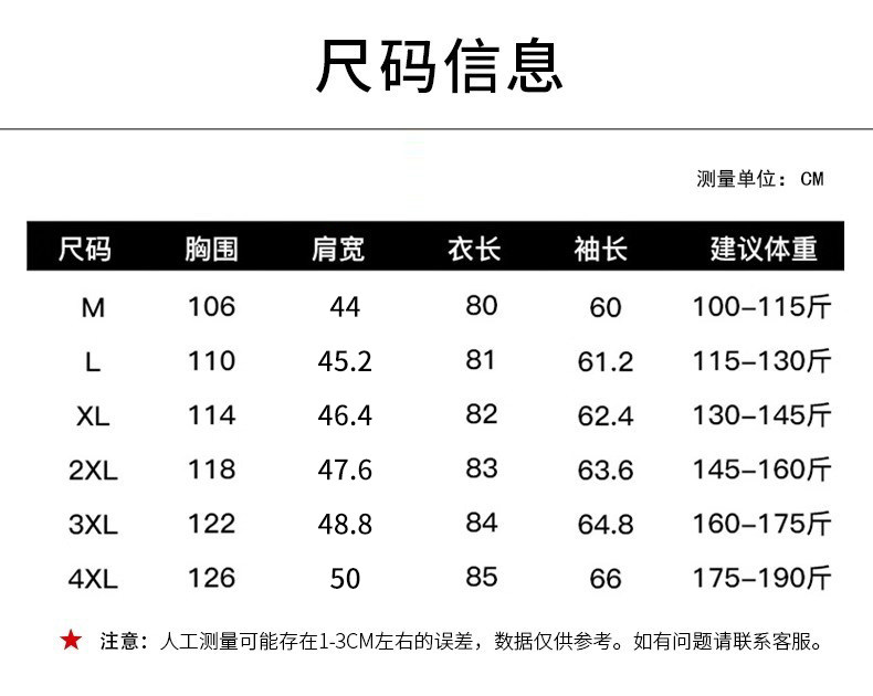 China (cm) 165 / 88-90 170 / 96-98 175 / 108-110 180 / 118-122 185 / 126-130