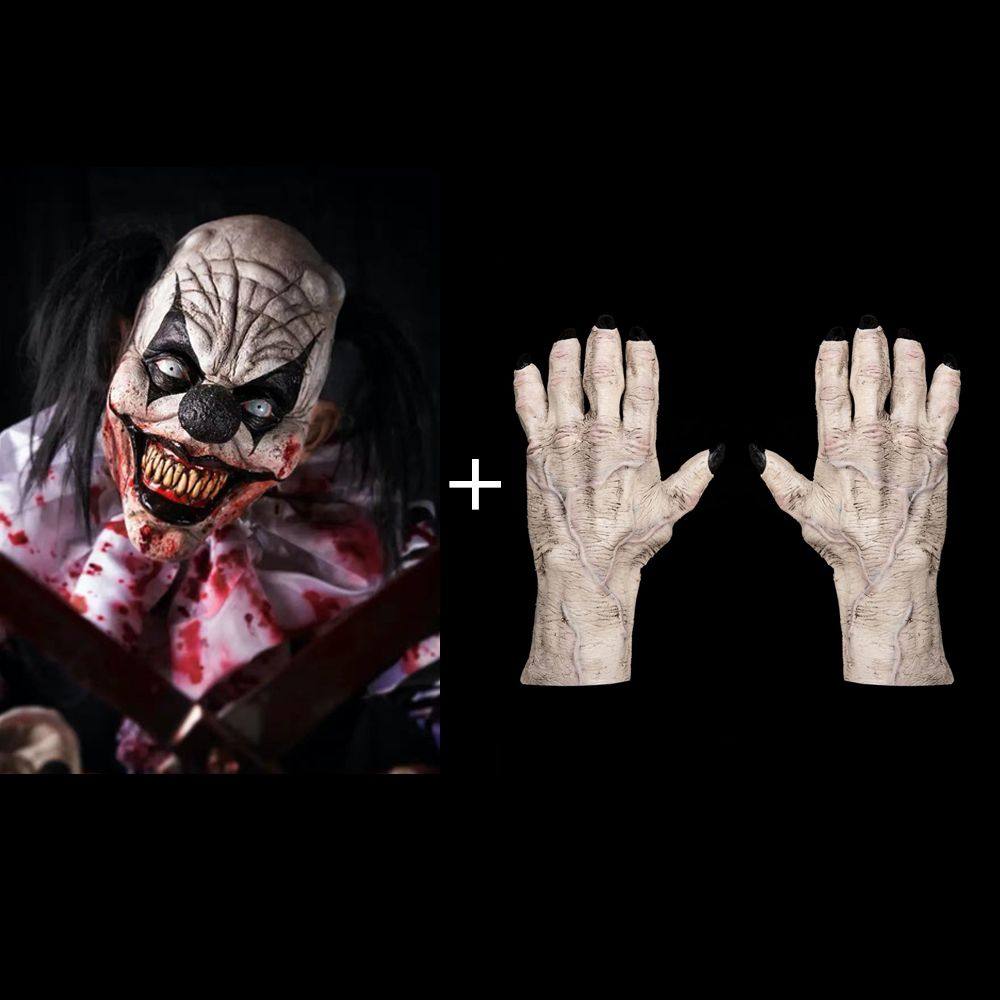Horror Circus Clown Mask Full Face Scary Headgear Halloween Cos Costume Clothing for Adult Men