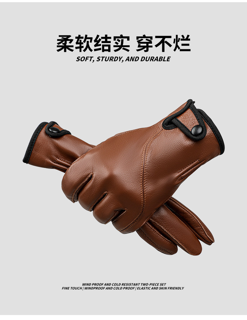 Genuine Leather Gloves for Men, Brown, Fleece-Lined, Winter Warm, Touchscreen Compatible, Cold-Proof, Vintage Cowhide Riding Gloves for Motorcycles