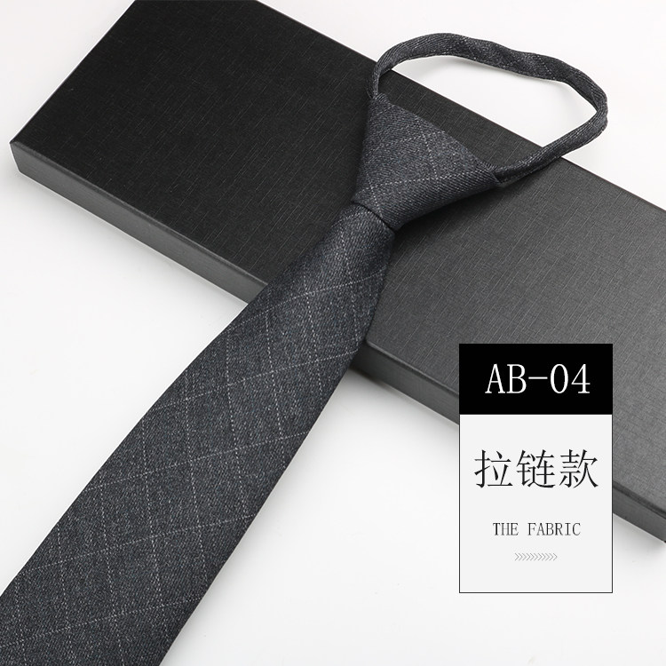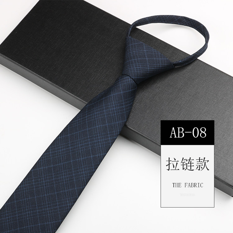 Men's tie zipper easy to pull formal wedding British style blue gray plaid knot-free hand-tied tie