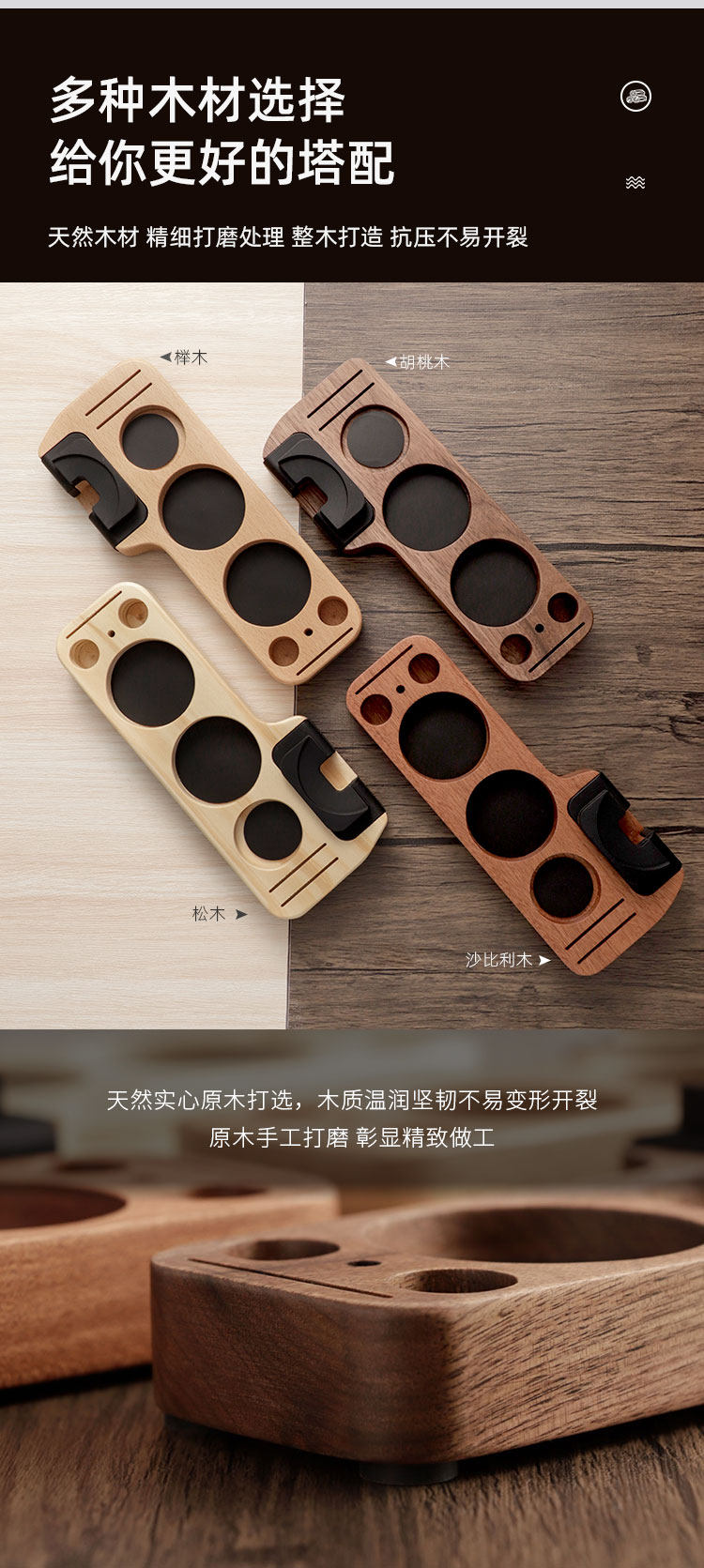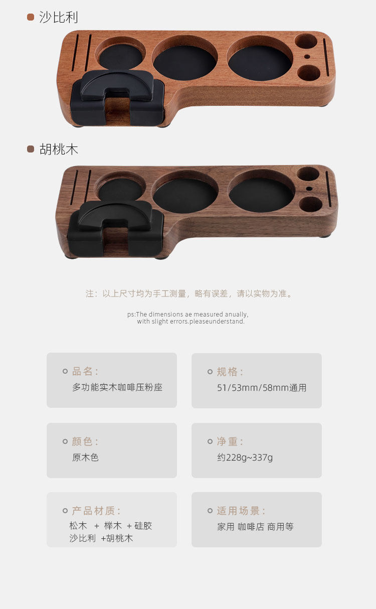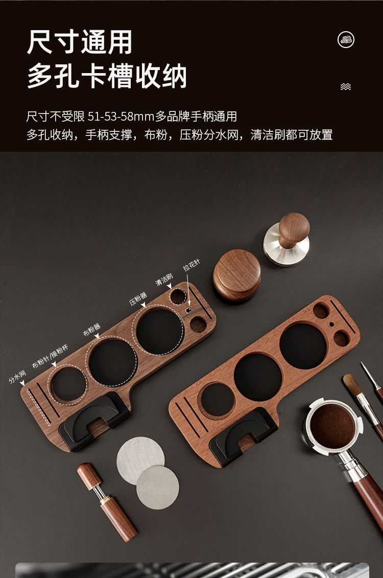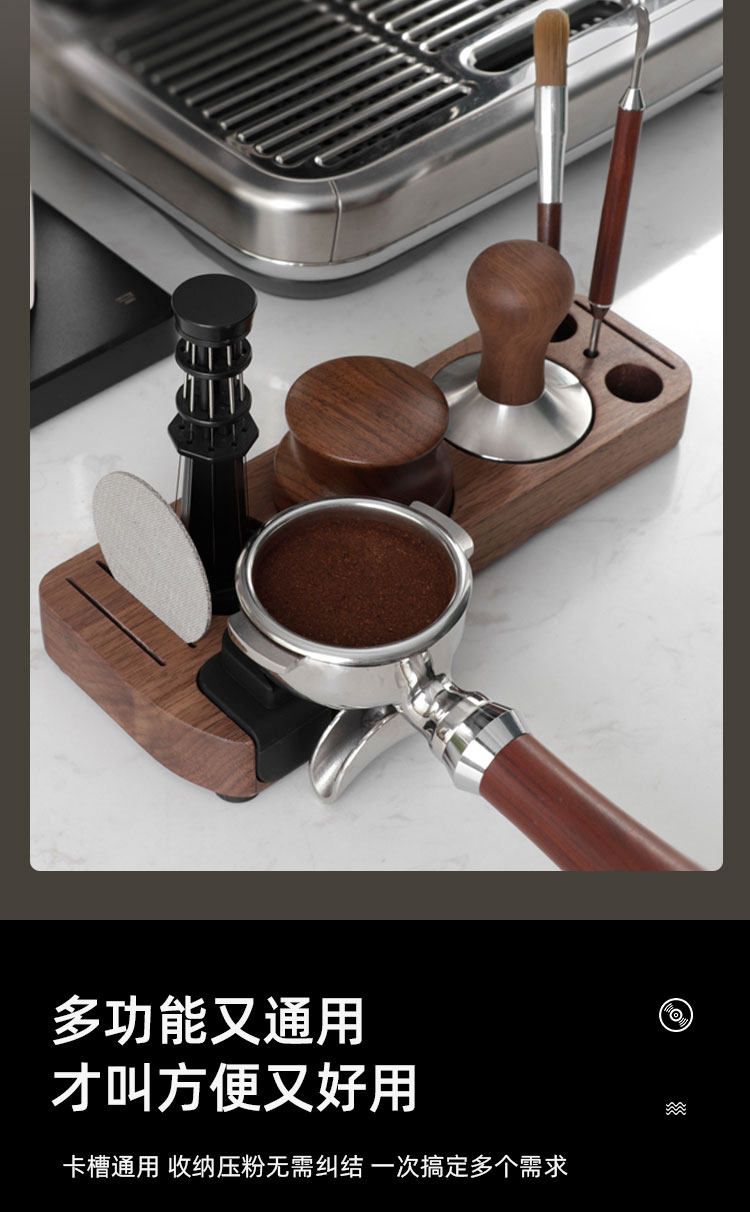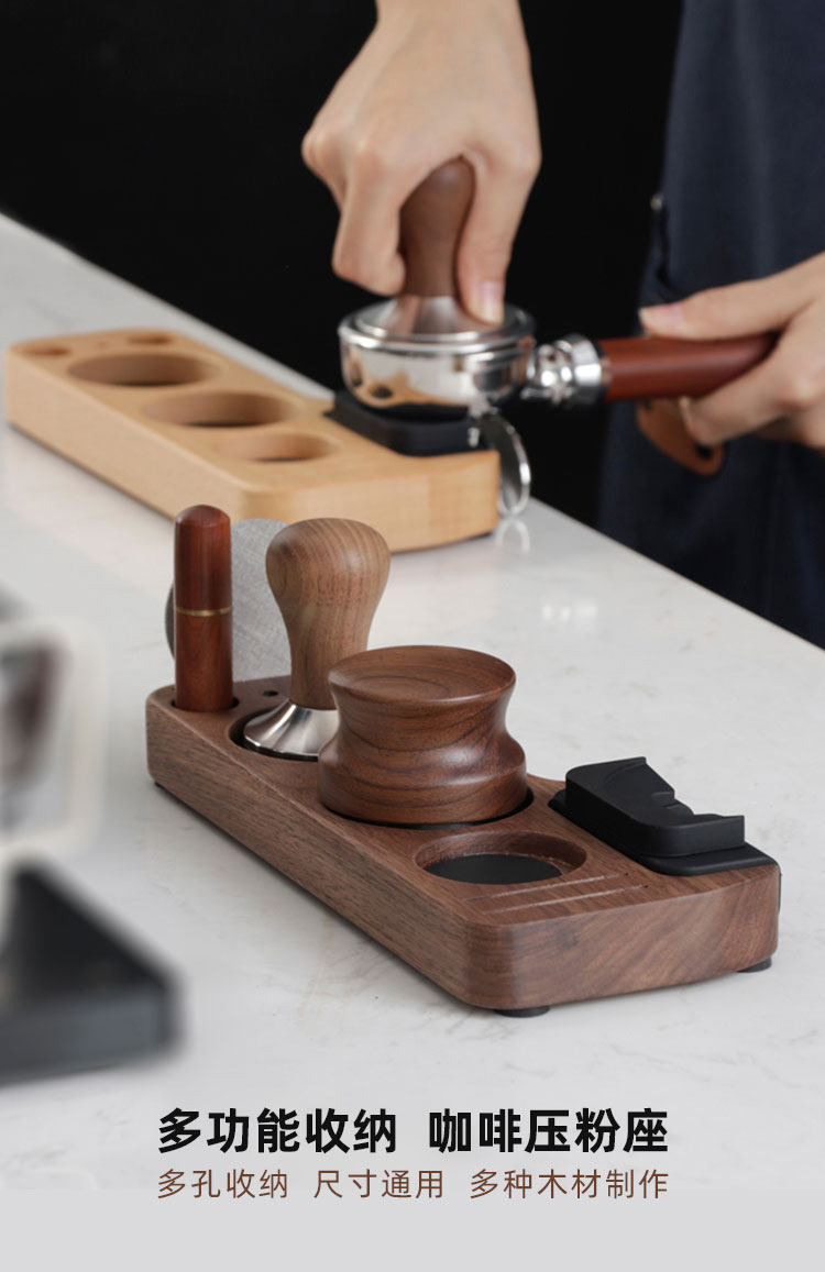 Coffee machine handle supporting equipment storage seat walnut coffee press powder seat auxiliary press powder universal coffee filling
