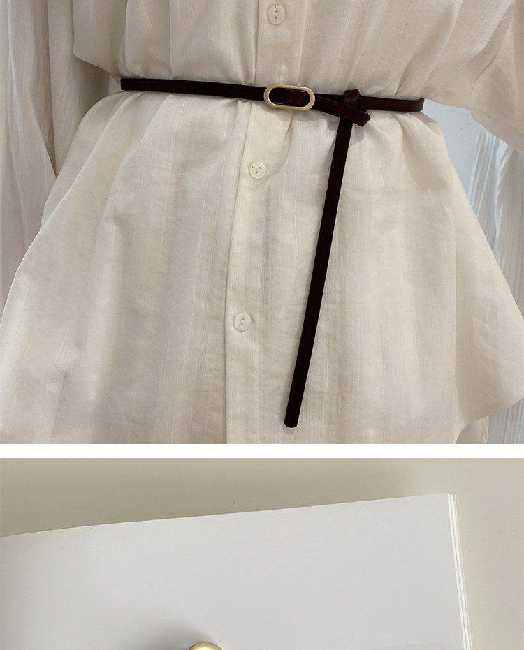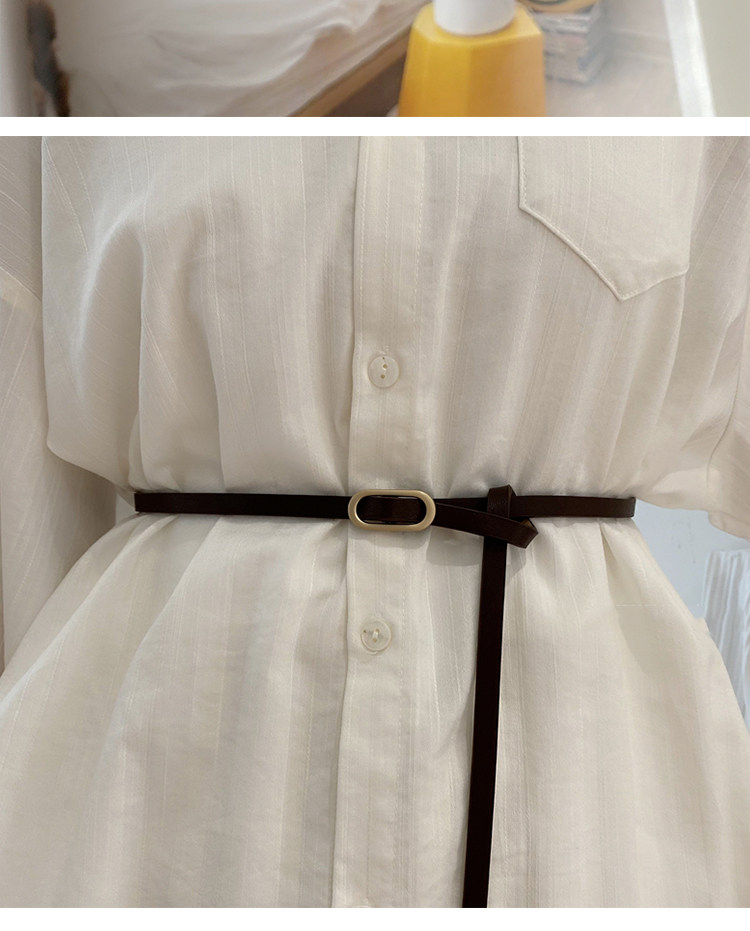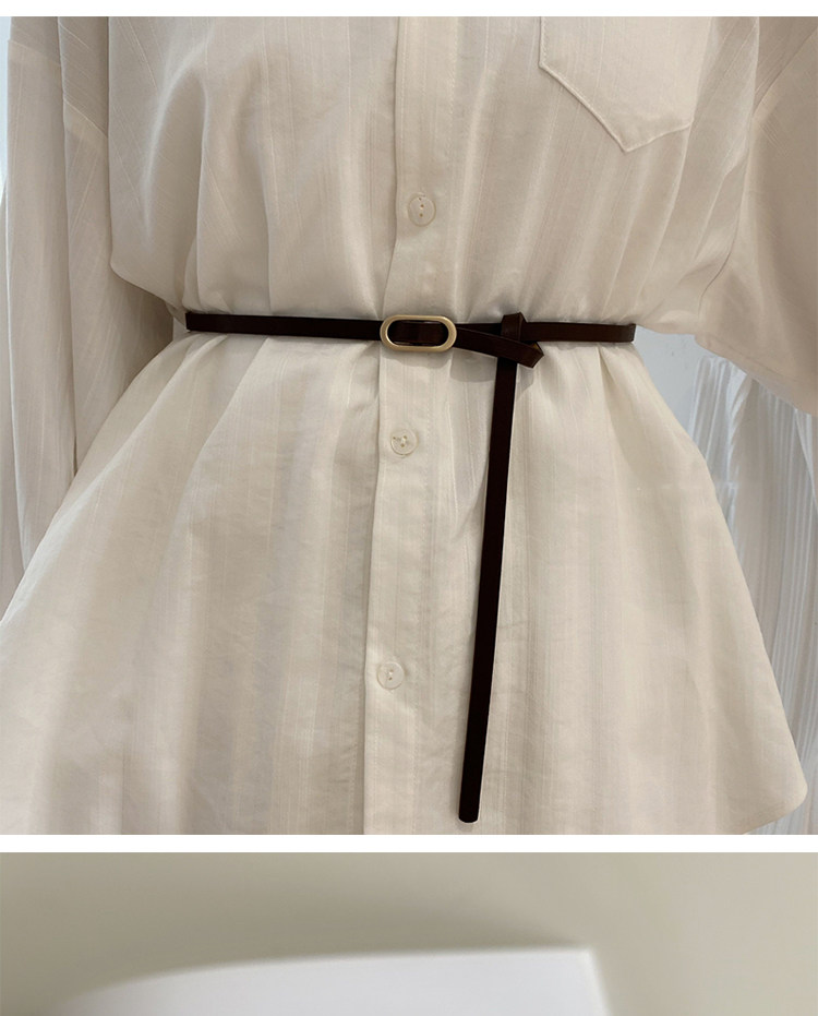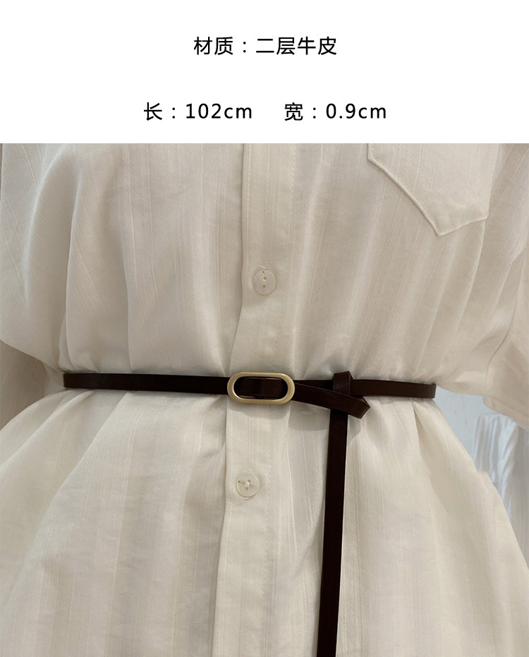 Black High-End Women's Thin Belt, Women's Decorative Accessory for Dresses, Genuine Leather Autumn and Winter Style, Small Leather Belt with Knot, Versatile