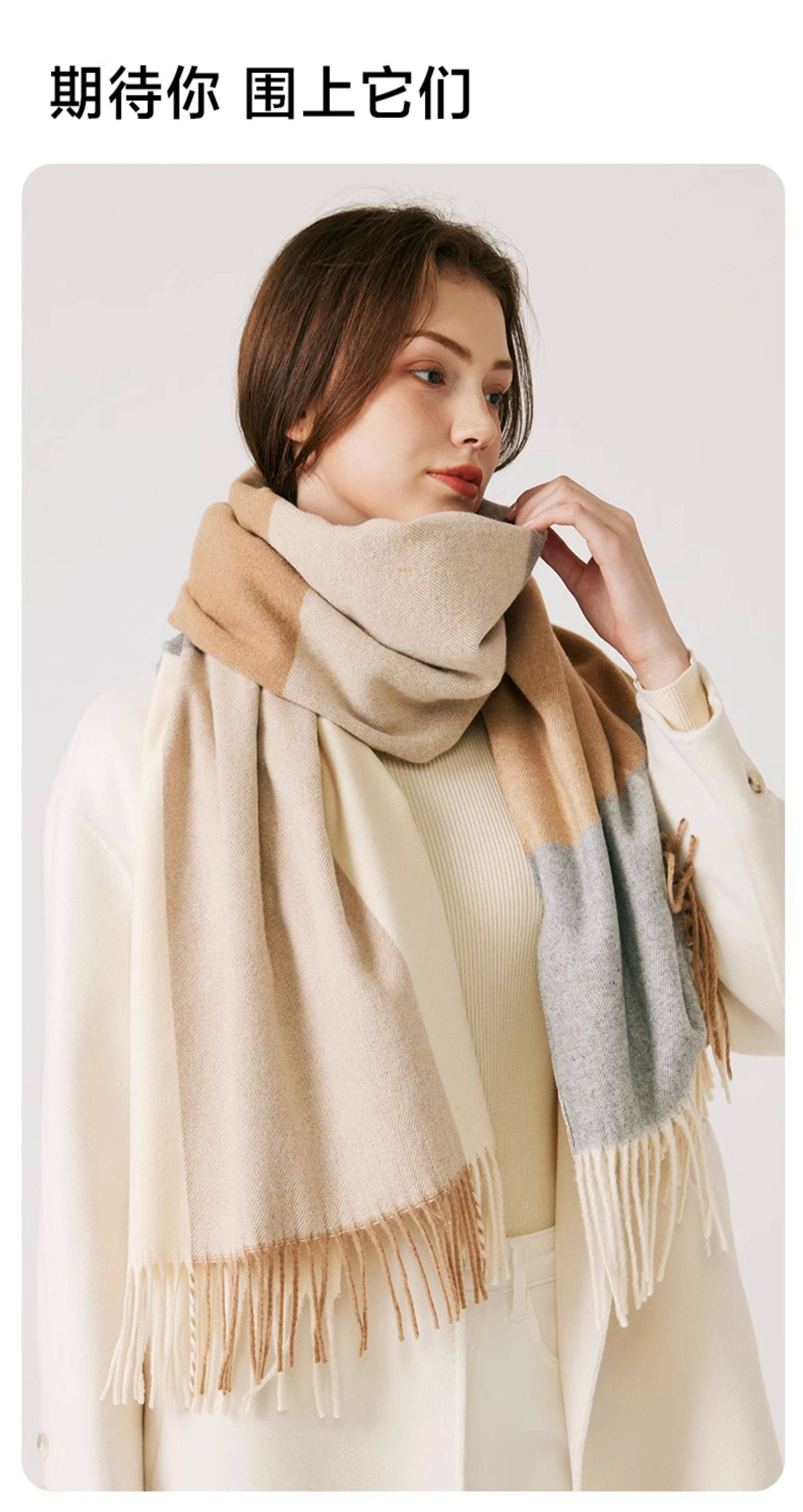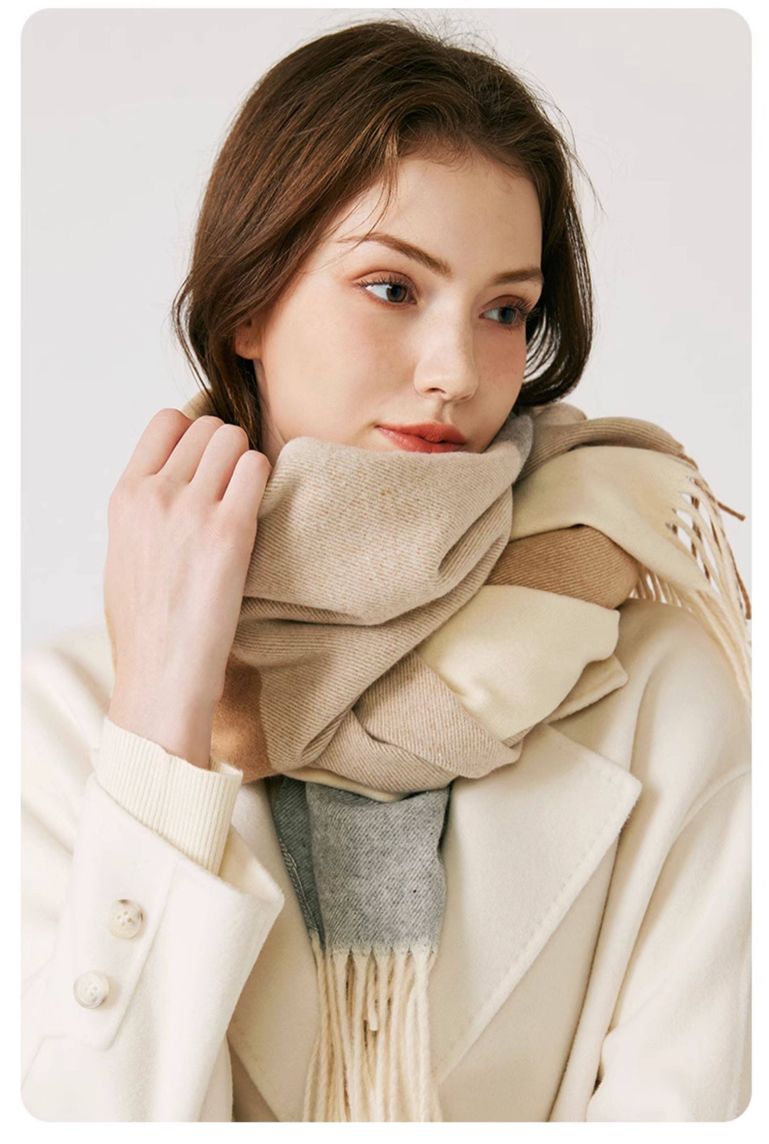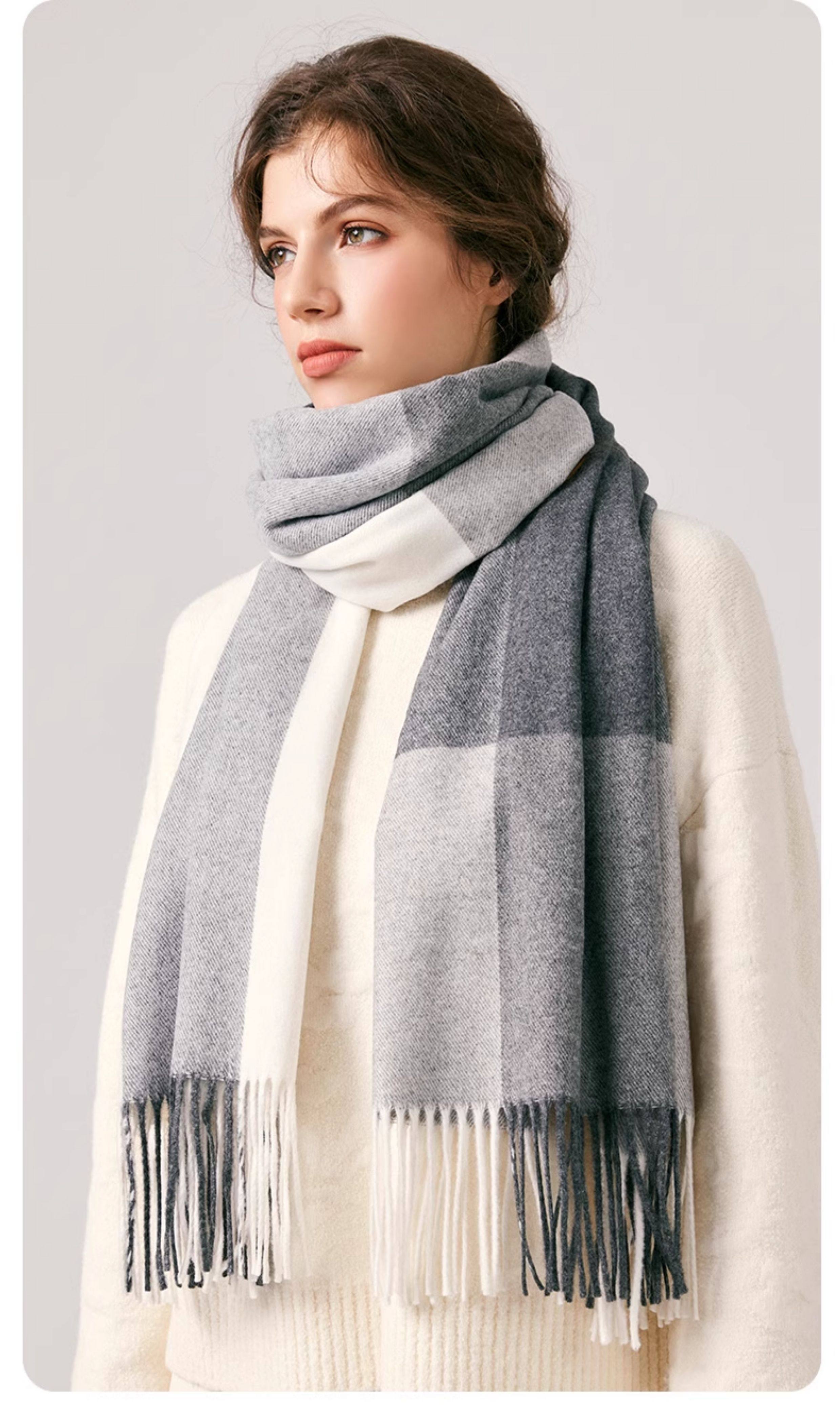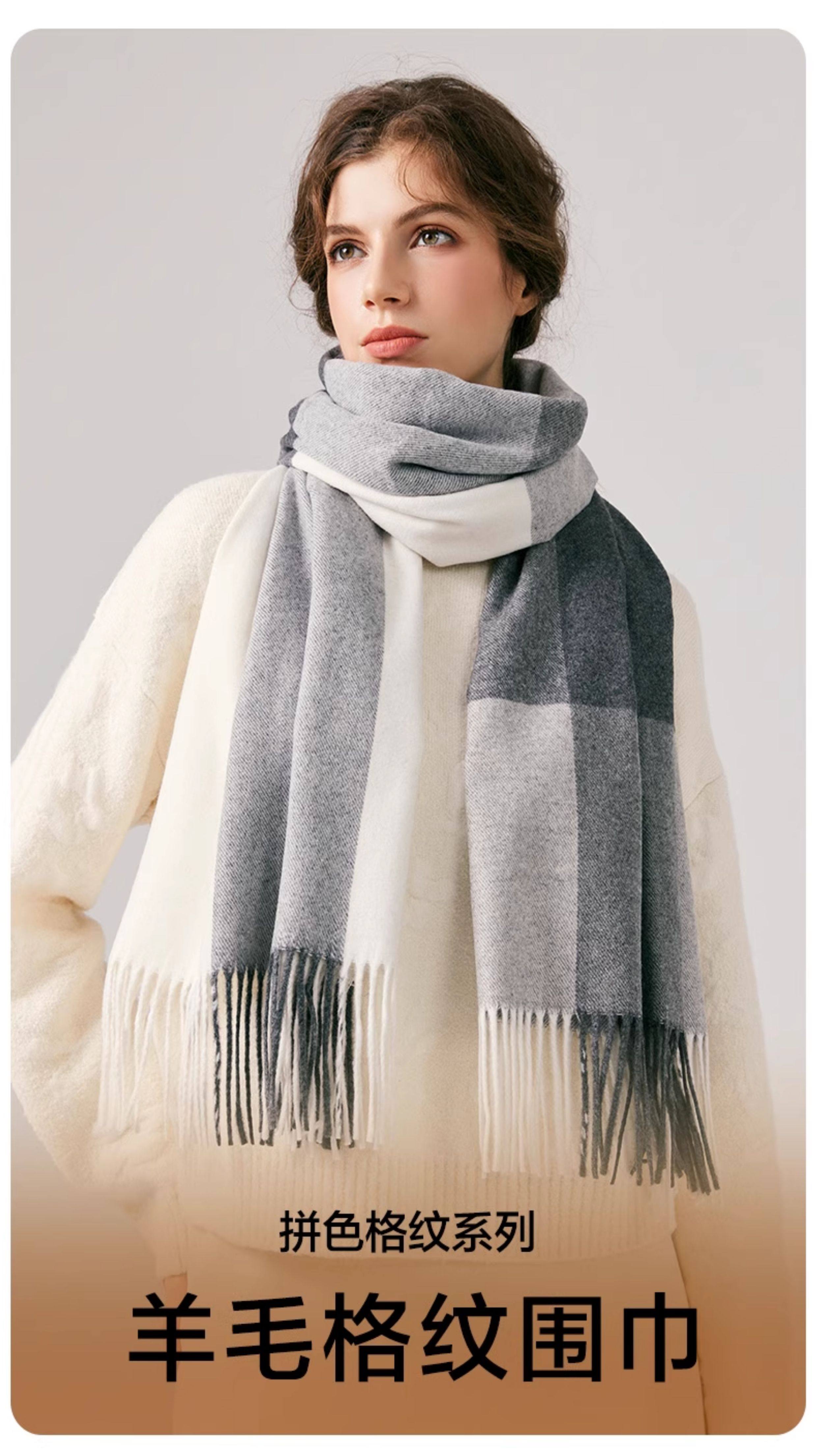 Gray Wool Scarf for Women, Winter 2025 New Style, British Style Plaid, High-End Feel, Birthday Gift for Men, Dual-Use Shawl