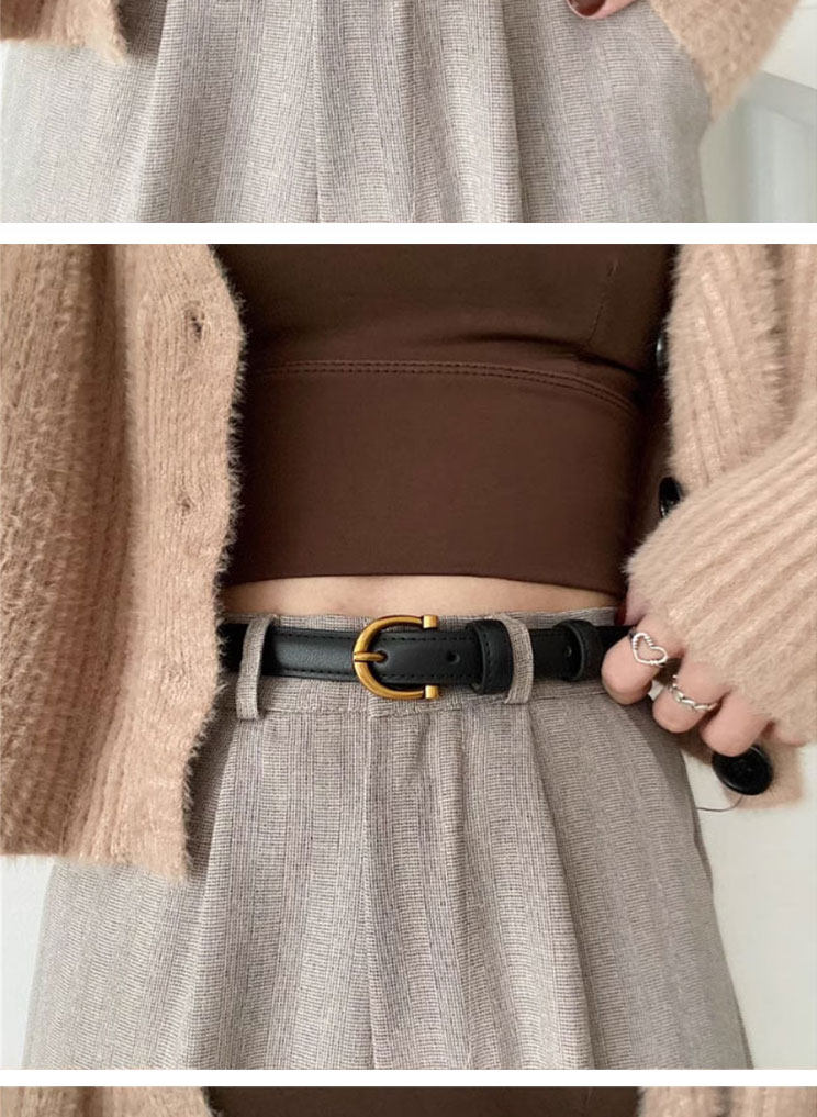 Classic Horseshoe Buckle Black Women's Belt, 2025 New Fashion High-End Belt for Women, Suitable for Jeans