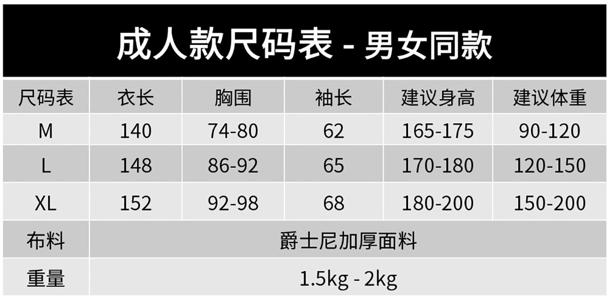 China (cm) 165 / 88-90 170 / 96-98 175 / 108-110 180 / 118-122 185 / 126-130