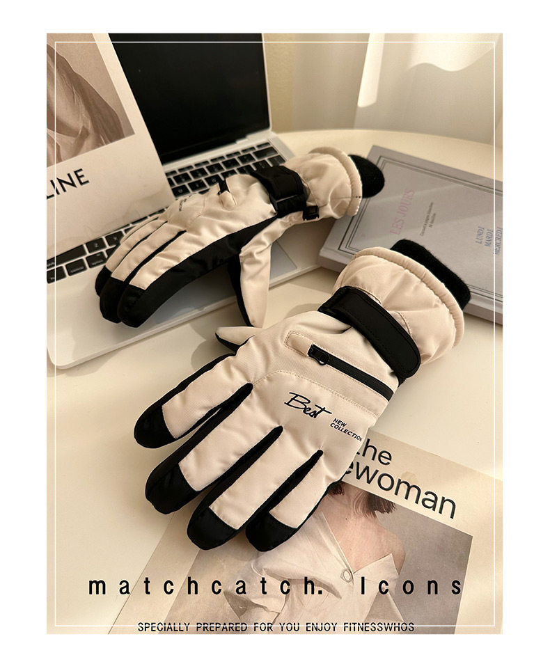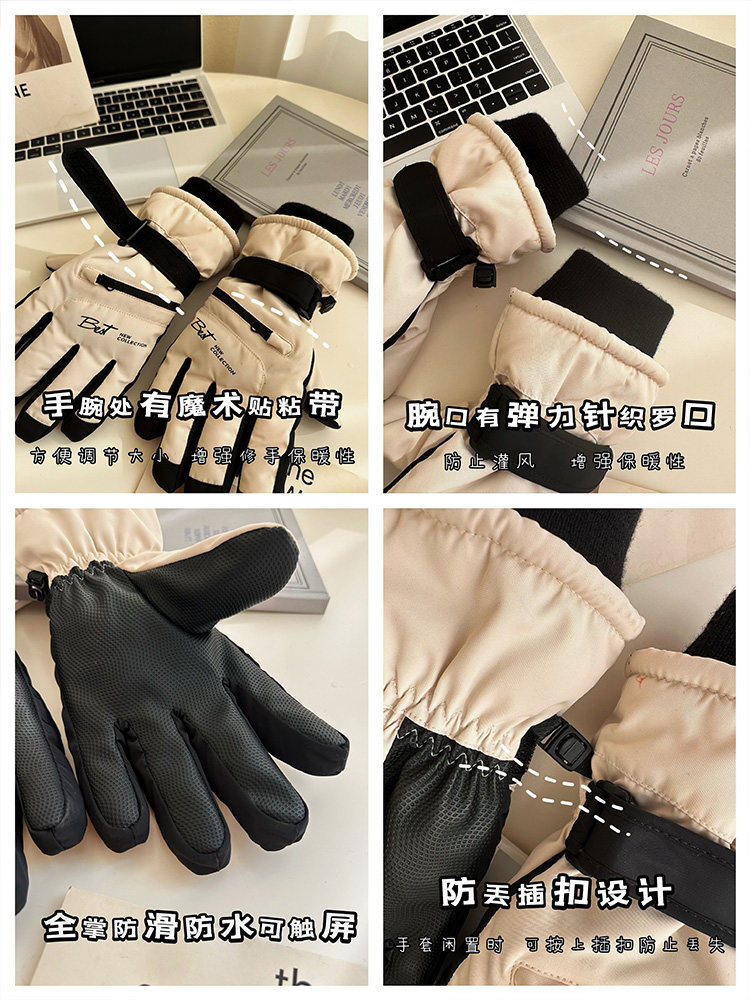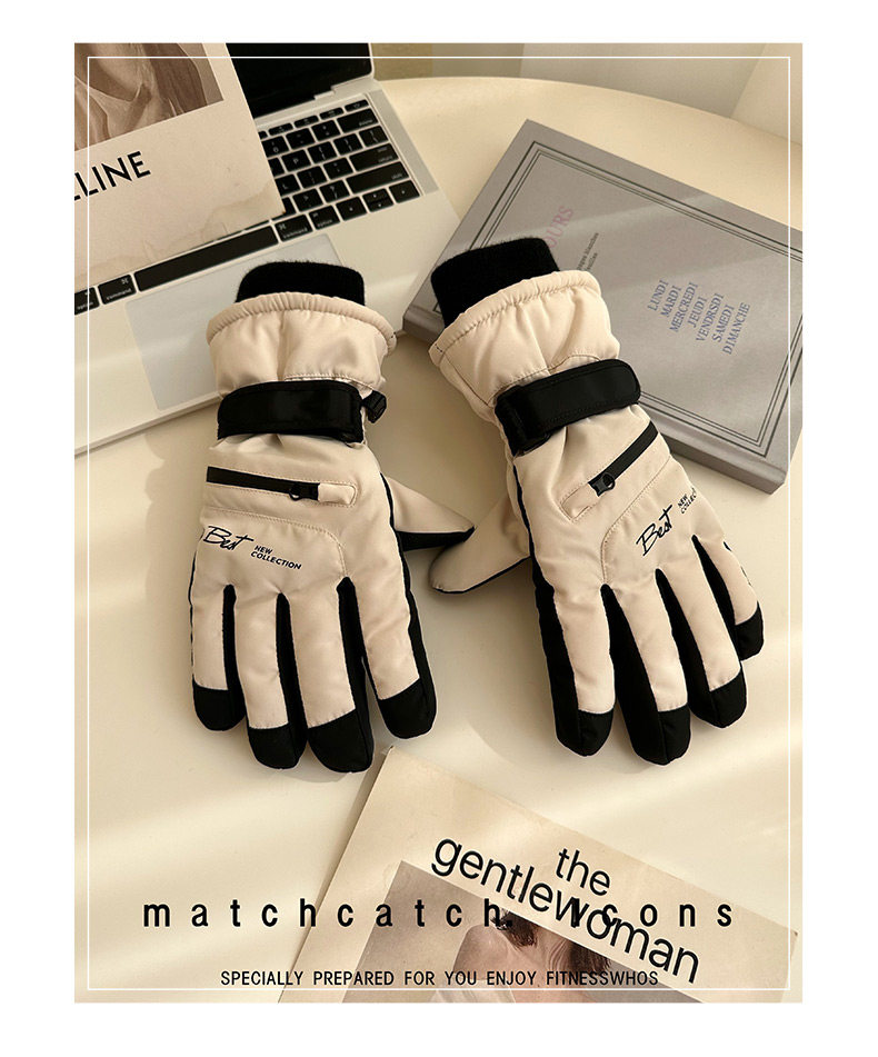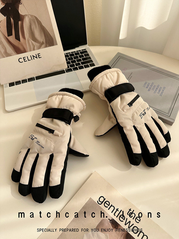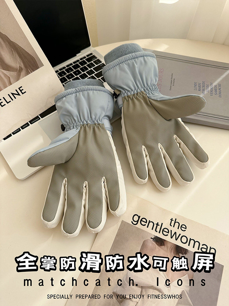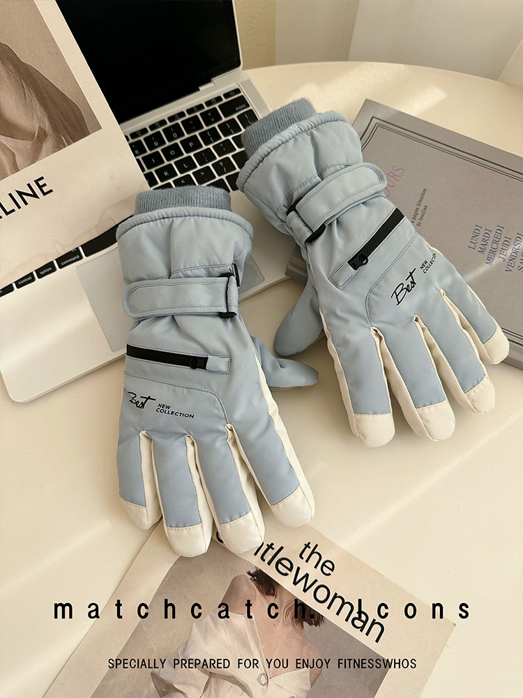 Ski Gloves for Women, Winter Outdoor Snow Play, Cold-Proof, Warm, Fleece-Lined, Thickened, Windproof, for Riding Electric Bikes, Men's Motorcycle Gloves, Touchscreen-Compatible