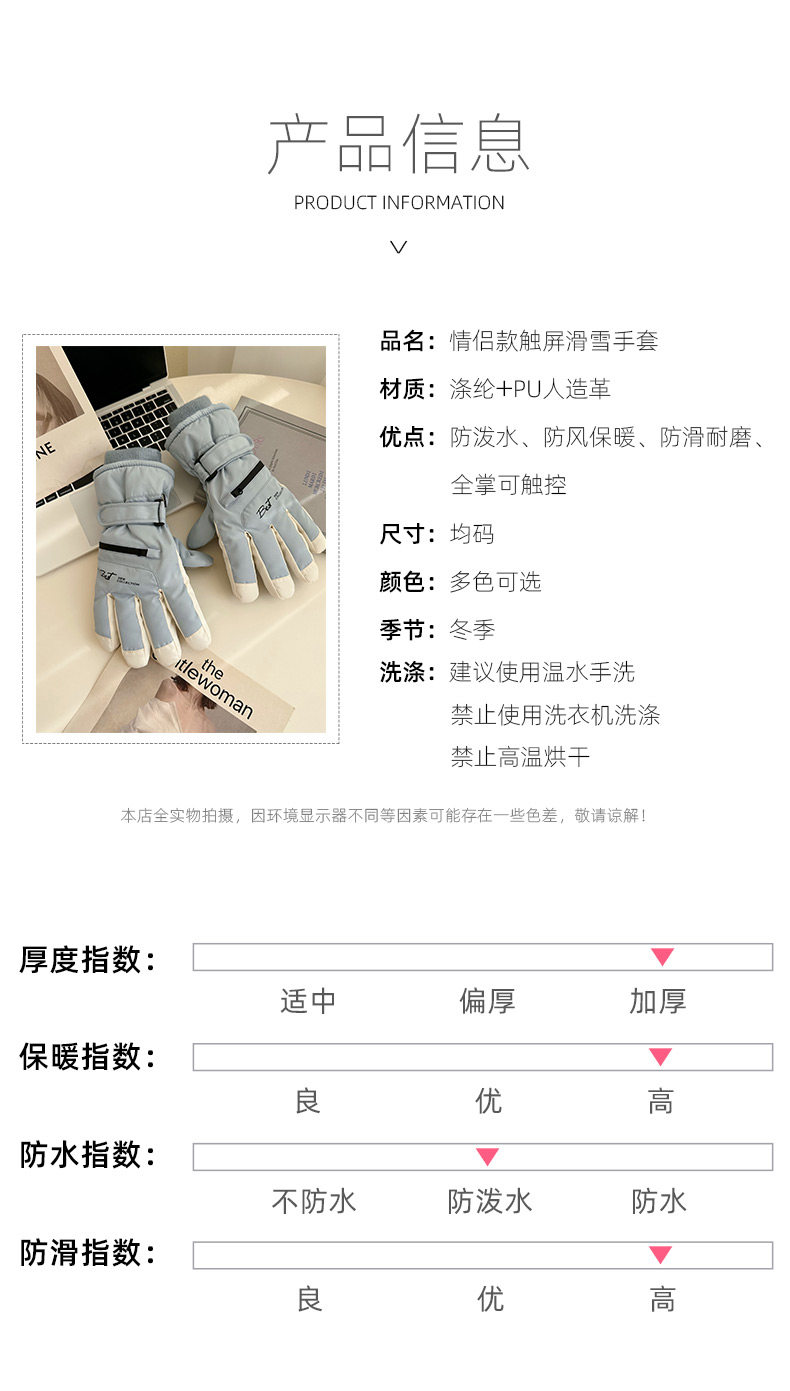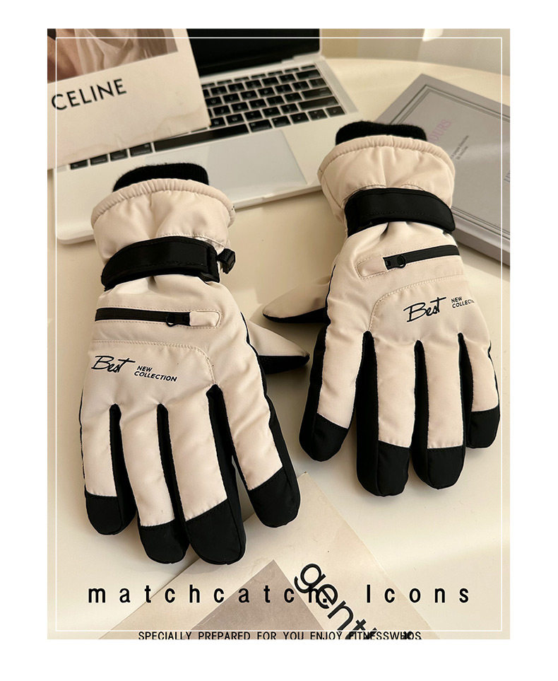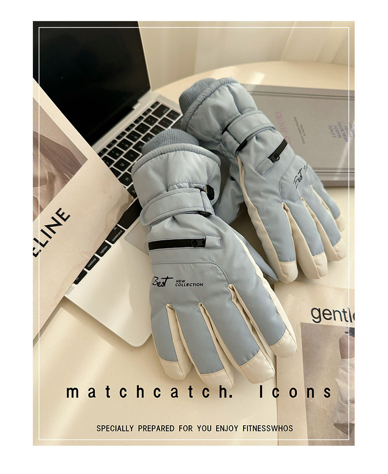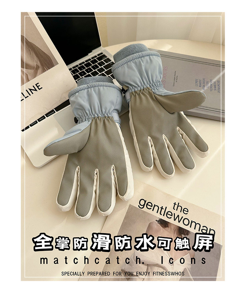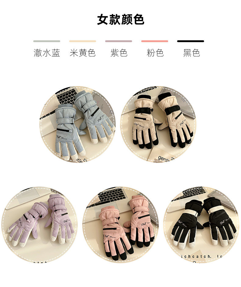Ski Gloves for Women, Winter Outdoor Snow Play, Cold-Proof, Warm, Fleece-Lined, Thickened, Windproof, for Riding Electric Bikes, Men's Motorcycle Gloves, Touchscreen-Compatible