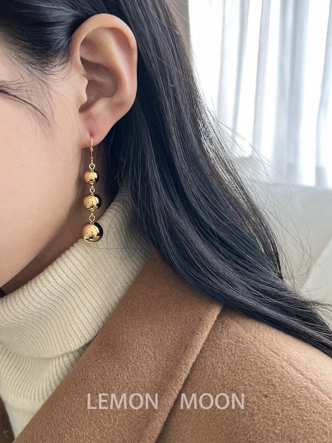 Exquisite and Fashionable! Autumn and Winter Three-Ball Metal Pendant Earrings for Women, Niche High-End Vintage Style, Non-Pierced Ear Clips
