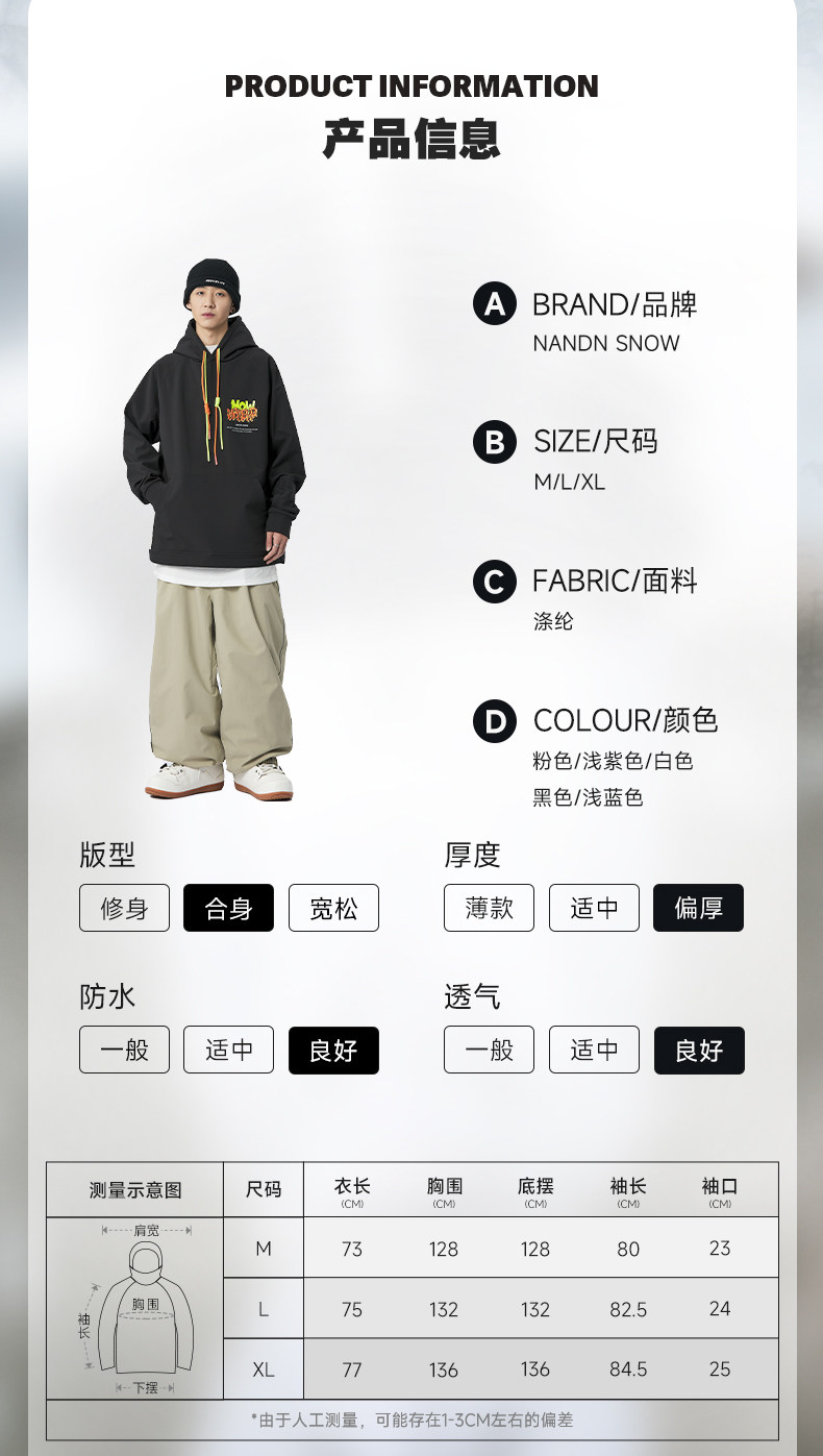 Nanen Ski Sweatshirt Is Waterproof and Unisex, Suitable for Snowboarding, Professional American-Style Solid Color Outdoor Sports Inner Layer Top