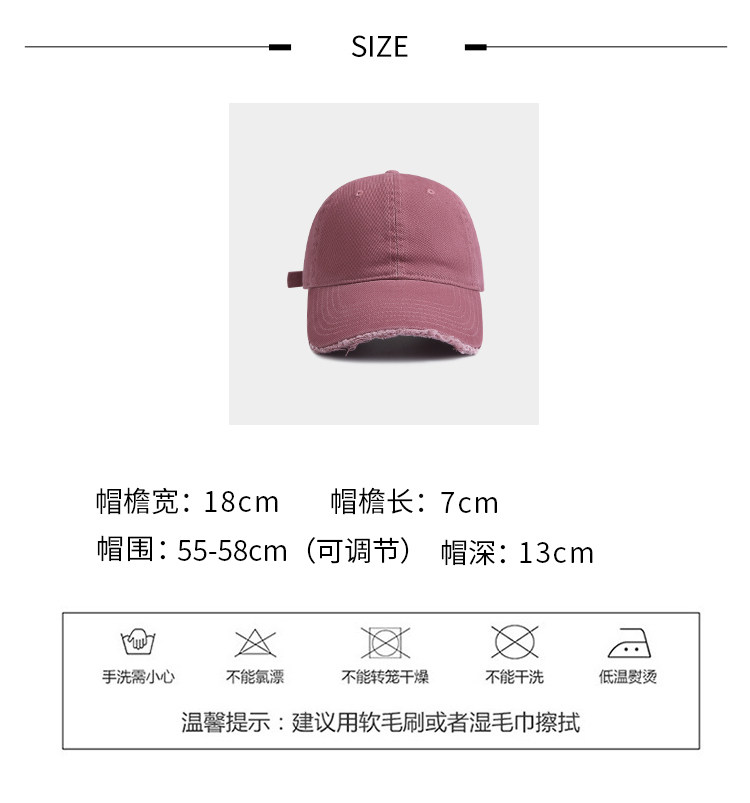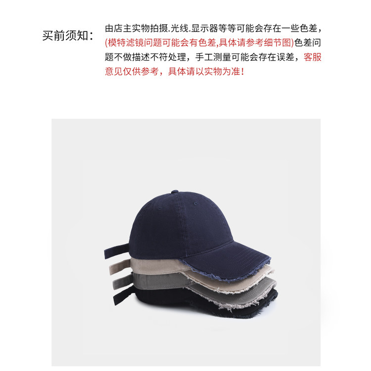 American Retro Distressed Soft-Brim Baseball Cap for Women, Simple and Versatile Korean Style Solid Color Duckbill Cap That Makes the Face Look Smaller, Trendy for Men