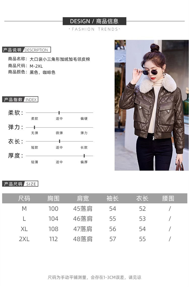 Sort by color Brown fur collar plus velvet leather coat,Black fur collar plus fleece cotton coat,Brown furless collar plush leather cotton coat,Black furless collar plush leather cotton coat