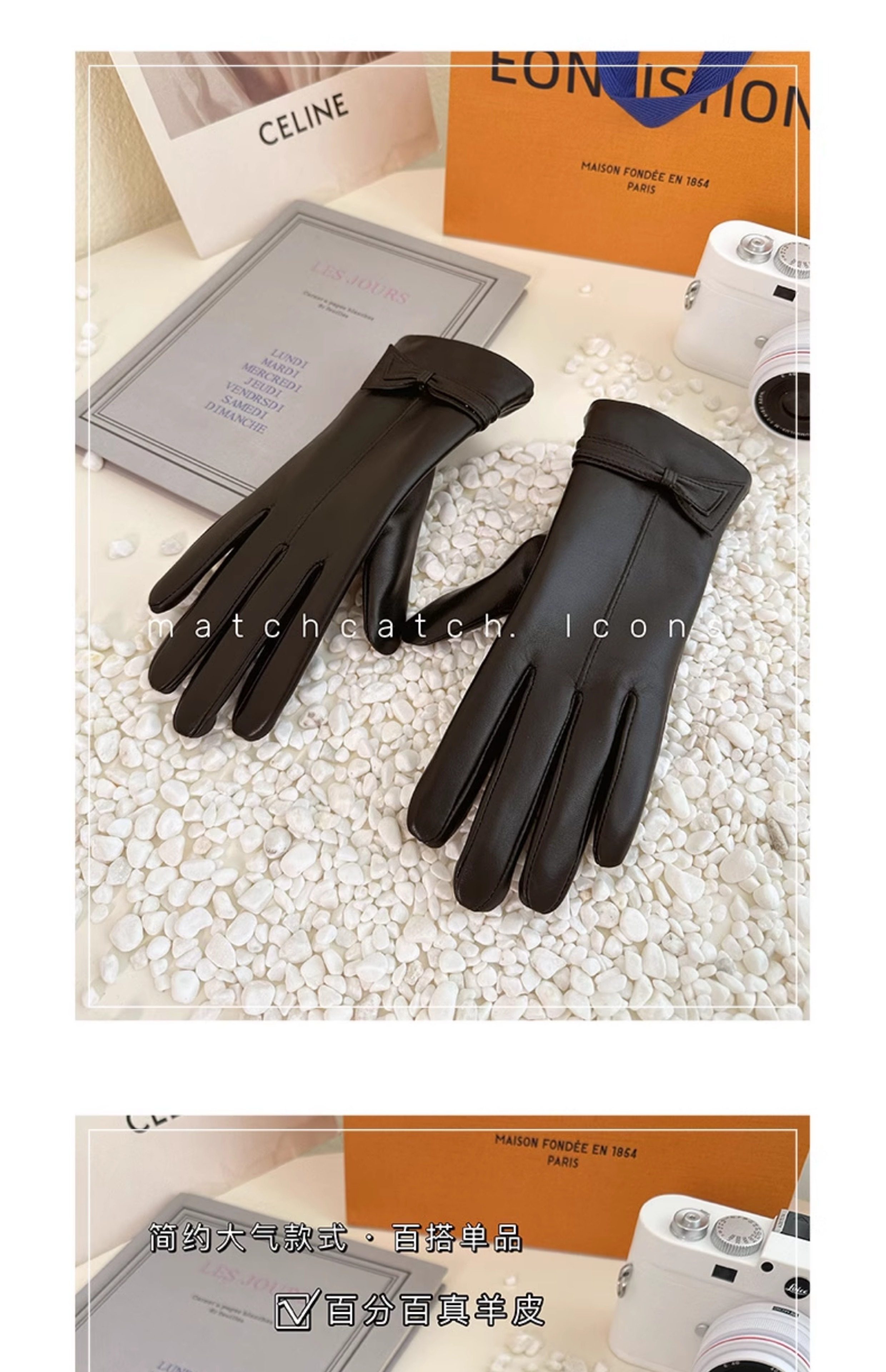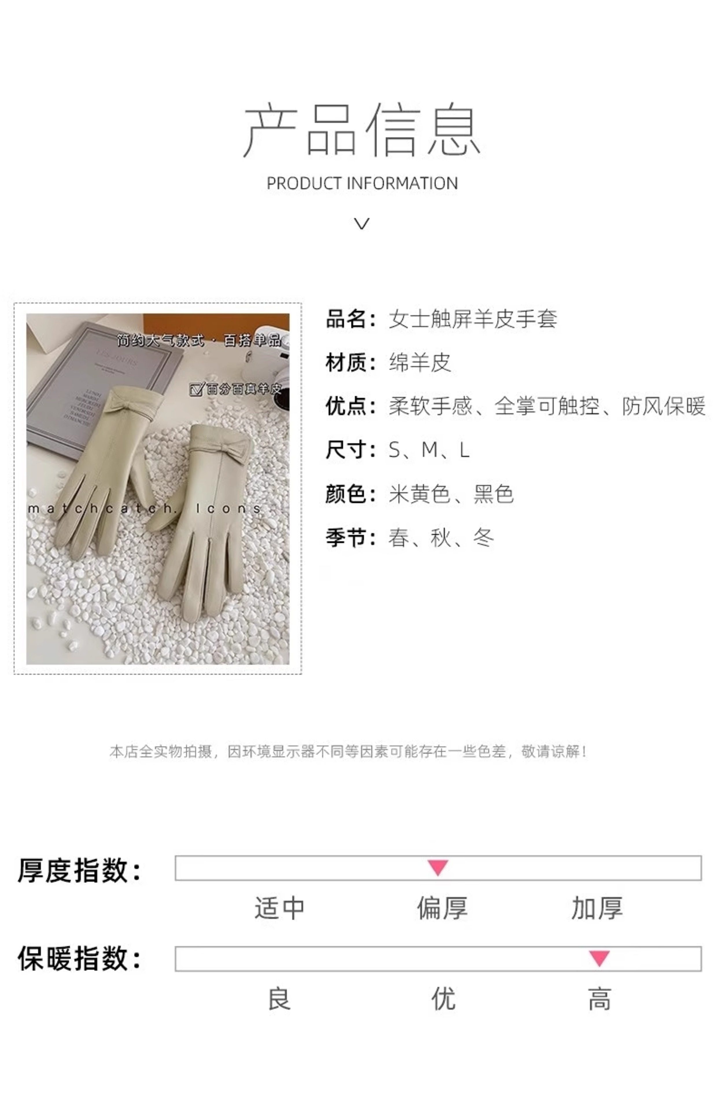 Sheepskin Gloves for Women, Winter Driving, Fleece-Lined, Warm, Touchscreen-Compatible, Genuine Leather, Thin Style, Windproof, Spring and Autumn, Outdoor Motorcycle Use