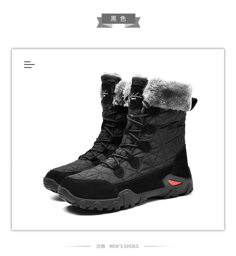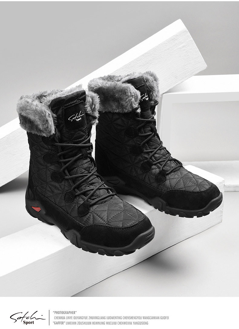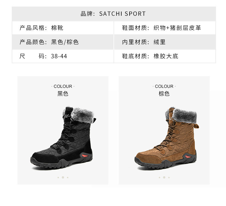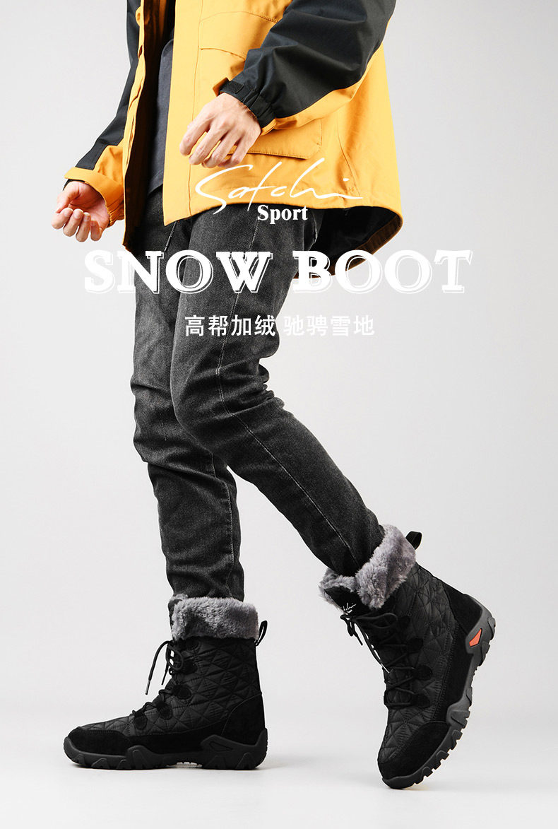 Satchi Men's Shoes Autumn Warm Snow Boots with Fleece Lining and Thickened Insulation, Northeast Cotton Shoes, High-Top Warm Martin Boots