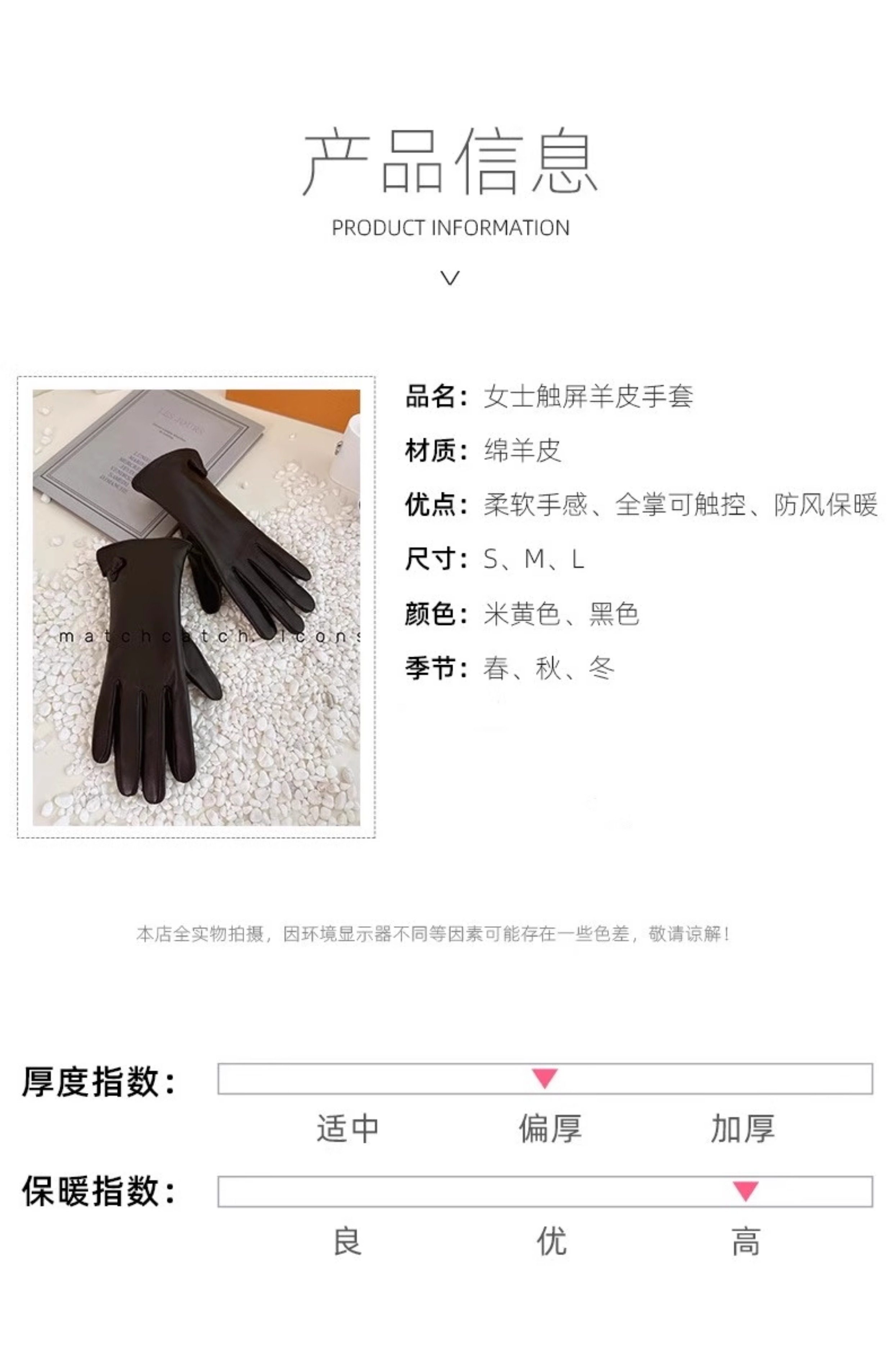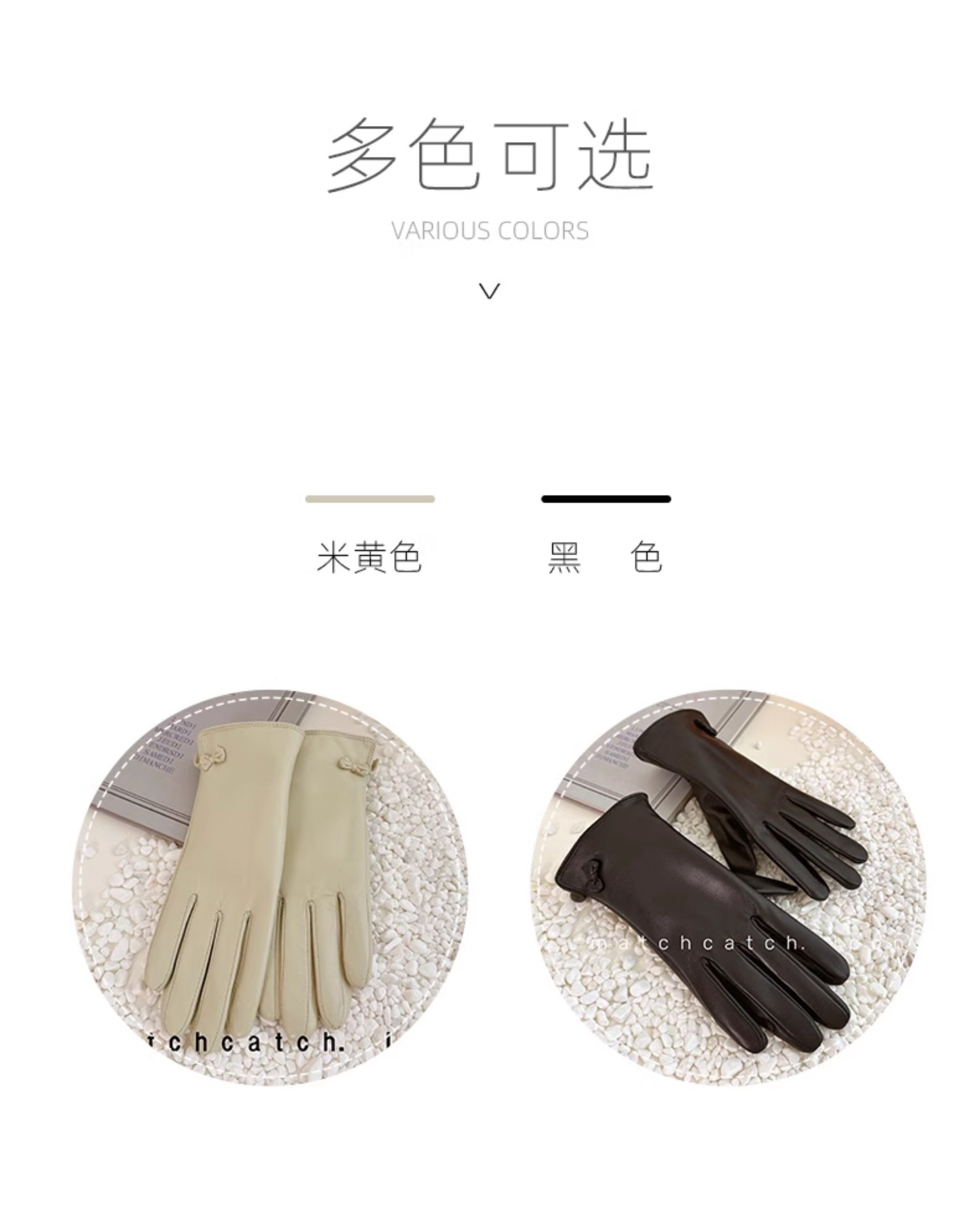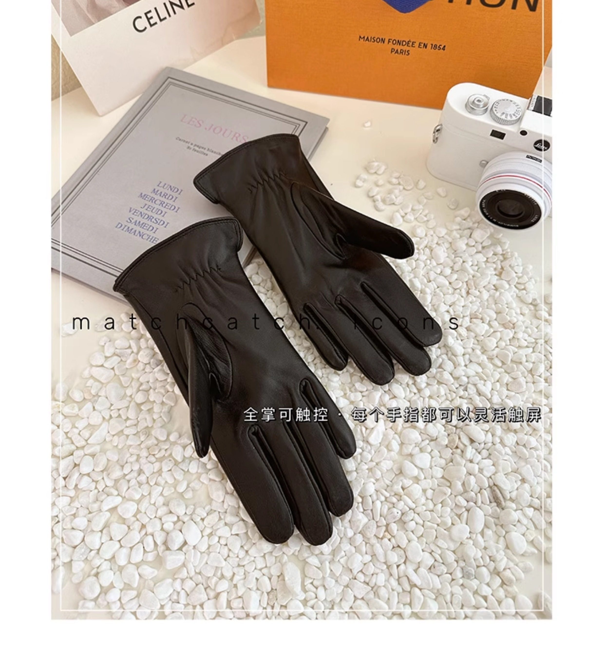 New Style Genuine Sheepskin Gloves for Women, Winter Fleece-Lined, Warm for Driving, Touchscreen-Compatible, Windproof, Suitable for Outdoor Motorcycle Riding in Spring and Autumn