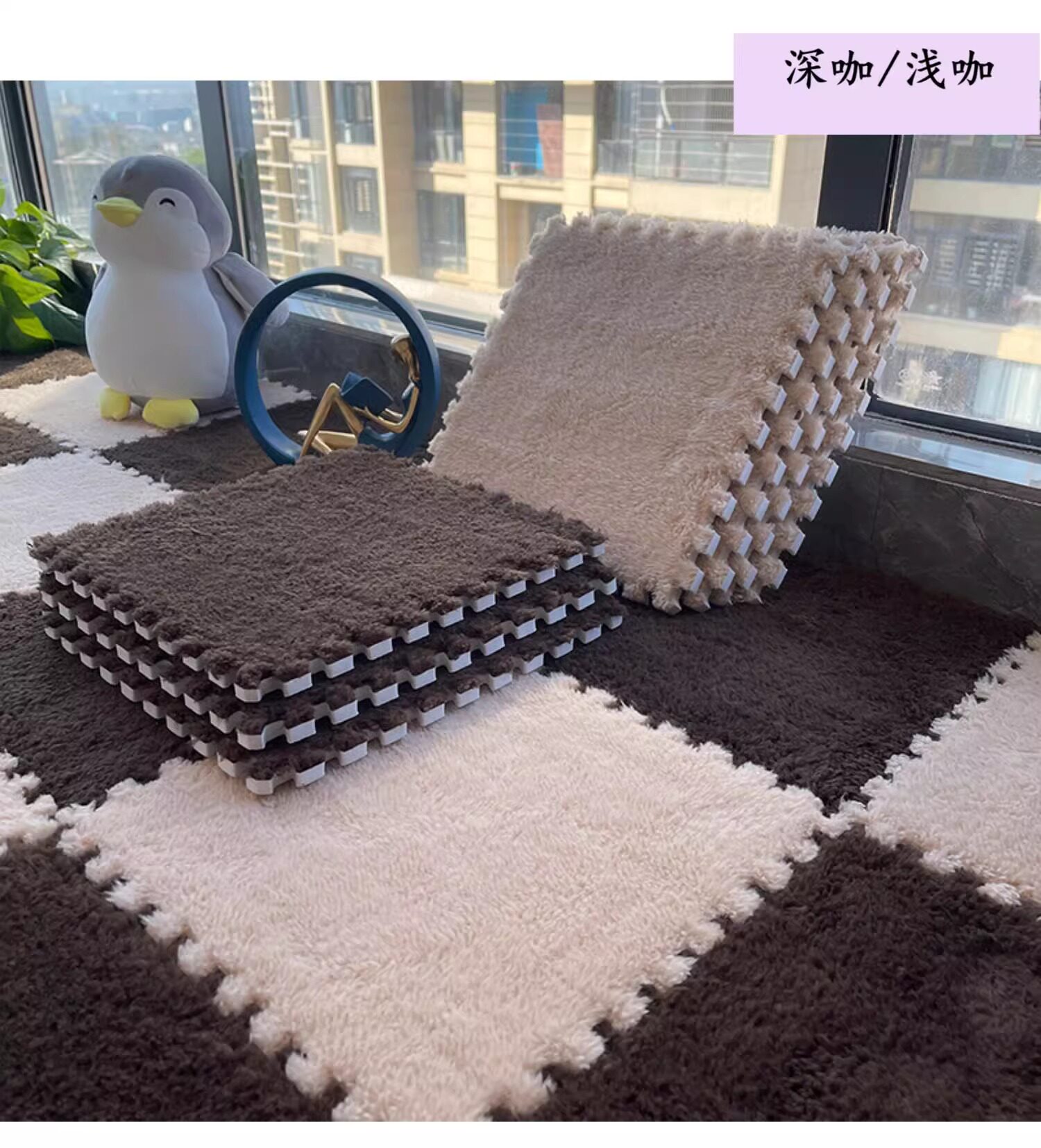 Square Interlocking Carpet for Bedroom Bedside, Living Room, Full Room Coverage, Children's Room, Eco-Friendly, Odorless Mat, Bay Window Mat