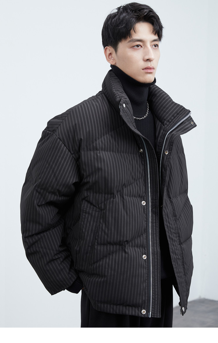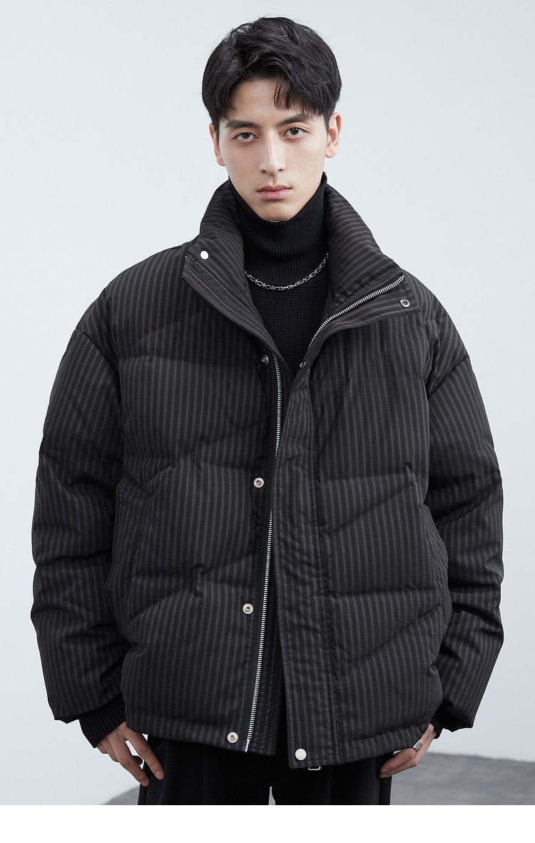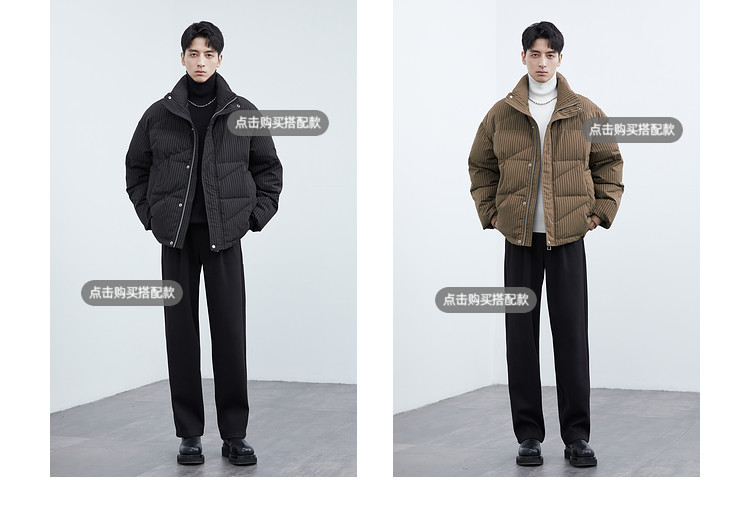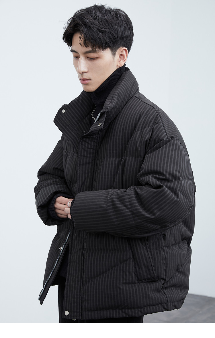 Men's stand-up collar down jacket winter new trendy casual loose high-end warm bread coat thickened jacket