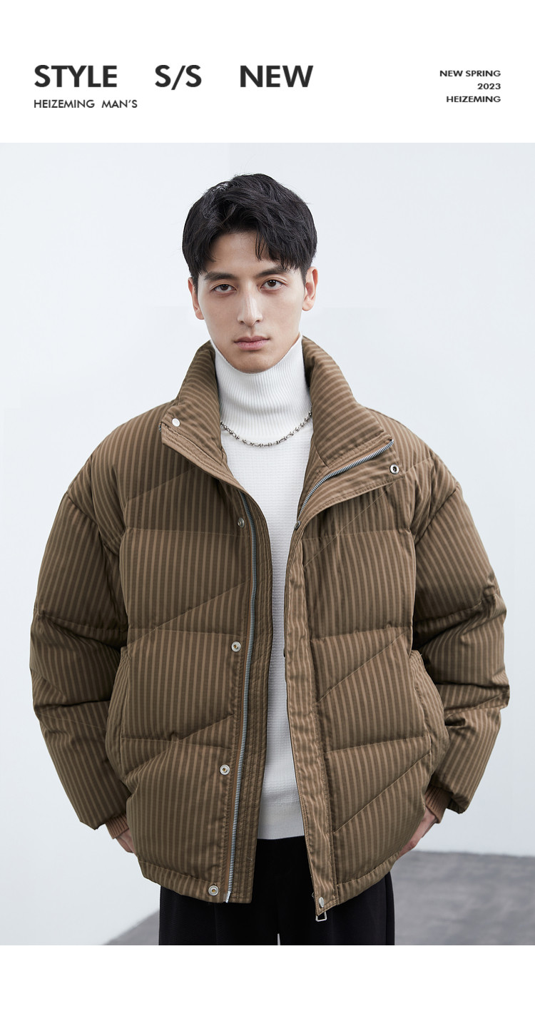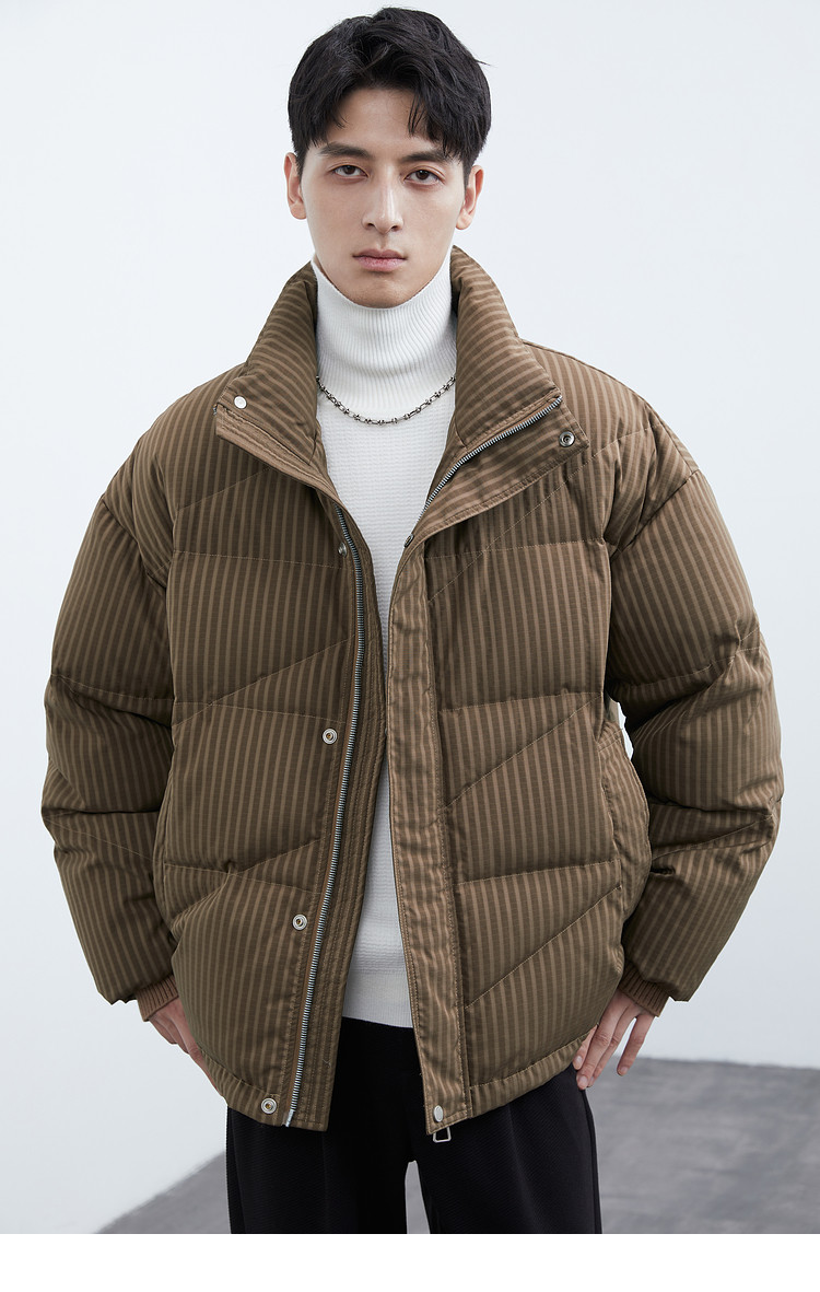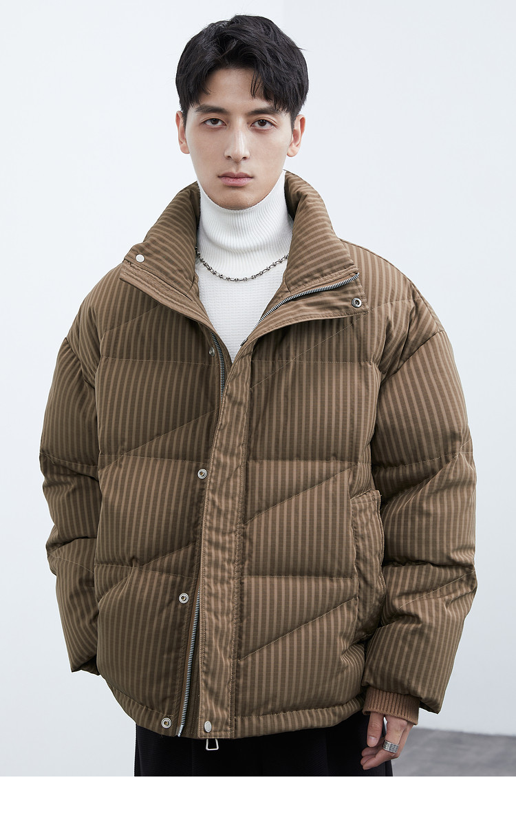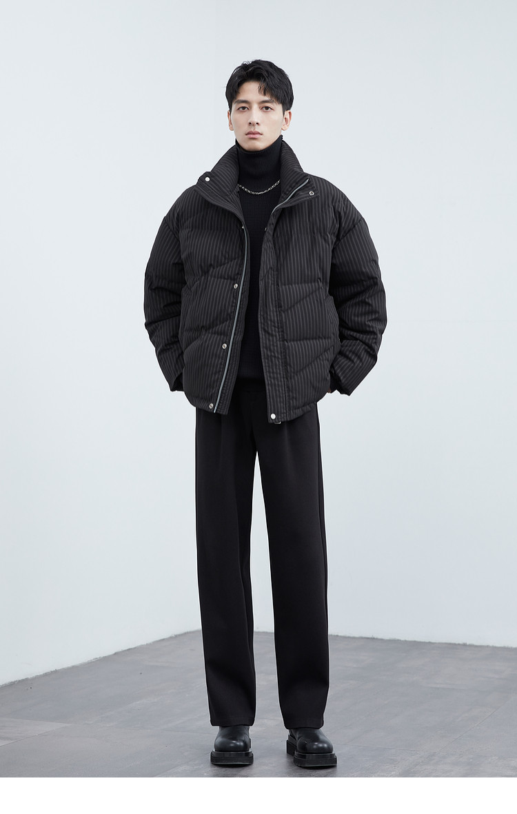 Men's stand-up collar down jacket winter new trendy casual loose high-end warm bread coat thickened jacket