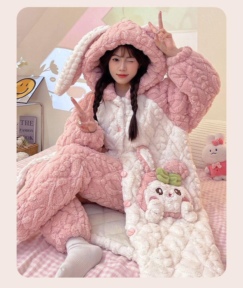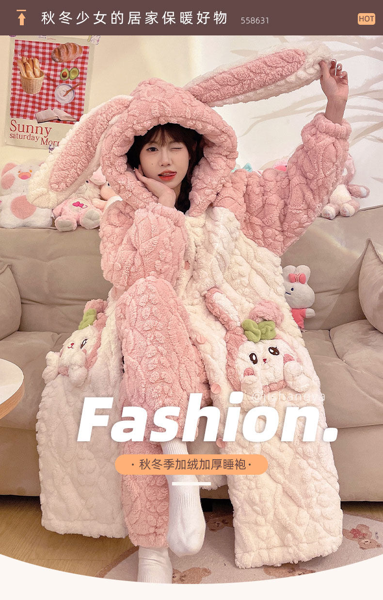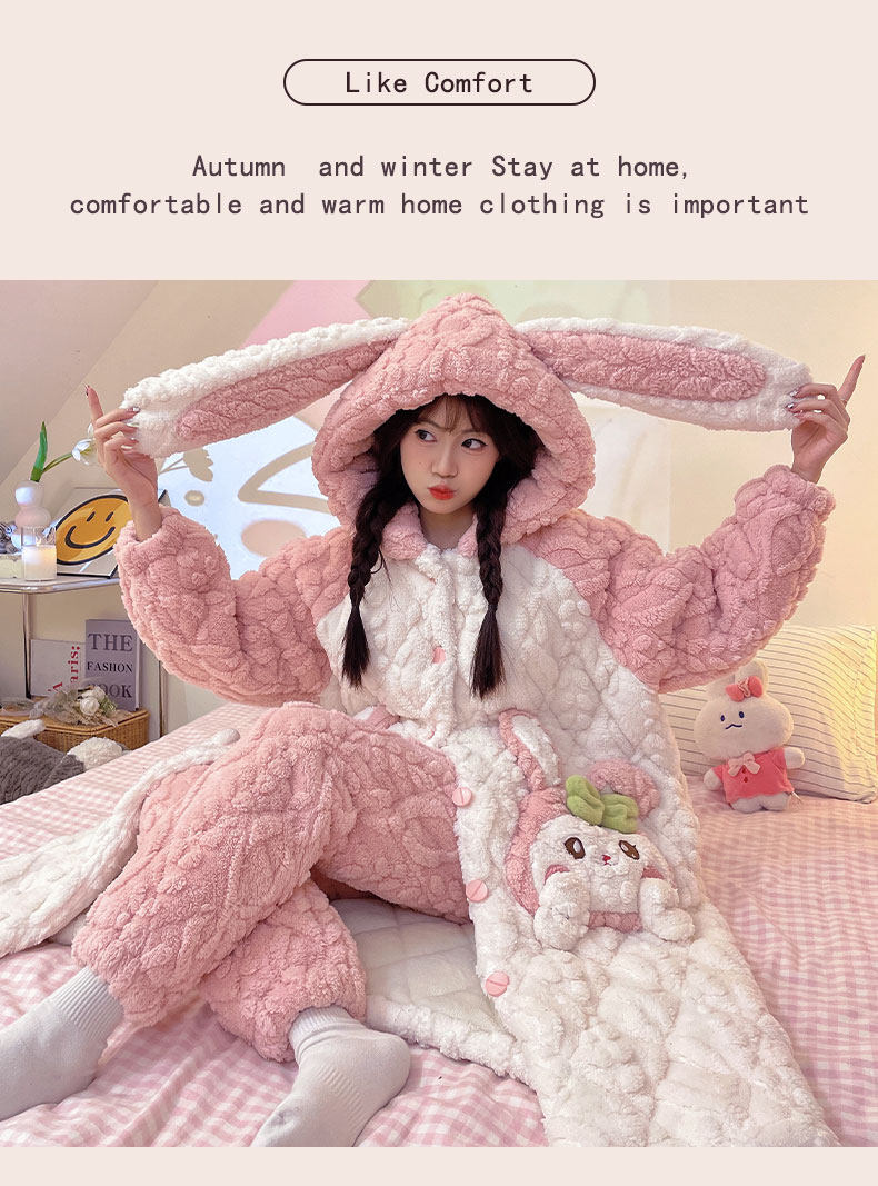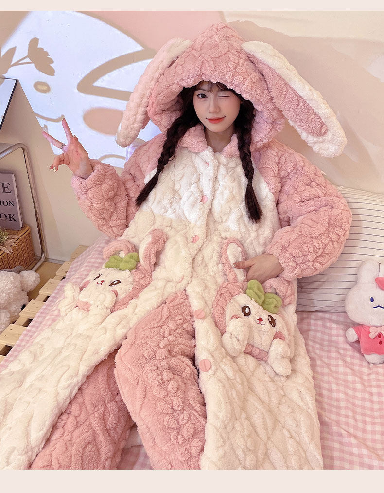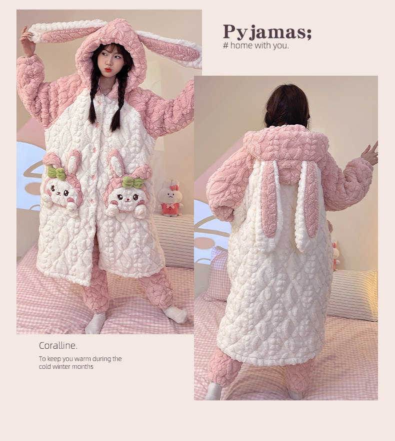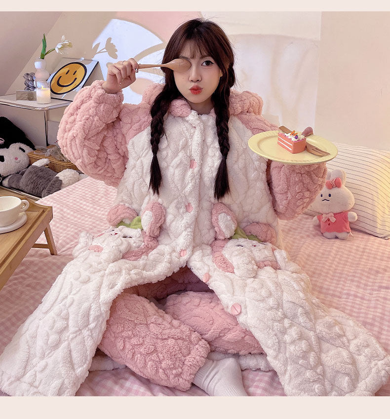 Autumn and Winter Coral Velvet Three-Layer Quilted Nightgown for Women, Fleece-Lined and Thickened, Winter Style Bathrobe, Pajamas, Flannel Home Wear