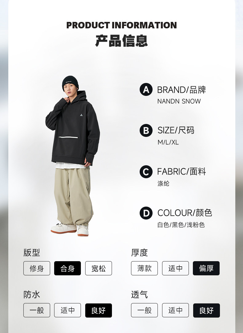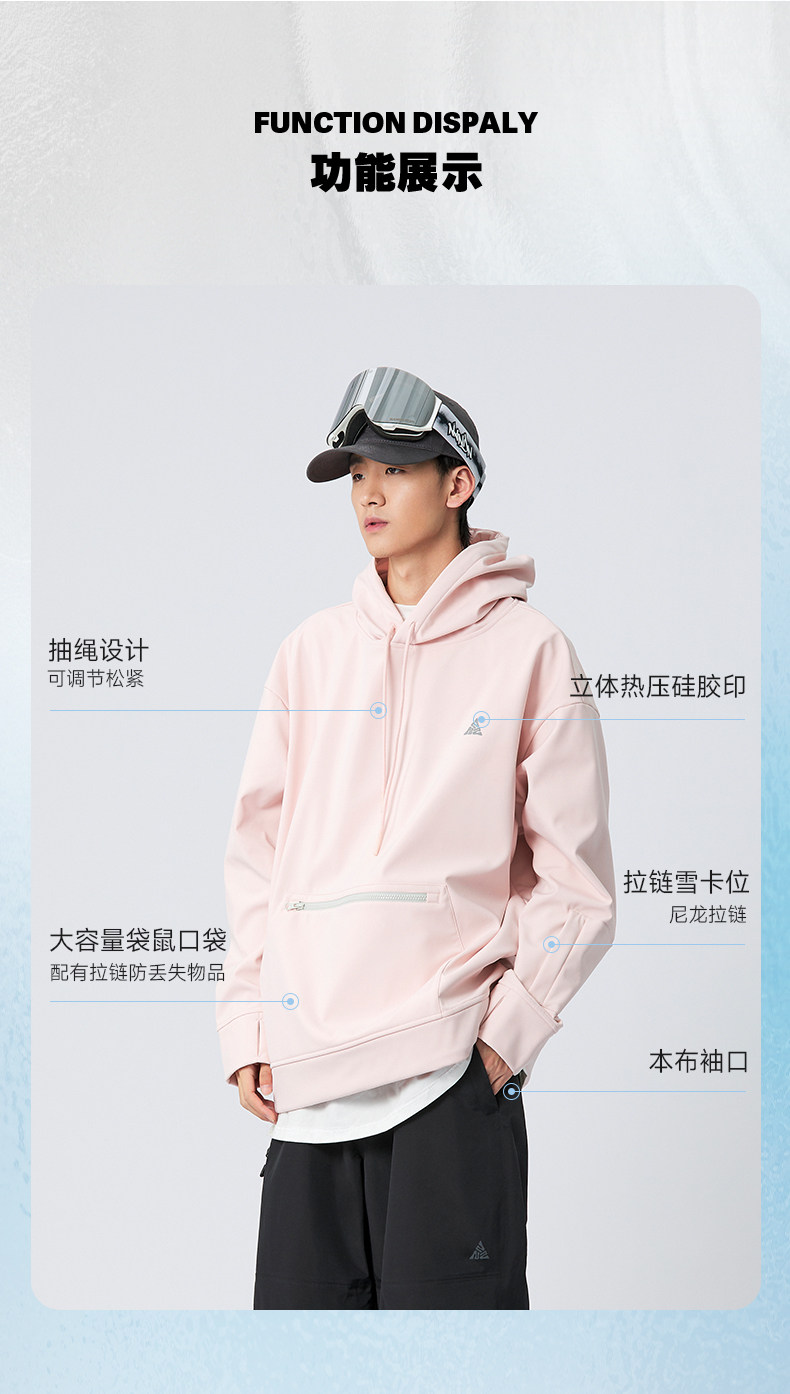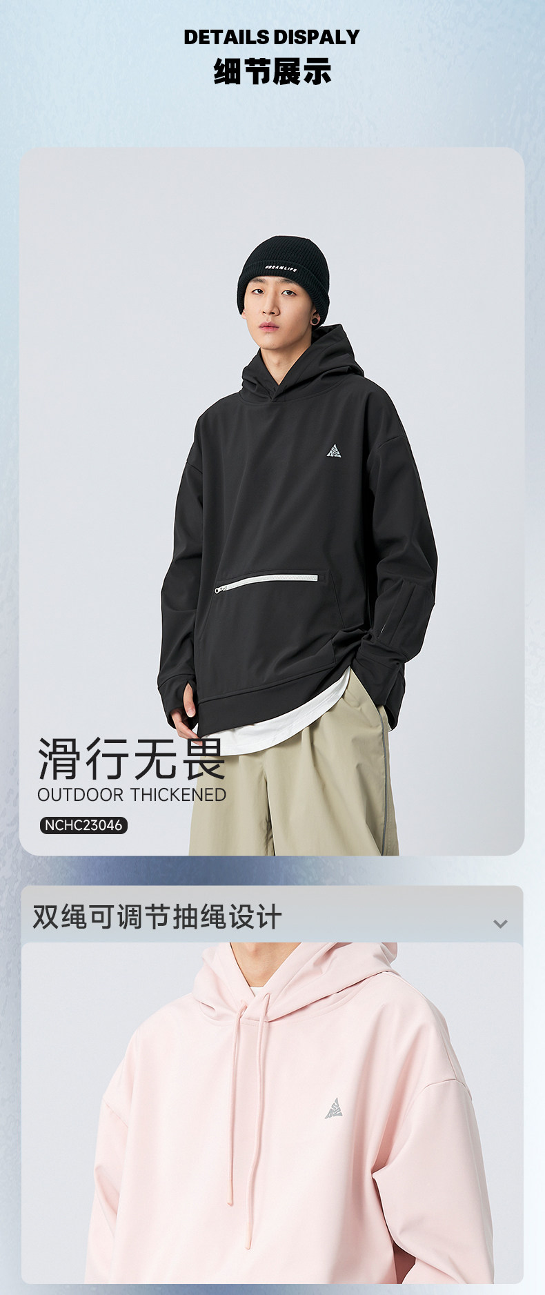 Nanen Thickened Ski Sweatshirt, Snowboard Thermal Base Layer, Winter Waterproof Outdoor Hoodie, Solid Color Inner Layer