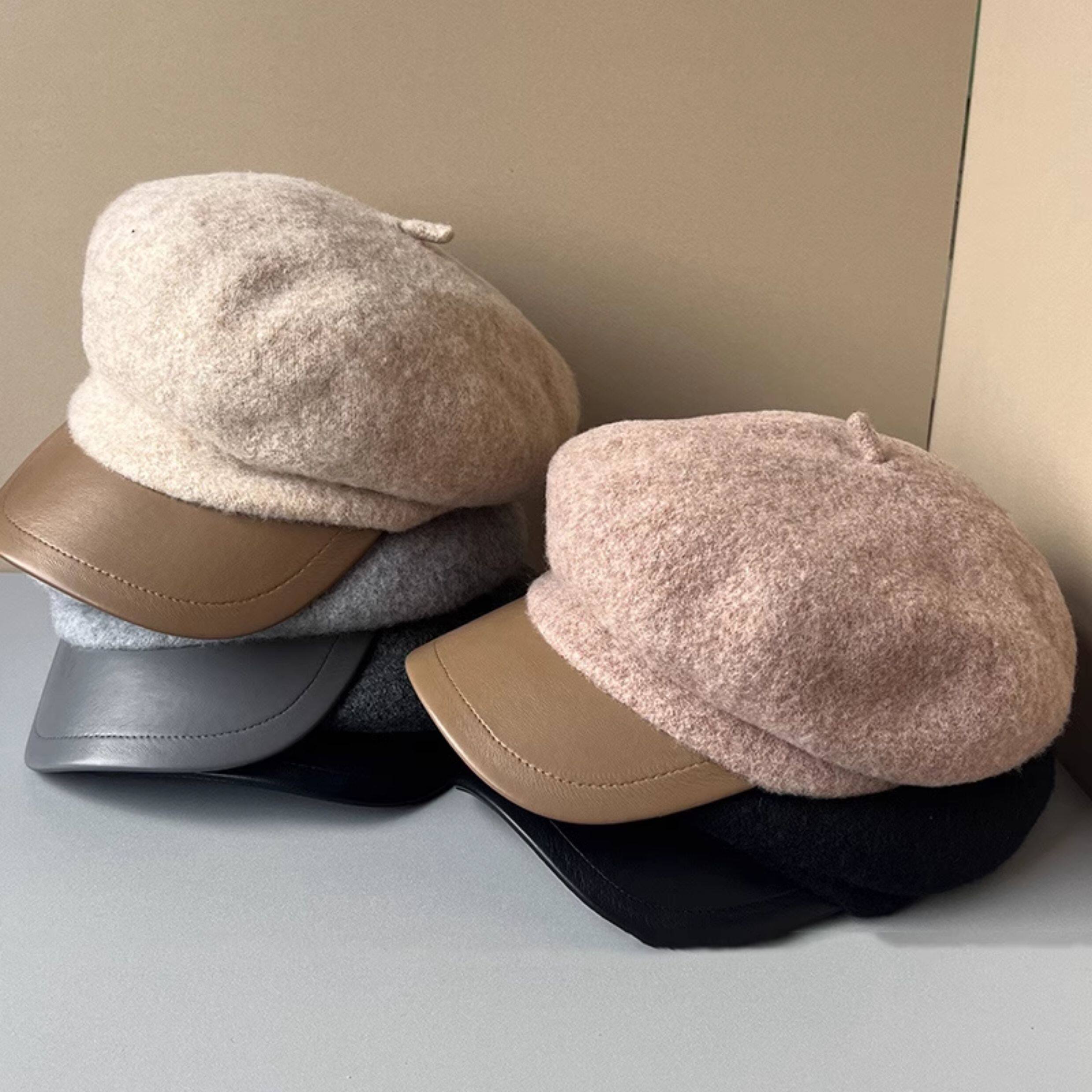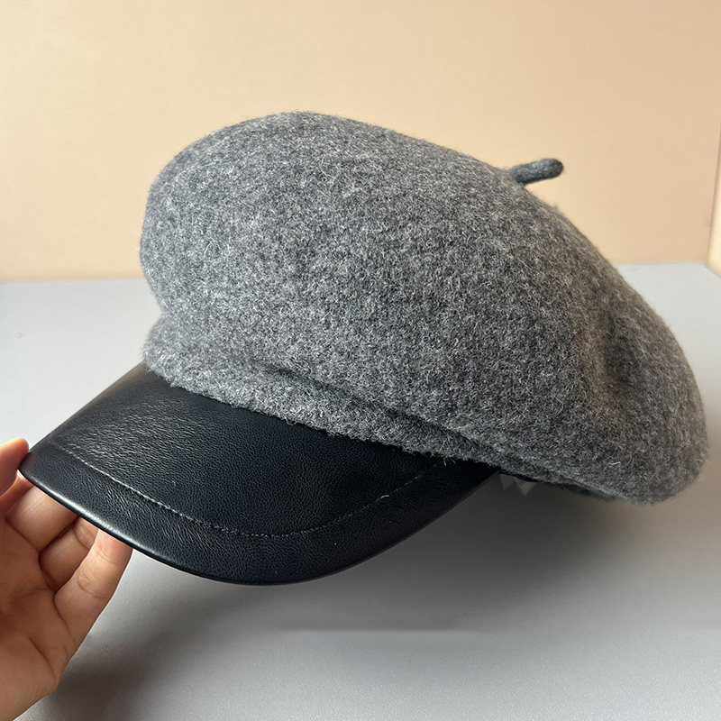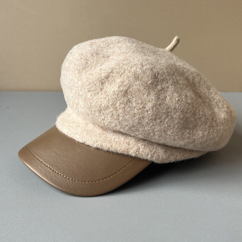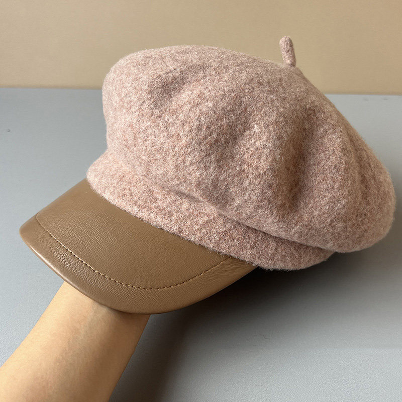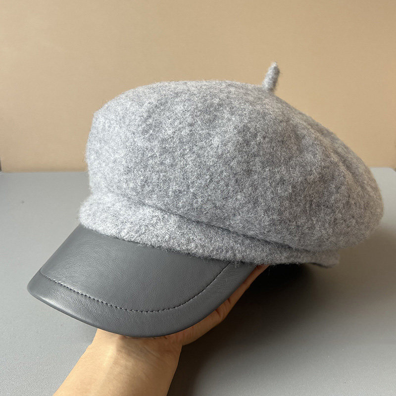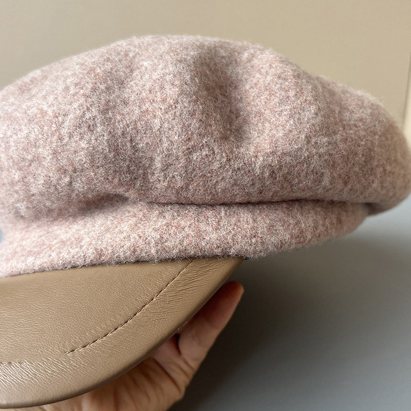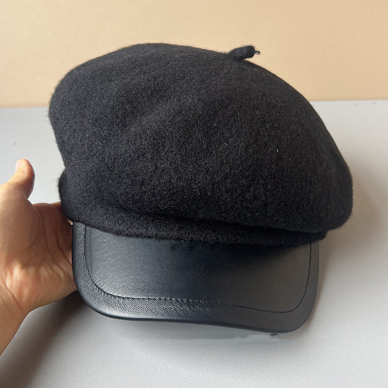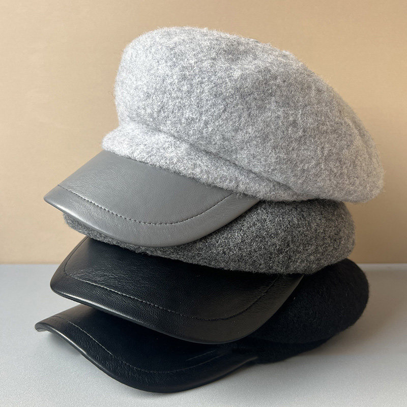 MIND BOY autumn and winter versatile wool octagonal hat for women 2025 new British retro leather brim peaked hat