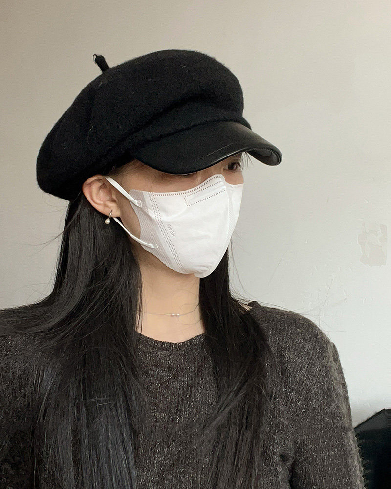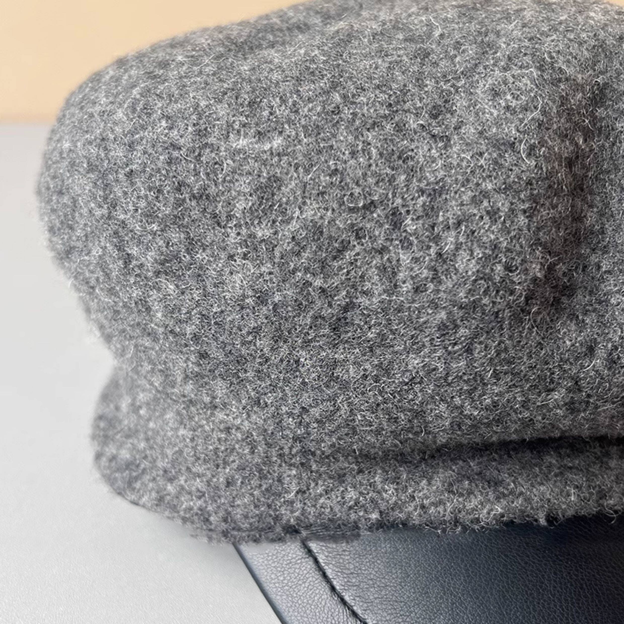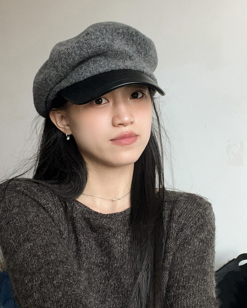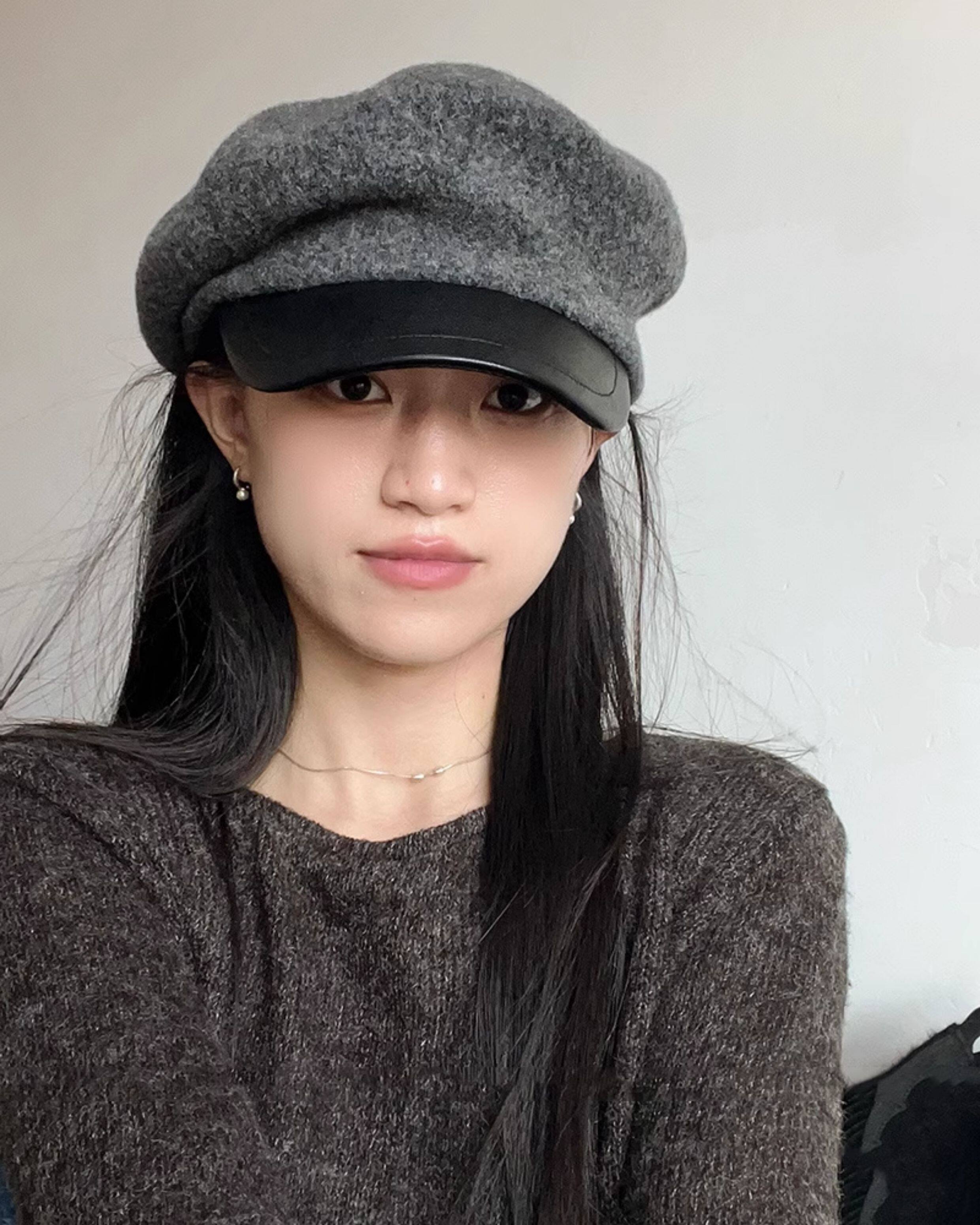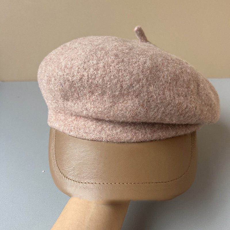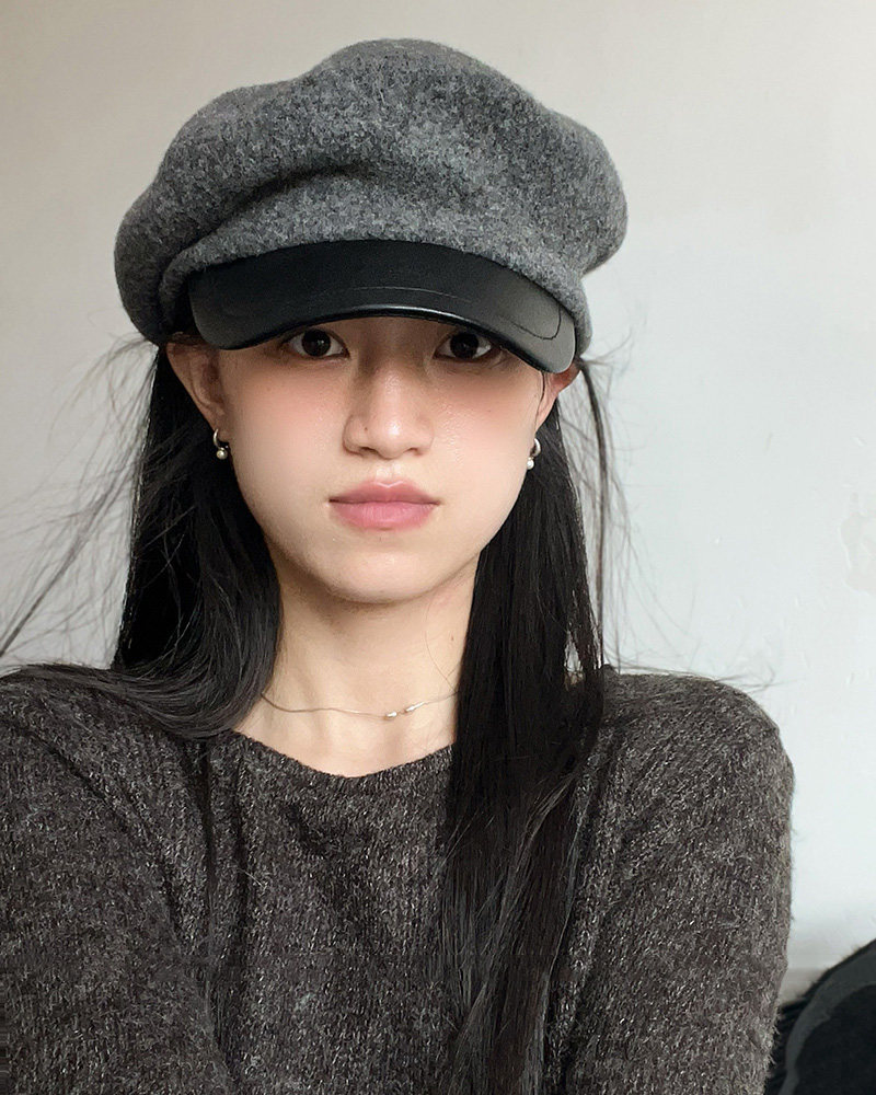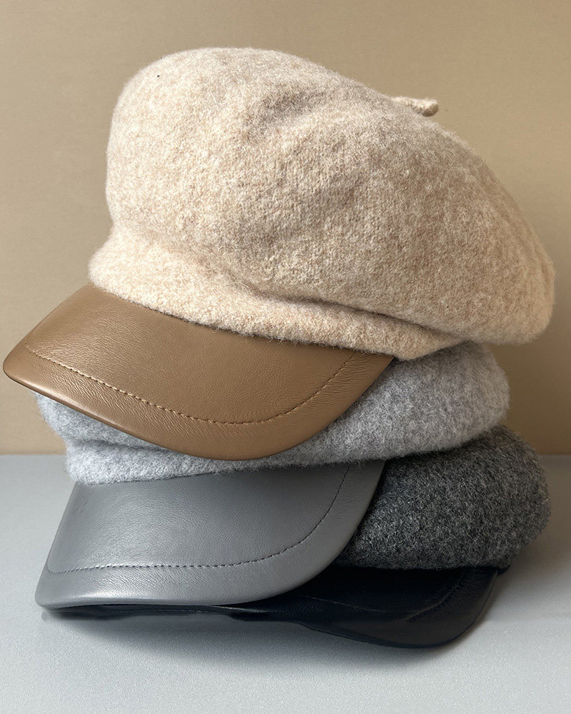 MIND BOY autumn and winter versatile wool octagonal hat for women 2025 new British retro leather brim peaked hat